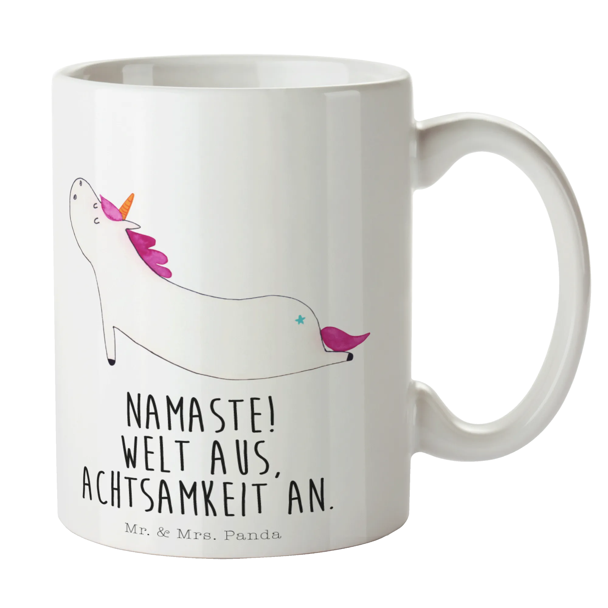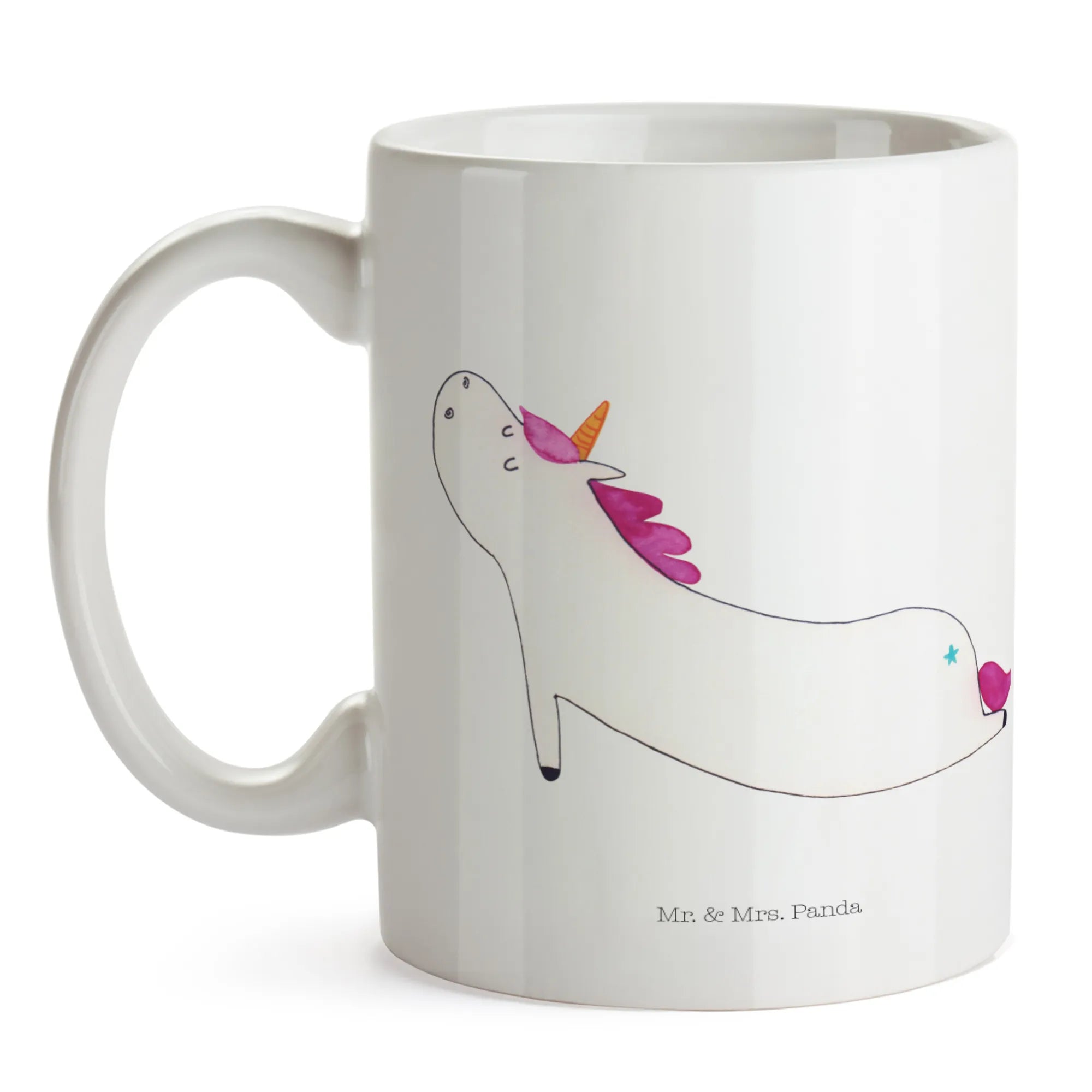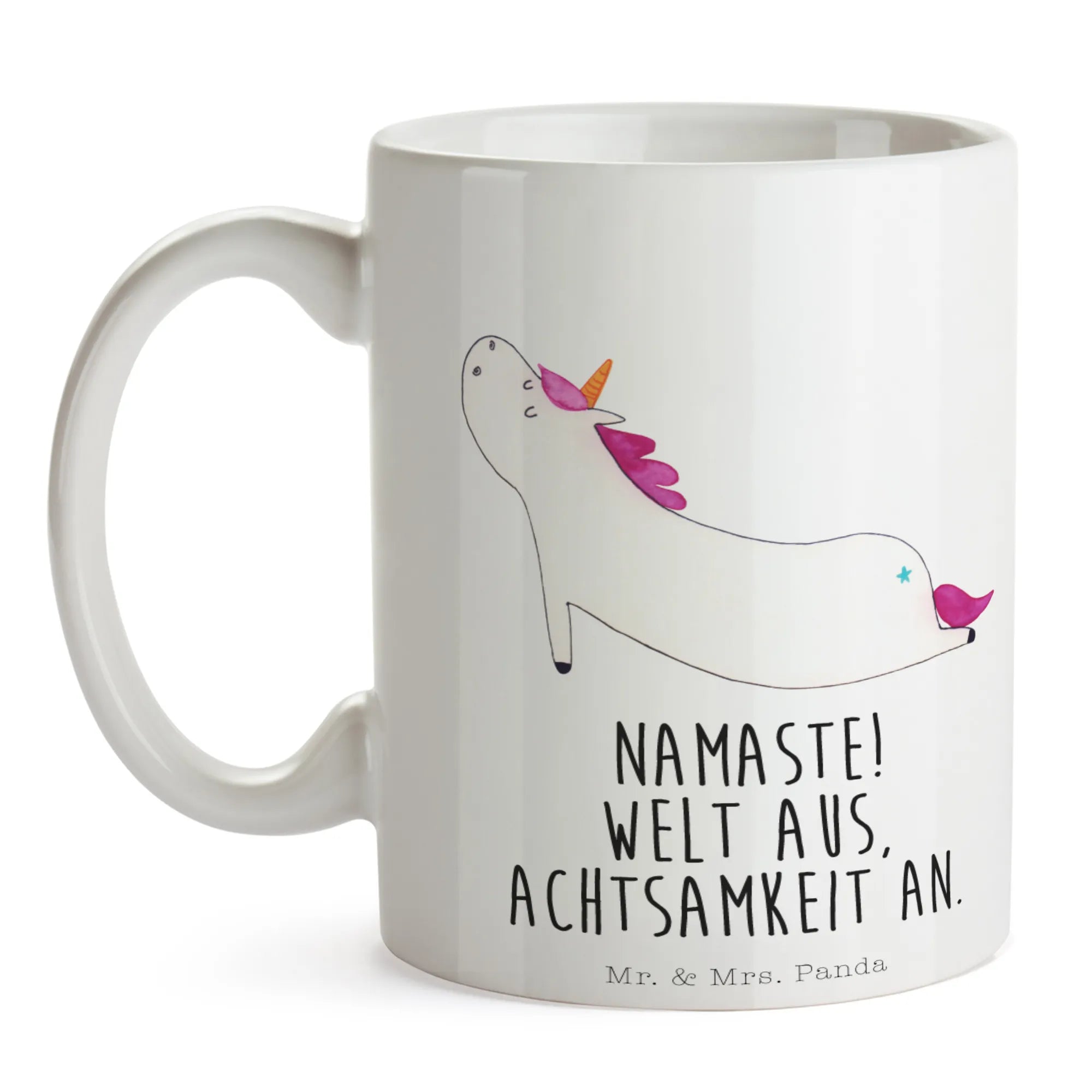Entdecke die zauberhafte Einhorn Yoga Tasse von Mr. & Mrs. Panda! Diese wunderschöne spülmaschinenfeste Keramiktasse ist mehr als nur ein einfaches Trinkgefäß – sie ist ein echtes Must-Have für alle Einhornliebhaber und Yoga-Fans!