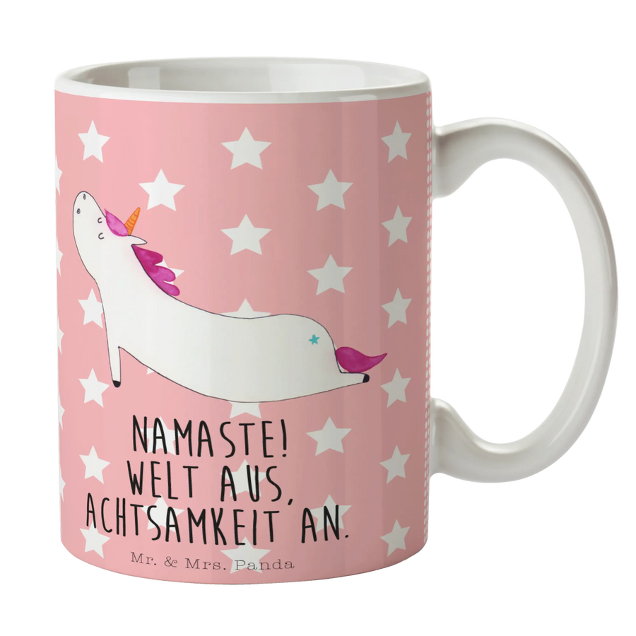 Tasse Einhorn Yoga - mit Spruch - Keramik - Rot Pastell
