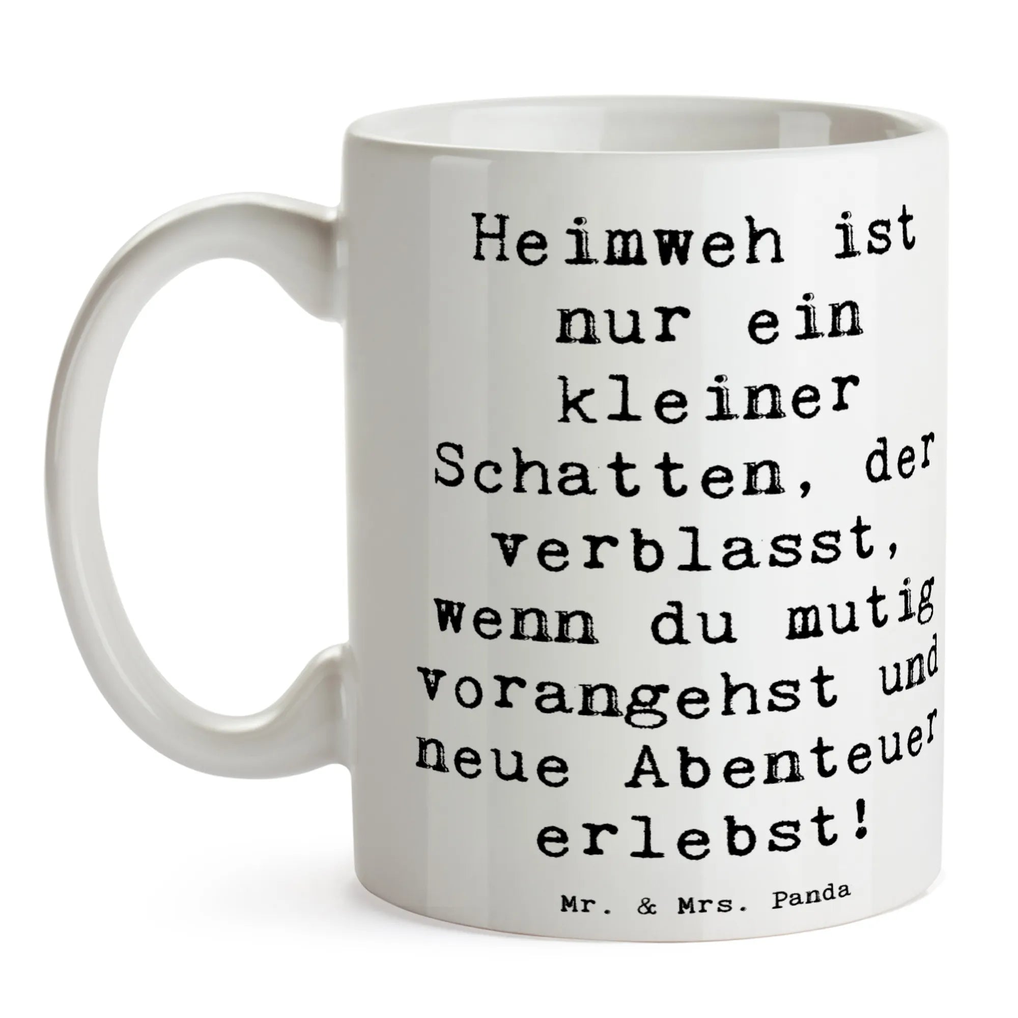 Die hochwertige Keramiktasse besticht durch ihren brillanten Druck und die besonders glänzende Oberfläche. Der herzerwärmende Spruch 'Heimweh ist nur ein kleiner Schatten, der verblasst, wenn du mutig vorangehst und neue Abenteuer erlebst!' erinnert dich bei jedem Schluck daran, wie tapfer du eigentlich bist. Egal ob als Kaffeetasse im Büro oder als gemütlicher Teebecher am Abend – dieser Henkelpott ist dein persönlicher Anker. ☕💖