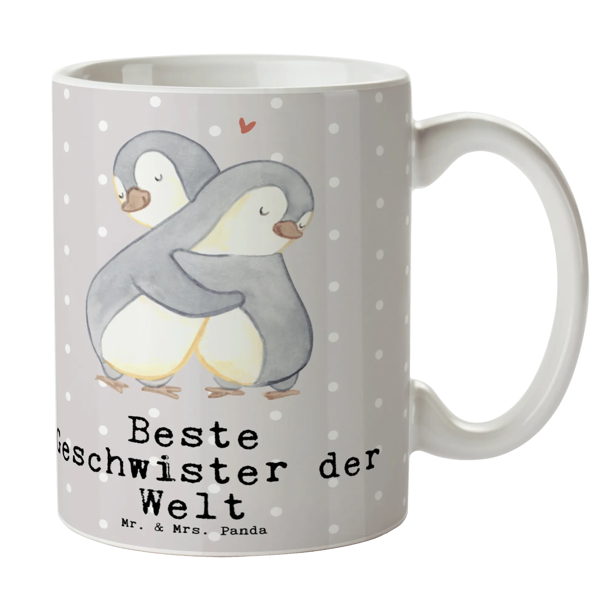 Entdecke die wunderschöne Tasse mit dem Motiv "Pinguin Beste Geschwister der Welt" von Mr. & Mrs. Panda!