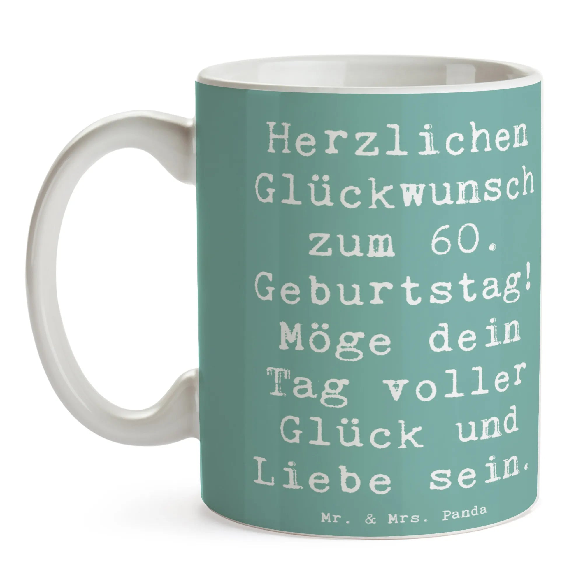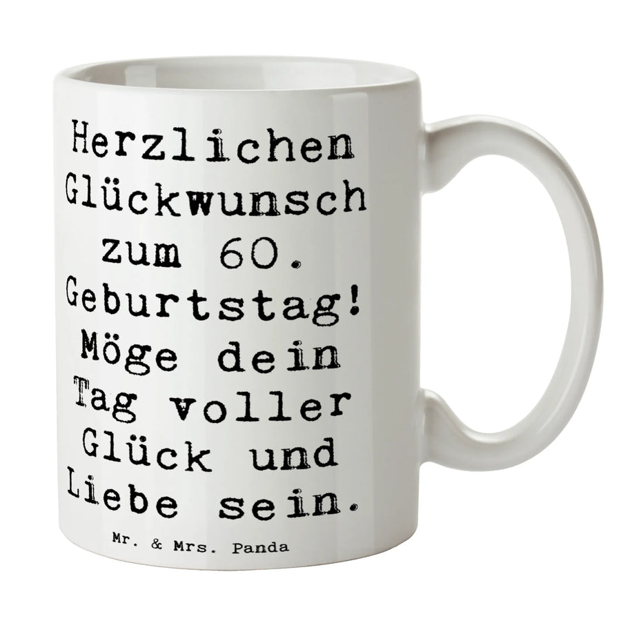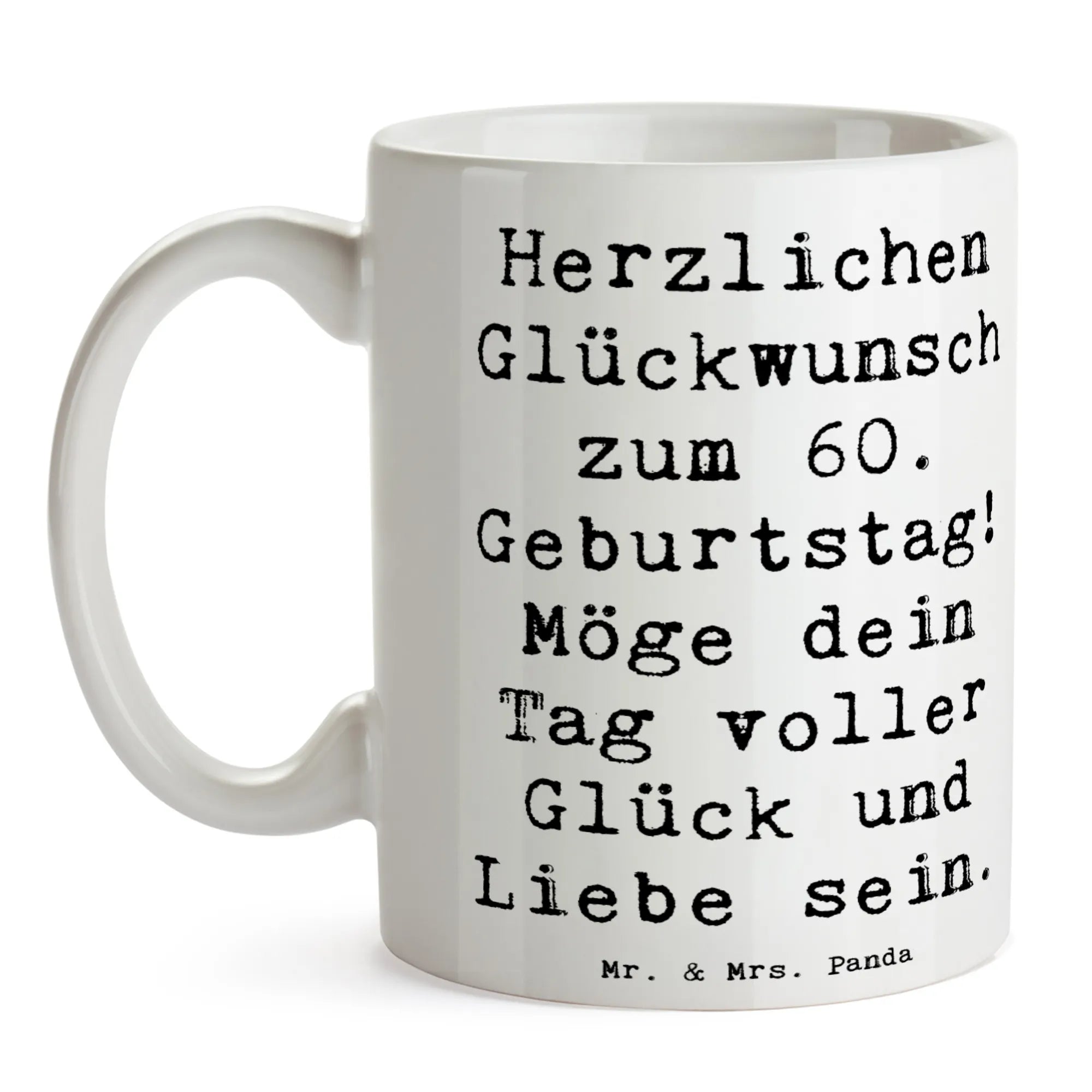Herzlich willkommen in der zauberhaften Welt der Mr. & Mrs. Panda Tassen! Wenn Du nach dem perfekten Geschenk für einen ganz besonderen Menschen suchst, dann ist unsere Tasse "60. Geburtstag" aus der Geburtstagskollektion genau das Richtige für Dich. Diese hochwertige Keramiktasse ist nicht nur ein praktisches Alltagsobjekt, sondern auch ein liebevolles Accessoire, das garantiert gute Laune verbreitet. Mit dem liebevollen Slogan "Herzlichen Glückwunsch zum 60. Geburtstag! Möge dein Tag voller Glück und Liebe sein." versüßt sie jedem Jubilar seinen Ehrentag und erinnert ihn immer wieder an die schönen Momente seines Lebens.