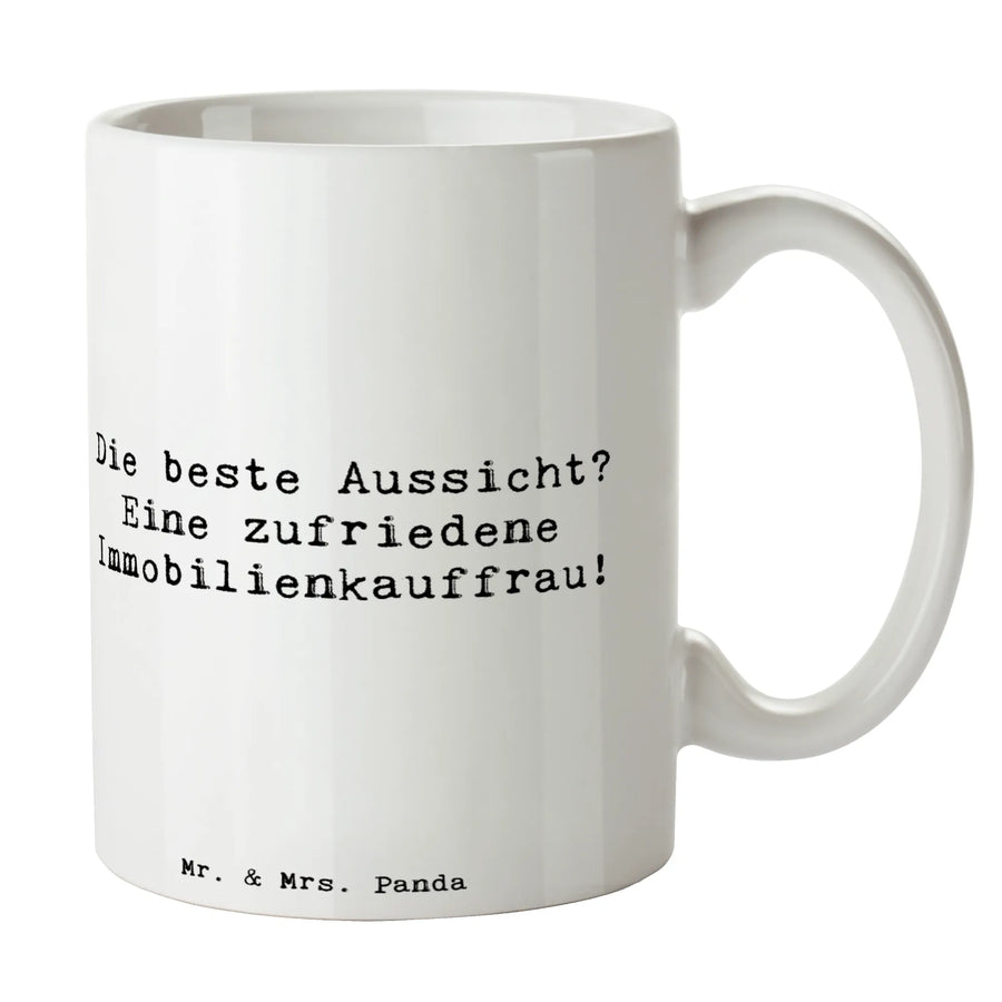 Tasse Spruch Die beste Aussicht? Eine zufriedene Immobilienkauffrau! - Weiß