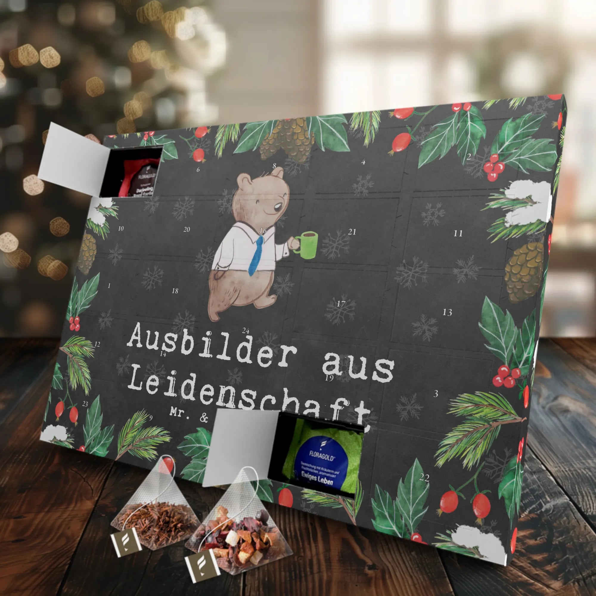 Das "Ausbilder aus Leidenschaft" Motiv verbindet kreative Gestaltung mit einem kleinen, aber bedeutenden Ausdruck der Anerkennung. Somit wird dieser Adventskalender nicht nur zum Tee-Highlight der Adventszeit, sondern auch zu einem unvergesslichen Geschenk für jeden Ausbilder und Tutor, die täglich ihr Wissen und ihre Leidenschaft für ihre Schüler einbringen.