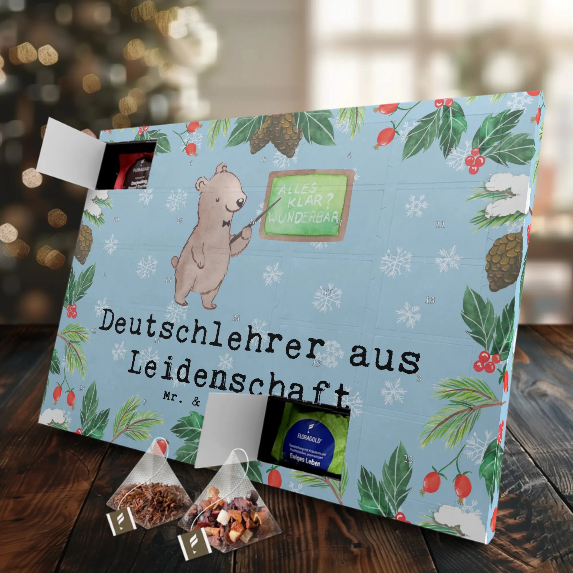 Der Tee Adventskalender "Deutschlehrer aus Leidenschaft" von Mr. & Mrs. Panda ist das perfekte Geschenk für all jene, die im schulischen Umfeld tätig sind oder einfach die deutsche Sprache lieben. Mit seinem charmanten Design zeigt dieser Adventskalender einen fröhlichen Bären, der als Deutschlehrer an einer Tafel steht. Er verkörpert die Freude und Leidenschaft, die man beim Deutschunterricht erleben kann. Pünktlich zur Adventszeit bringt dieser Kalender eine süße Vorfreude in jeden Deutschunterricht und sorgt garantiert für ein Schmunzeln bei deinen Kollegen oder Freunden.