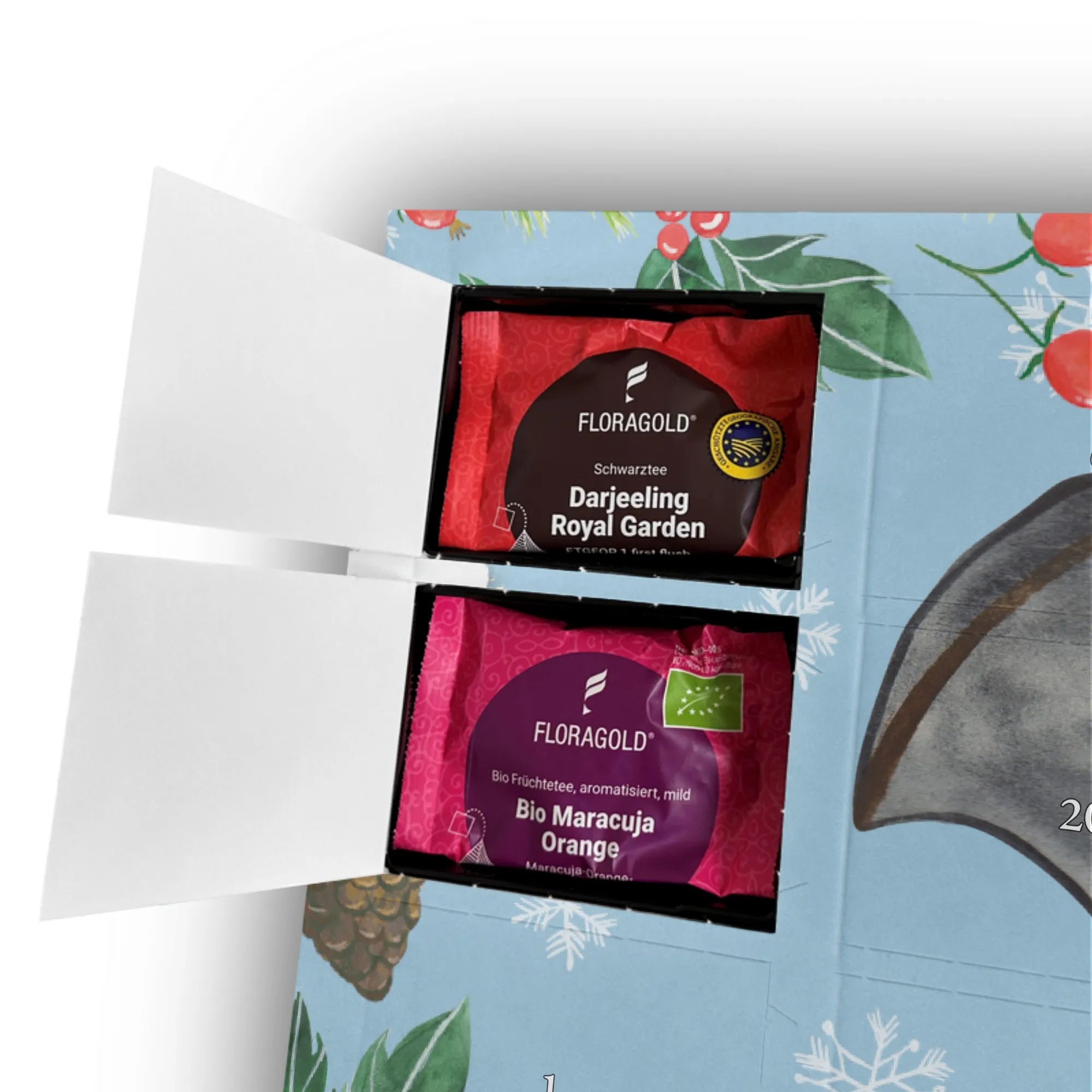 Lass dich von der fliegenden Fledermaus inspirieren und genieße jeden Moment der Vorweihnachtszeit mit einem köstlichen Tee – denn deine kleine Auszeit hat es verdient! Mit diesem tollen Adventskalender von Mr. & Mrs. Panda bringst du nicht nur Freude ins Zuhause, sondern auch einen Hauch von Natur und Tierliebe. Tee-Trinker werden ihn lieben und mit Sicherheit im nächsten Jahr wieder zur gleichen Zeit kaufen. Er ist allen Anlässen gewidmet, sei es als Weihnachtsgeschenk oder als Highlight für eine Tee-Party im Winter. Lass die Vorfreude auf Weihnachten beginnen und genieße die besonderen Momente mit jedem Schluck Tee, den du aus diesem besonderen Adventskalender nimmst.