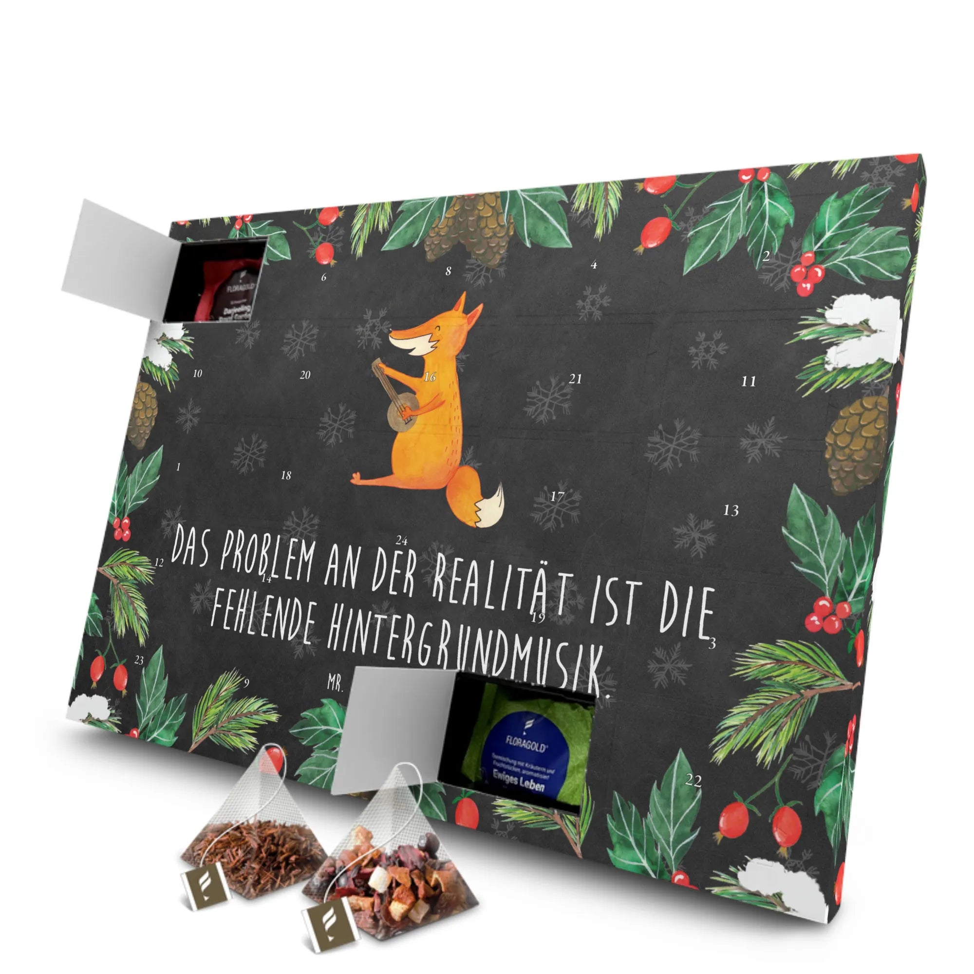 Der Tee Adventskalender mit dem niedlichen Motiv "Fuchs Gitarre" von Mr. & Mrs. Panda ist das perfekte Geschenk für Musikliebhaber und Teefans zugleich! Mit diesem liebevoll gestalteten Adventskalender bringst Du nicht nur Freude ins Zuhause, sondern auch eine wunderbare Auswahl an 24 hochwertigen Teesorten im Pyramidenbeutel.