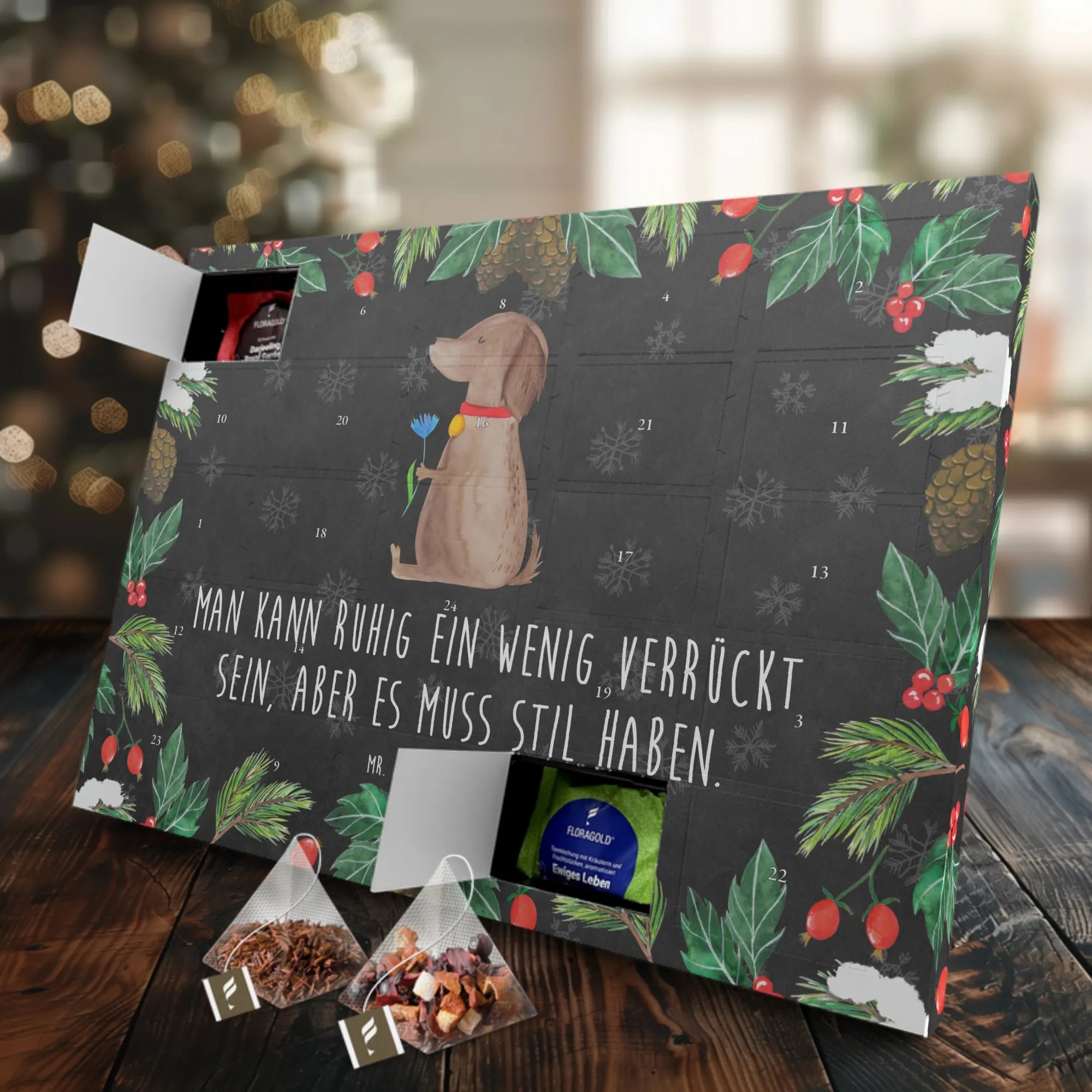 Ein Adventskalender für Hundeliebhaber, der nicht nur die Herzen von Hundebesitzern höher schlagen lässt, sondern auch den Gaumen verwöhnt! Unser wunderschöner Tee Adventskalender "Hund Blume" aus der Hunde Kollektion von Mr. & Mrs. Panda ist das perfekte Geschenk für alle, die ihre Liebe zu Hunden und gutem Tee kombinieren möchten. Dieser Kalender ist mit 24 einzeln verpackten hochwertigen Teesorten im Pyramidenbeutel gefüllt, darunter für jeden Geschmack etwas – von fruchtigen über würzige bis hin zu beruhigenden Kräutertees.