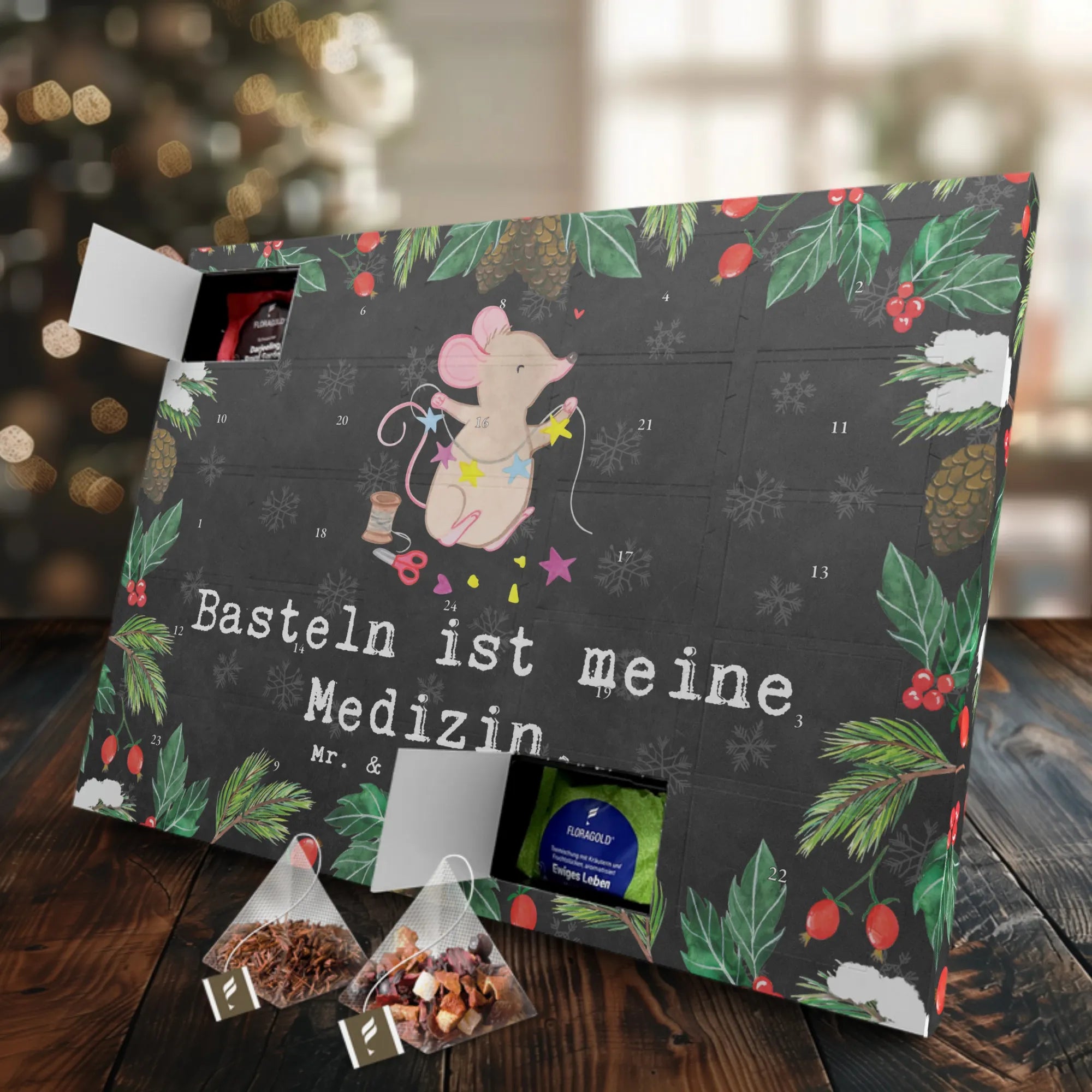 Der Tee Adventskalender mit der niedlichen Maus "Basteln ist meine Medizin" von Mr. & Mrs. Panda ist das perfekte Geschenk für alle DIY- und Bastel-Enthusiasten. In dieser zauberhaften Box verbirgt sich nicht nur eine süße Maus, die mit Schere und Buntpapier kreative Projekte umsetzt, sondern auch 24 köstliche Teesorten, die jeden Tag zu einem neuen Genuss machen.