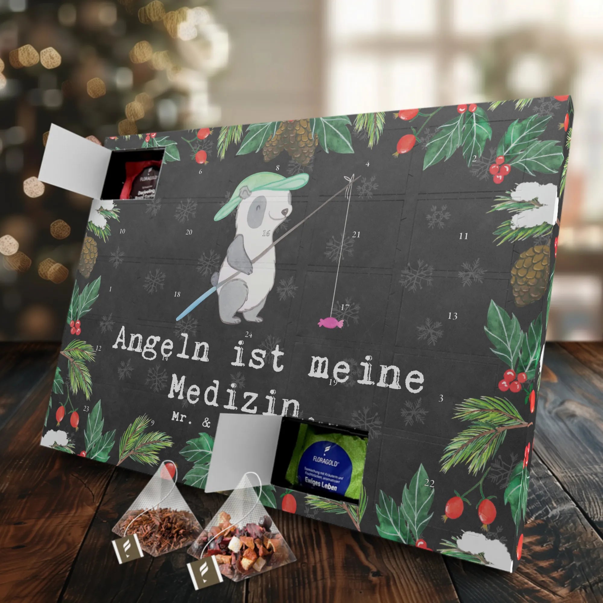 Der Tee Adventskalender "Panda Angeln Medizin" von Mr. & Mrs. Panda ist das perfekte Geschenk für alle Angelfans und Hobbyangler. Mit liebevoll handgezeichneten Motiven und dem süßen Panda in seinem großen Fischerhut wird jeder Tag im Advent zu einem kleinen Highlight.