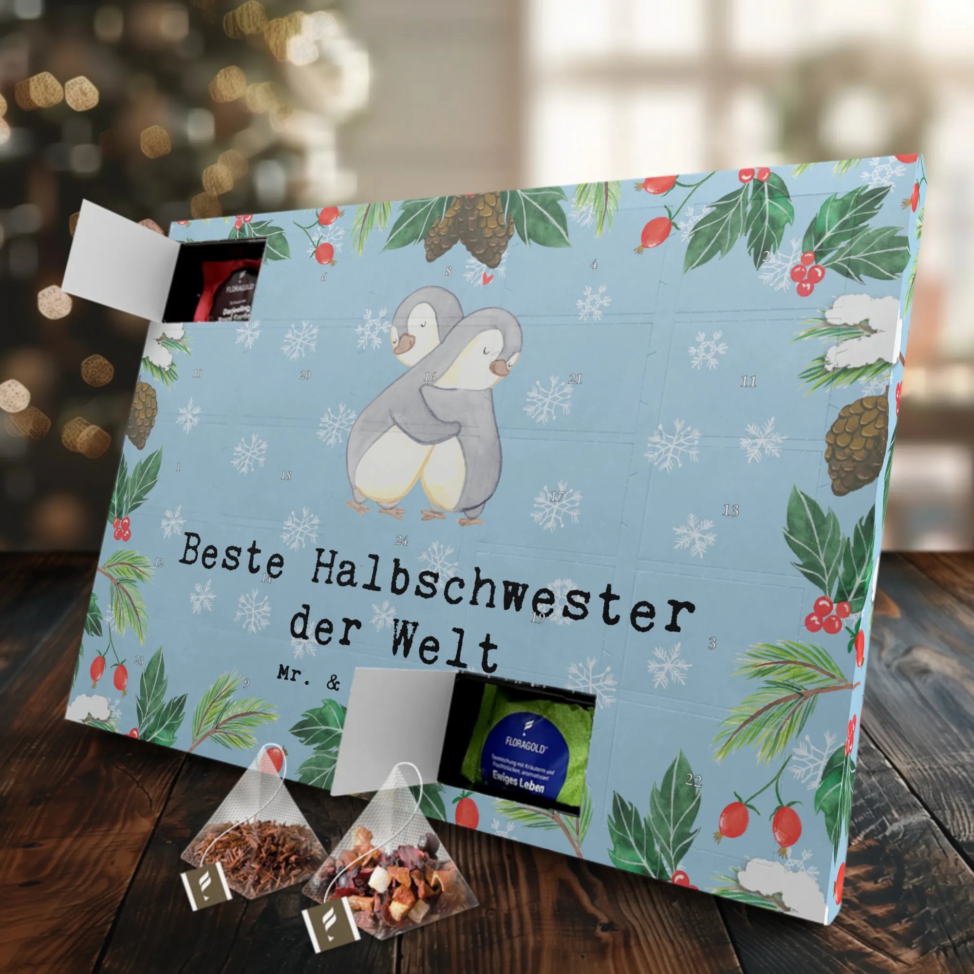 Tee Adventskalender Pinguin Beste Halbschwester der Welt Adventskalender, Adventskalender mit Tee, Tee Adventskalender, Geschenkidee, Geschenk, Schenken, Mitbringsel, Geburtstag, Geburtstagsgeschenk, für, Danke, Dankeschön, Bedanken, Freude machen, Geschenktipp, Liebe, Kinder, Sister, Beste, Halbschwester, Stiefschwester, Schwesterherz, Schwester, Schwestern, Tochter, Kleinigkeit, Familie, Stiefgeschwister, Geschwister