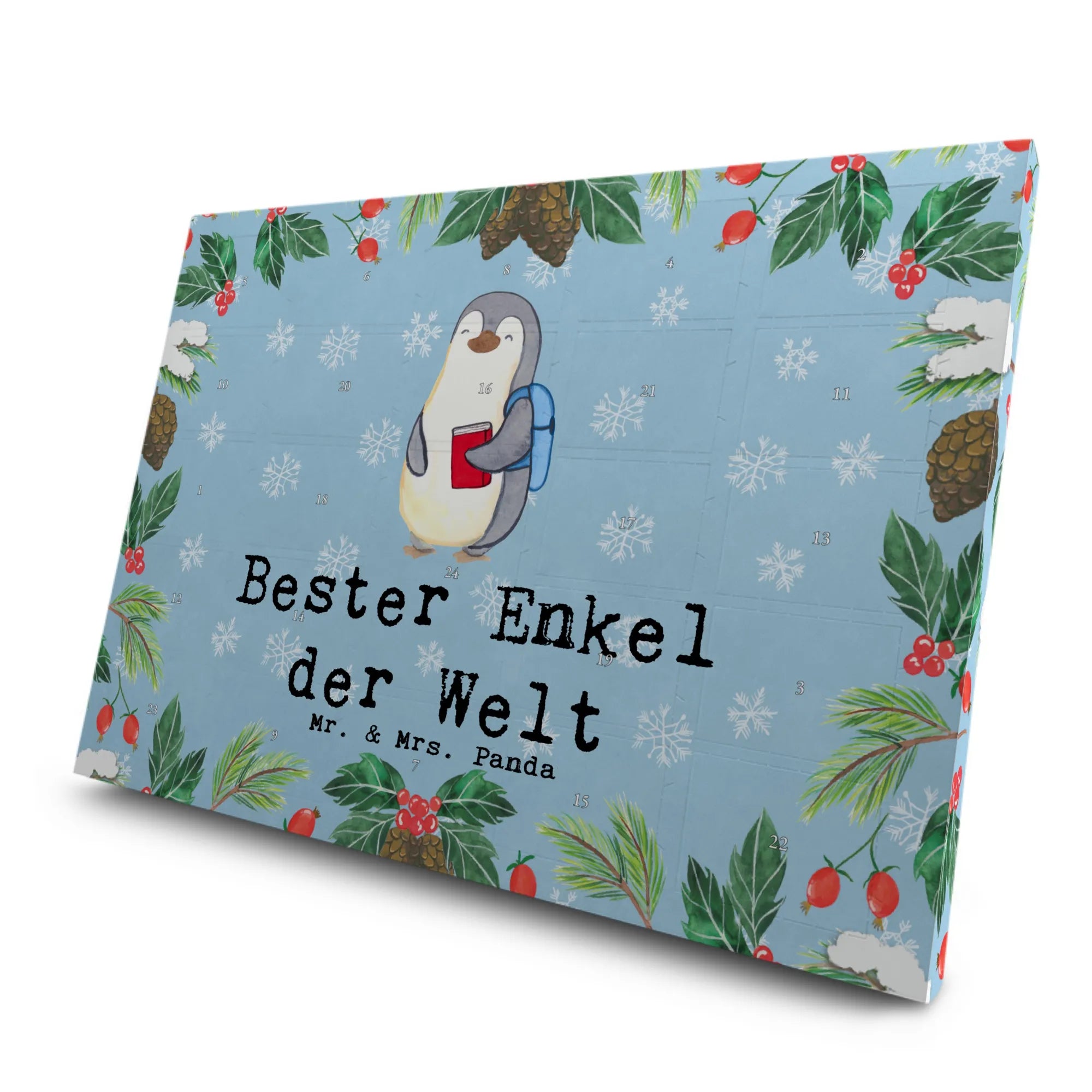 Der Tee Adventskalender mit dem süßen Pinguin-Motiv "Bester Enkel der Welt" von Mr. & Mrs. Panda ist das perfekte Geschenk für all diejenigen, die ihren Enkelkindern eine besondere Freude machen wollen. Ob zur Taufe, zum Geburtstag, oder einfach nur um Danke zu sagen - dieser Adventskalender bringt leuchtende Augen und ein warmes Herz.