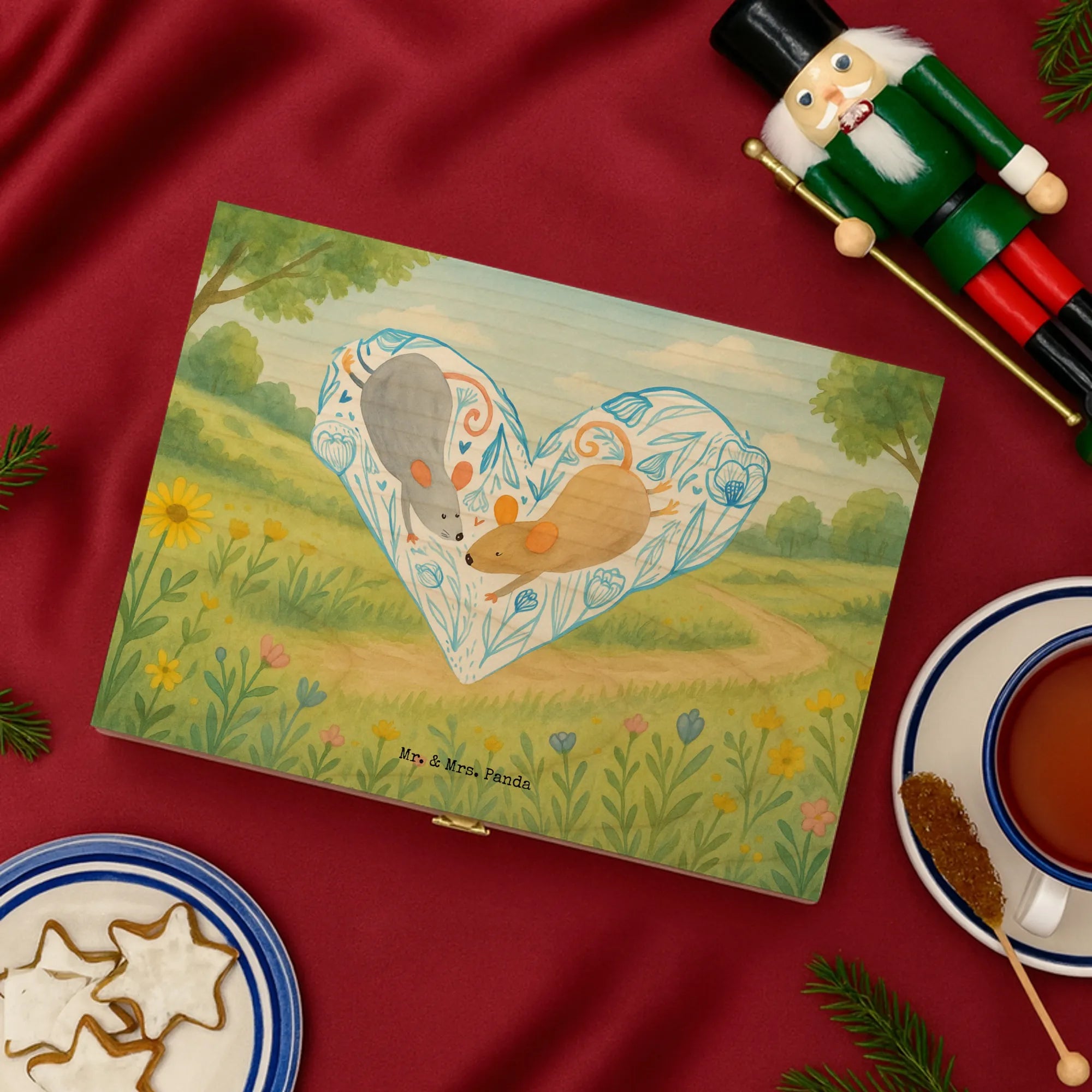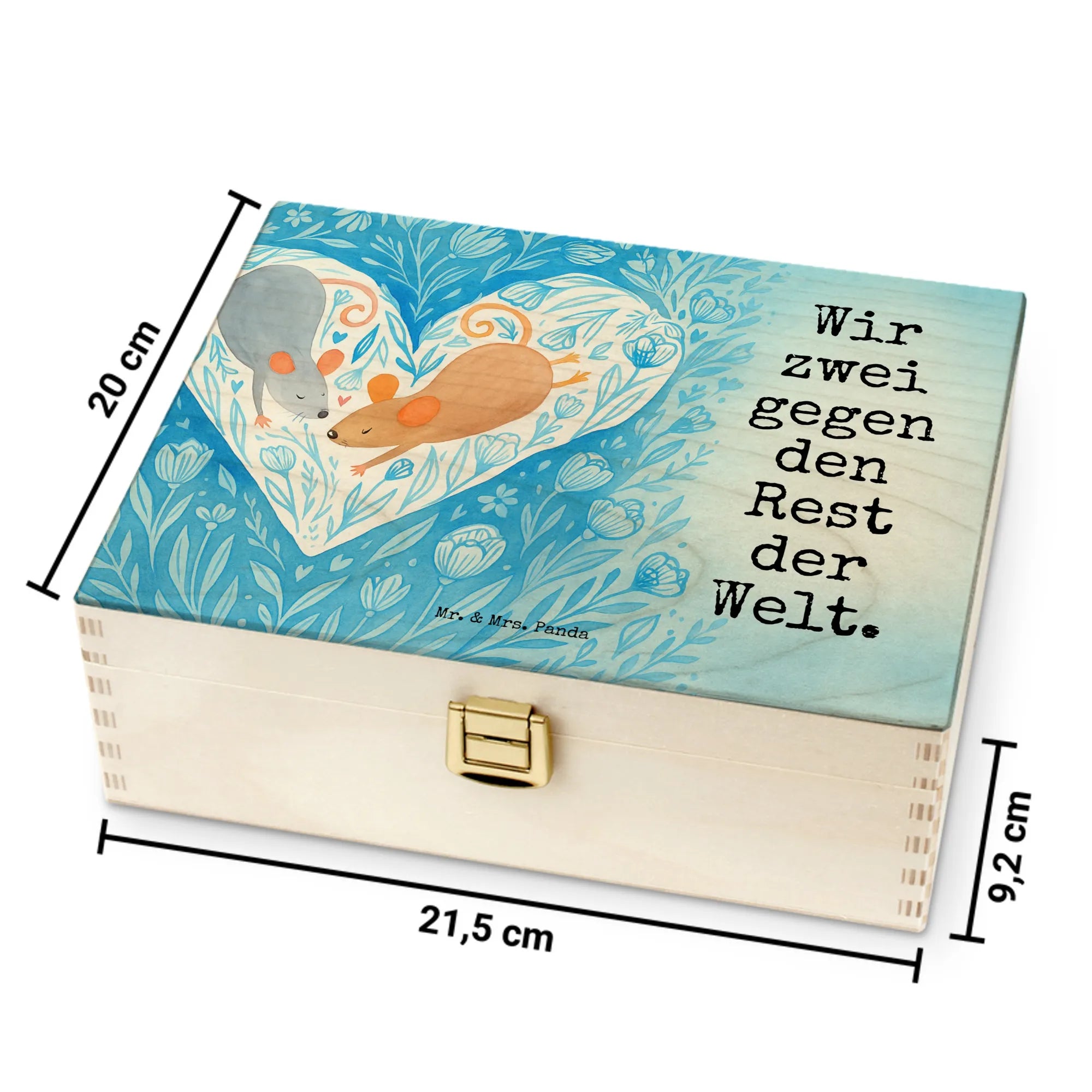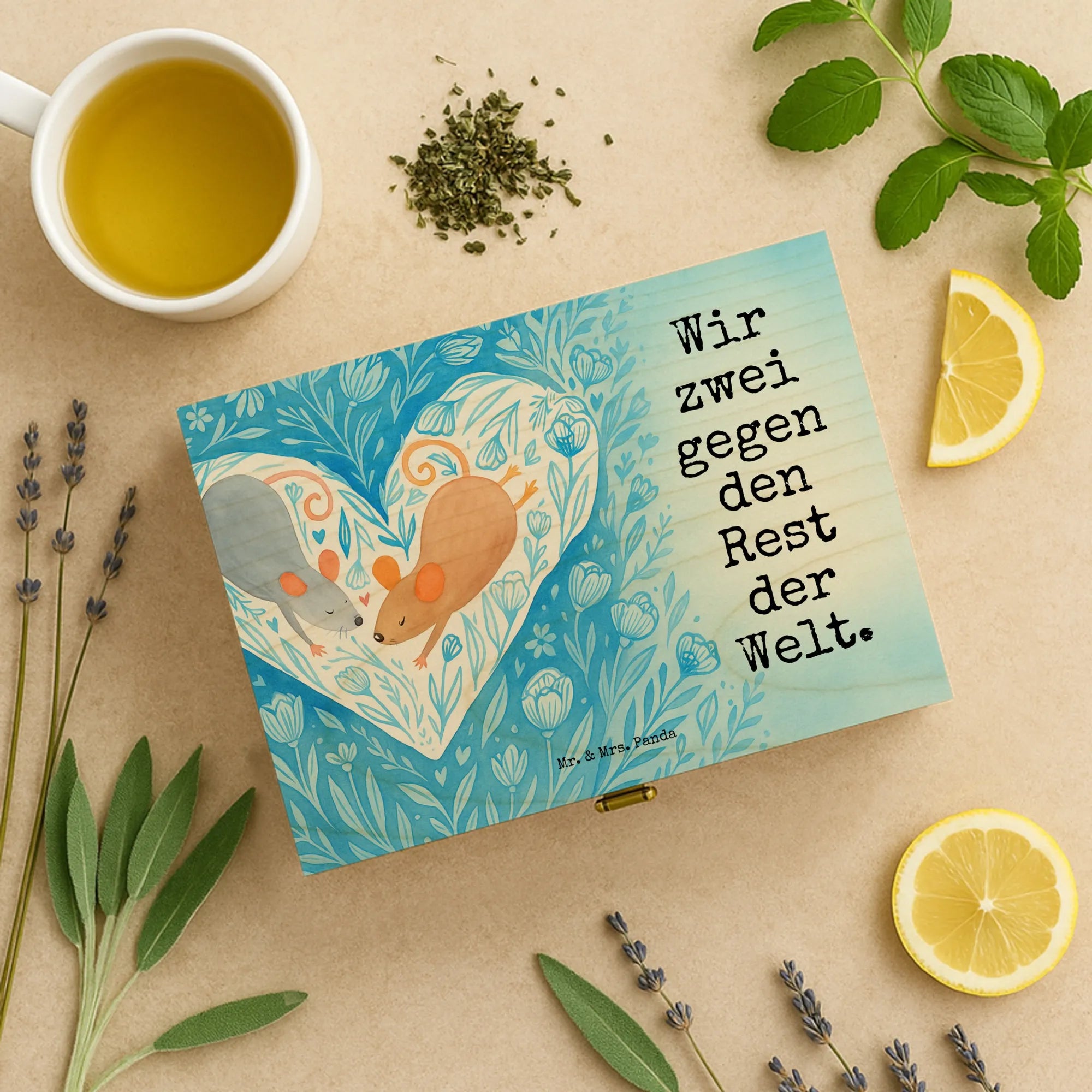 Unsere Holz-Teekiste von Mr. & Mrs. Panda kombiniert Funktionalität mit zauberhaftem Design. Bedruckt mit den wunderschönen Motiven von Mr. & Mrs. Panda verleiht sie deinem Zuhause eine persönliche Note, auch wenn sie nicht personalisierbar ist. Der Druck ist fasertief und wunderschön, gefertigt mit umweltfreundlicher & nachhaltiger Tinte. Dekorative Layouts und Vorlagen machen die Box zu einem tollen Blickfang. Material: 7 mm Birke-Schichtholz an den Kanten gezinkt, Farbe: Natur – robust und natürlich. Die Teebox hat einen sicheren Verschluss und Einschlag-Scharnieren (nicht abschließbar). Maße: 215 mm x 75 mm x 155 mm, Gewicht: 450 g – handlich und stabil zugleich. Innen ist die Box in sechs Fächer unterteilt, ideal als aufbewahrungsbox für teebeutel, tee kiste oder holzteekiste zur übersichtlichen Lagerung verschiedener Sorten. Ob du sie als box für tee, tee organizer box oder vorratsbox tee nutzt – diese Kiste bringt Stil und Ordnung. Ein schönes Geschenk für Freunde oder eine hübsche Ergänzung für dein eigenes Regal.