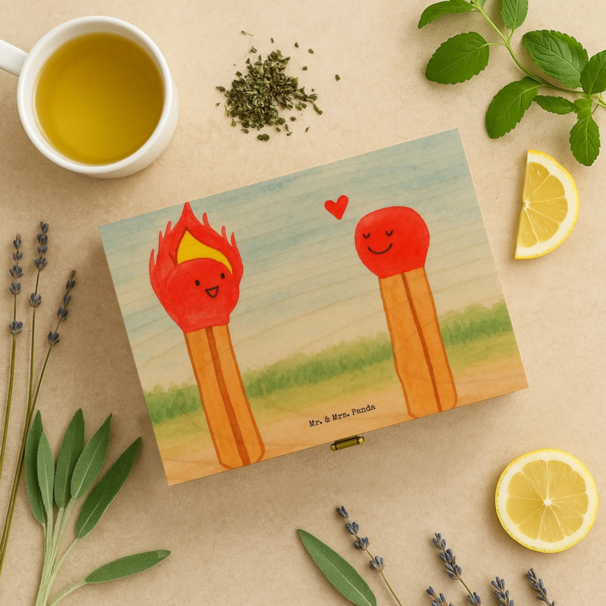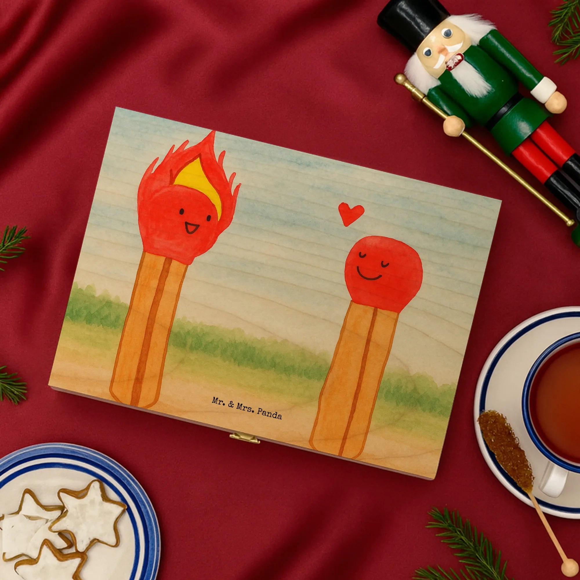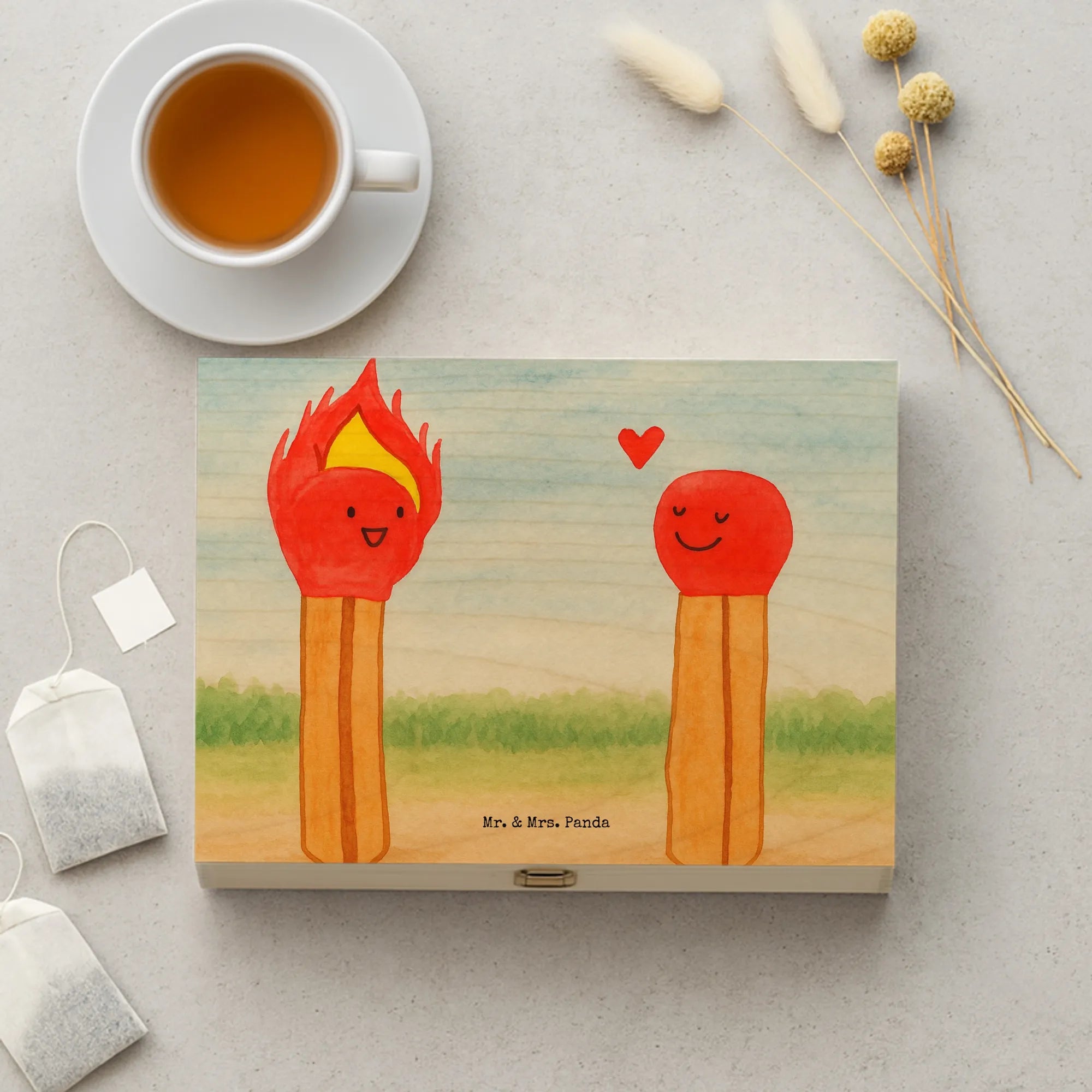 Holzstreichhölzer Motiv – Mr. & Mrs. Panda süßes Flammen-Herz Design für Merch & Geschenke