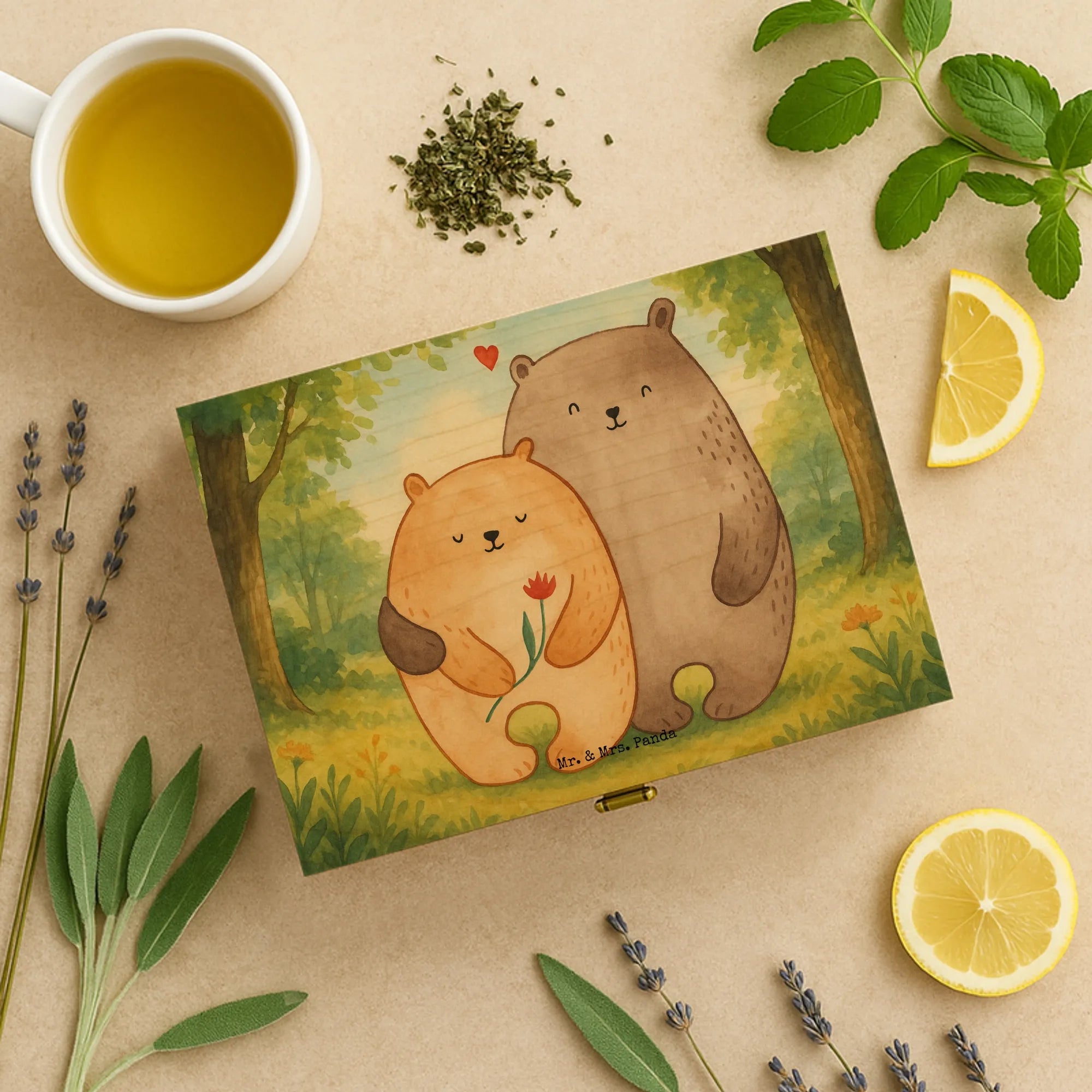 Teedose Holz Bären Liebe Design – Mr. & Mrs. Panda