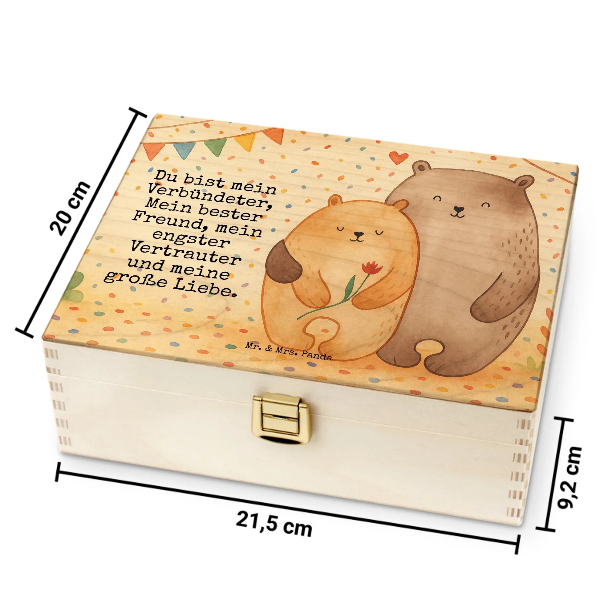 Ordnung ist das halbe Leben – besonders, wenn es um Tee geht. Unsere Teekiste von Mr. & Mrs. Panda ist die perfekte aufbewahrungsbox für teebeutel und verwandelt deine Teeecke in eine hübsche, organisierte Ecke. Die Teebox für teebeutel ist mit liebevollen Motiven bedruckt, die jedem Morgen ein Lächeln schenken. Gefertigt aus 7 mm Birke-Schichtholz an den Kanten und naturfarben gehalten, besticht sie durch eine hochwertige Haptik. Innen hat die Box sechs Fächer, die dir als tee kiste oder aufbewahrungsbox tee erlauben, Sorten separat zu lagern. Der Verschluss mit Einschlag-Scharnier ist praktisch und zuverlässig (nicht abschließbar). Maße: 215 mm x 75 mm x 155 mm, Gewicht: 450 g – ideal für Regal, Küche oder als Geschenk. Der farbtiefe Druck erfolgt mit umweltfreundlicher Tinte und sorgt für langlebige Farben. Wichtig: Diese Teebox ist nicht personalisierbar. Ob als praktische teebox für teebeutel oder als dekorativer Hingucker – mit dieser Teekiste bringst du Ordnung und Freude in dein Zuhause.