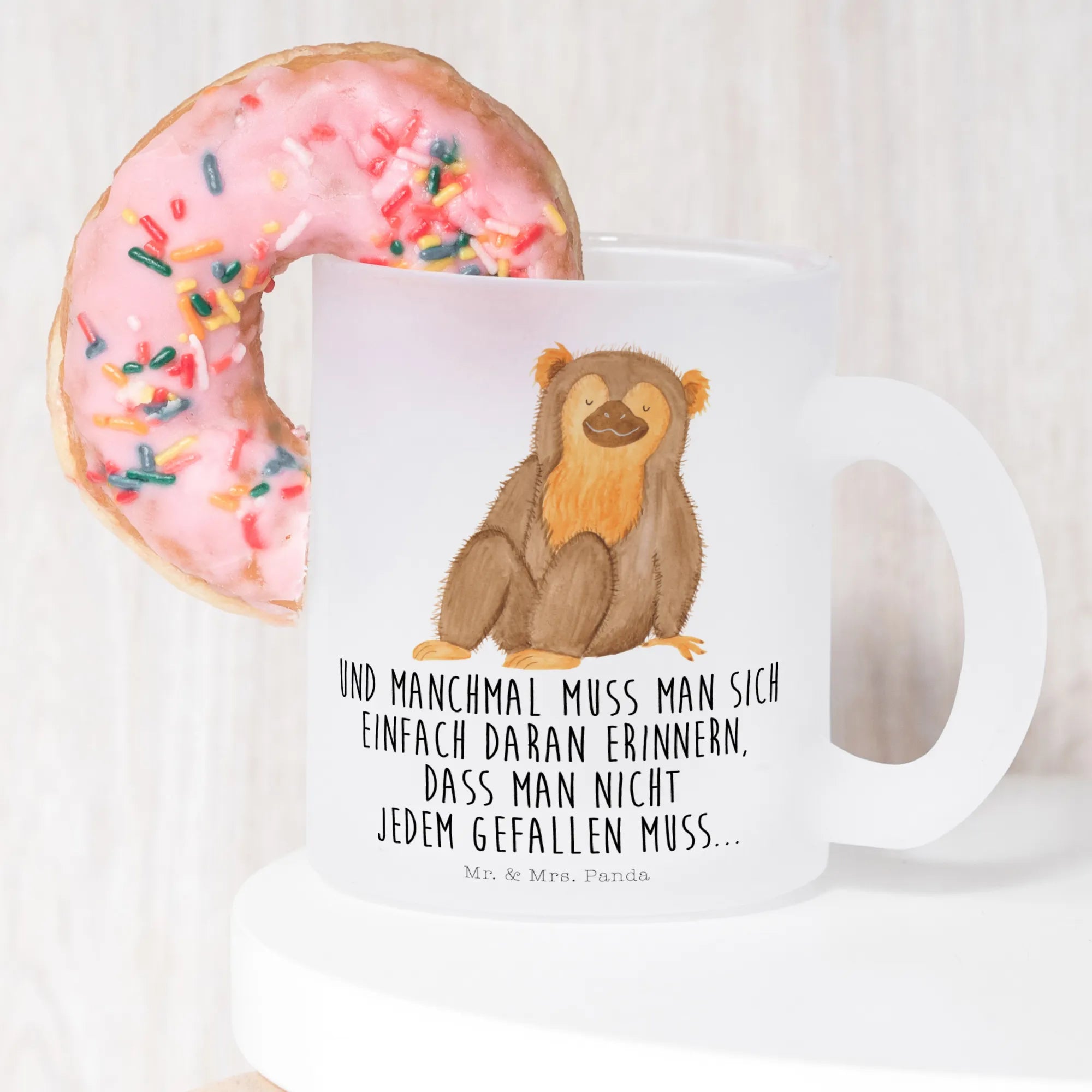 Entdecke Konrad, den kleinen selbstbewussten Affen! 🐒 Unsere Teetasse aus der Afrika Kollektion von Mr. & Mrs. Panda ist ein kleiner Mutmacher für den Alltag. Mit dem herzlichen Spruch „Und manchmal muss man sich einfach daran erinnern, dass man nicht jedem gefallen muss...“ erinnert dich Konrad bei jedem Schluck daran, dir selbst treu zu bleiben.