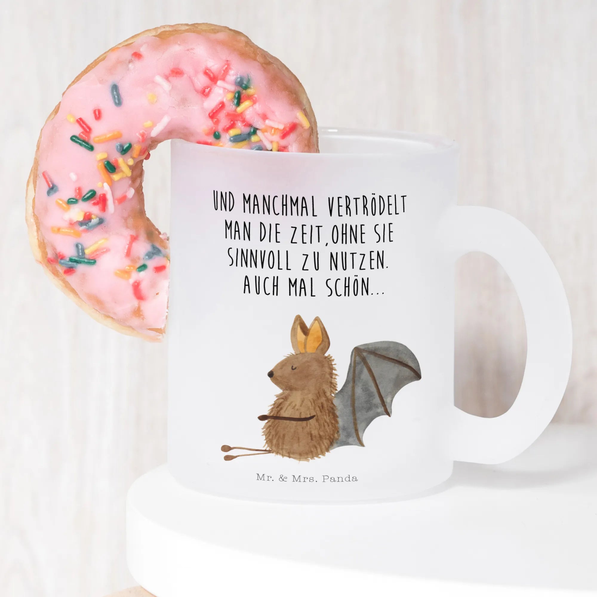 Die Teetasse "Fledermaus sitzend" aus der beliebten Small World Kollektion von Mr. & Mrs. Panda ist das perfekte Geschenk für jeden Teeliebhaber und Freunde der tierischen Motive! Mit ihrem charmanten Design und dem liebevollen Spruch "Und manchmal vertrödelt man die Zeit, ohne sie sinnvoll zu nutzen. Auch mal schön..." zaubert diese Tasse nicht nur ein Lächeln ins Gesicht, sondern lädt auch dazu ein, die vertrauten Momente mit einer heißen Tasse Tee zu genießen.