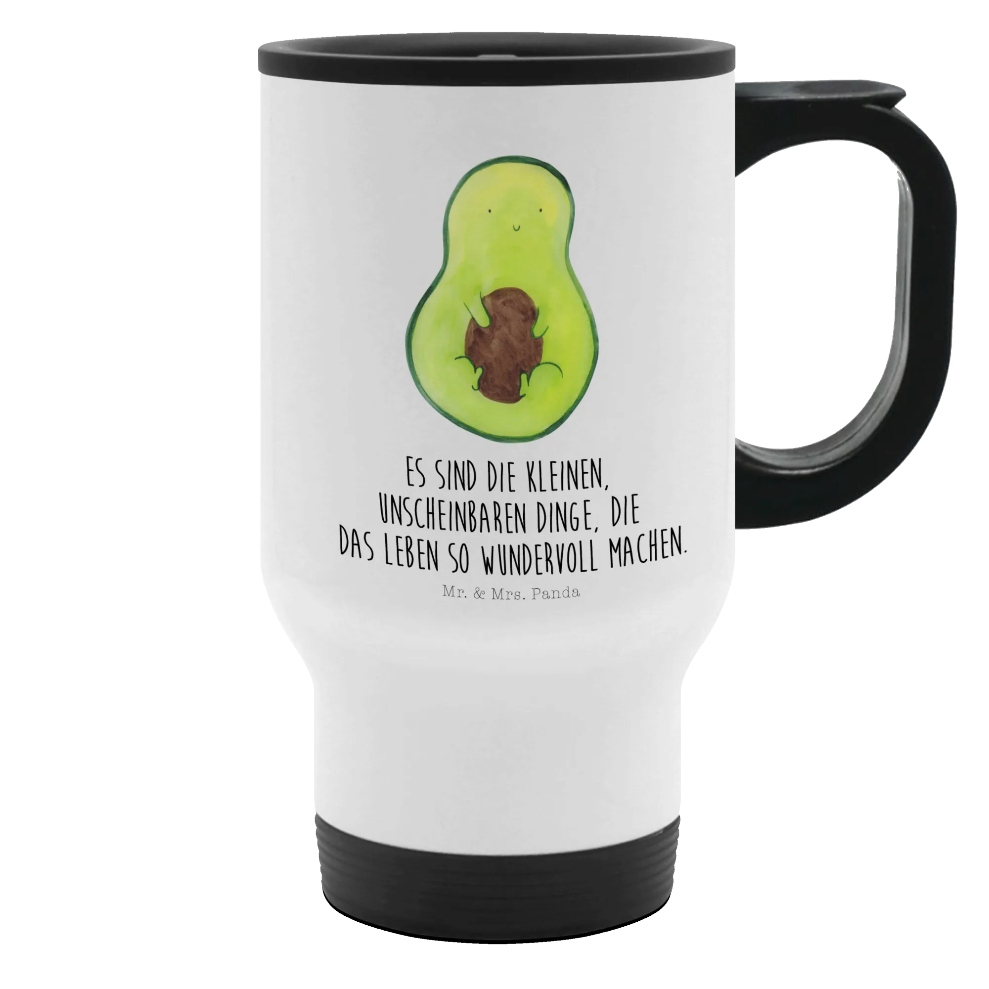 Der perfekte Begleiter für alle Avocado-Liebhaber! Unser Thermobecher Avocado mit Kern aus der besonderen Avocado Kollektion von Mr. & Mrs. Panda ist nicht nur ein praktischer und einzigartiger Thermobecher, sondern auch ein echter Hingucker. Mit einem ansprechenden Design, das eine süße Avocado zeigt, die sich an ihren Kern klammert, bringt er ein Stück Lebensfreude in deinen Alltag. Die liebevoll handgezeichnete Avocado symbolisiert, dass die kleinen Dinge im Leben oftmals die Schönsten sind – ganz nach unserem Motto: 'Es sind die kleinen, unscheinbaren Dinge, die das Leben so wundervoll machen.'