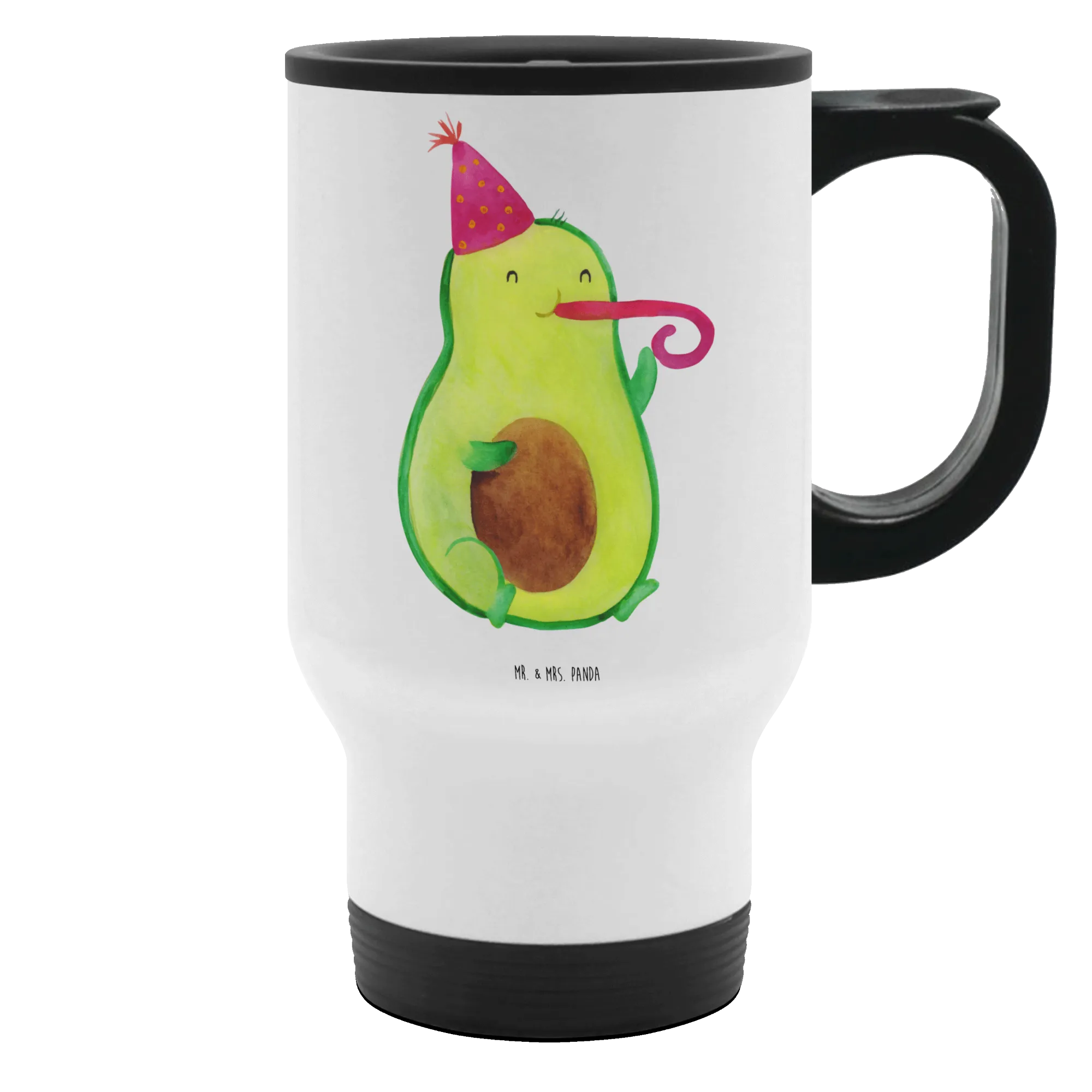 Mr. & Mrs. Panda Avocado Partyhupe Motiv – süße Avocado mit Partyhut und Partypfeife, perfekte Partydeko & Geschenkidee
