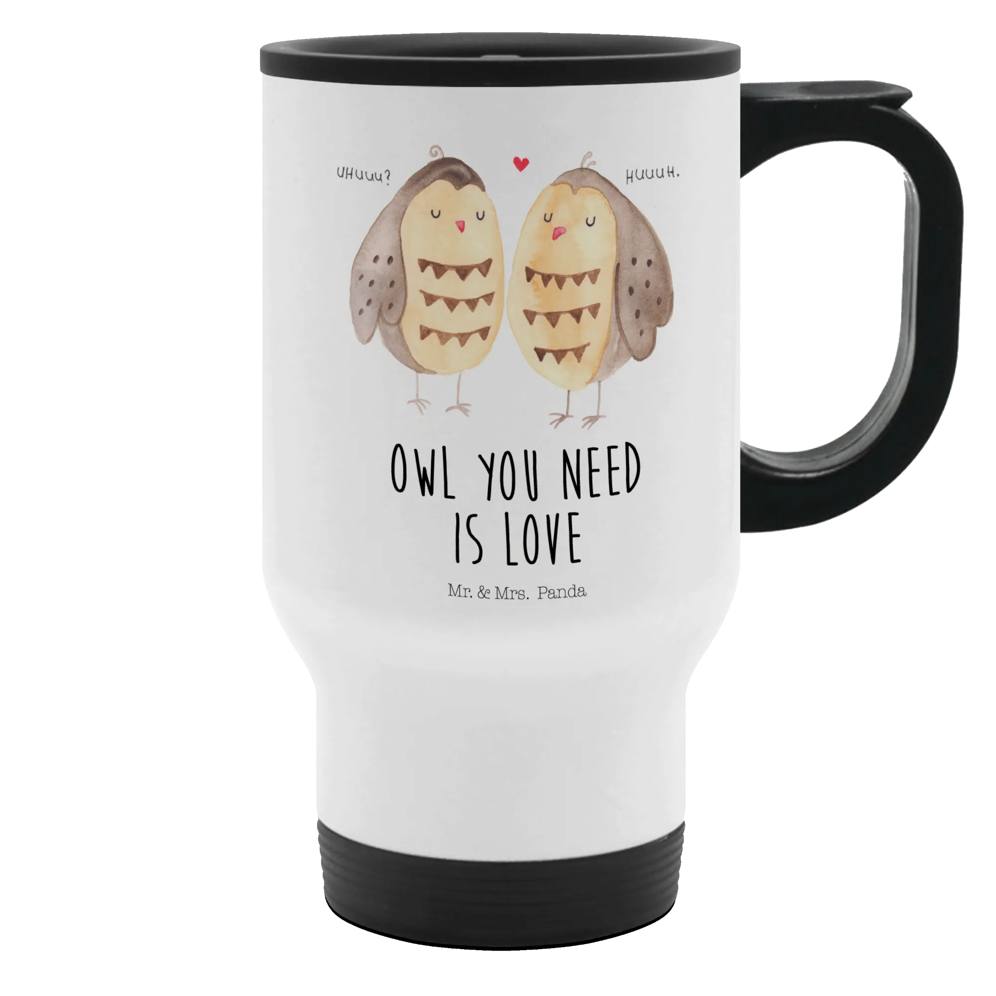 Mach dir bereit für eine zauberhafte Reise mit dem Thermobecher "Eule Liebe" von Mr. & Mrs. Panda! Dieser praktische und einzigartige Thermobecher ist perfekt entworfen für alle, die ihren Kaffee oder Tee unterwegs genießen möchten. Füll ihn mit deiner Lieblingsheißgetränk und lass dich von den niedlichen, verliebten Eulen auf dem Deckel verzaubern. Das Motiv ist nicht nur süß, es trägt auch die Botschaft "Owl you need is love", die das Besondere jeder Beziehung unterstreicht. Ob du den Becher für dich selbst behältst oder als Geschenk für einen lieben Menschen auswählst – mit diesem Thermobecher verschenkst du nicht nur einen praktischen Begleiter, sondern auch eine Portion Liebe.