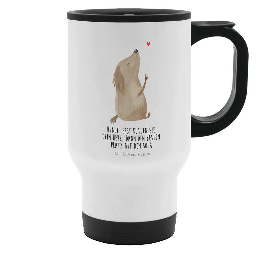 Dieser wunderbare Thermobecher "Hund Liebe" aus der Hunde Kollektion von Mr. & Mrs. Panda ist das perfekte Geschenk für alle Hundeliebhaber! Mit seinem bezaubernden Motiv eines süßen Hundes, der auch ein kleines Herz zeigt, spricht er das Herz eines jeden Hundebesitzers an.