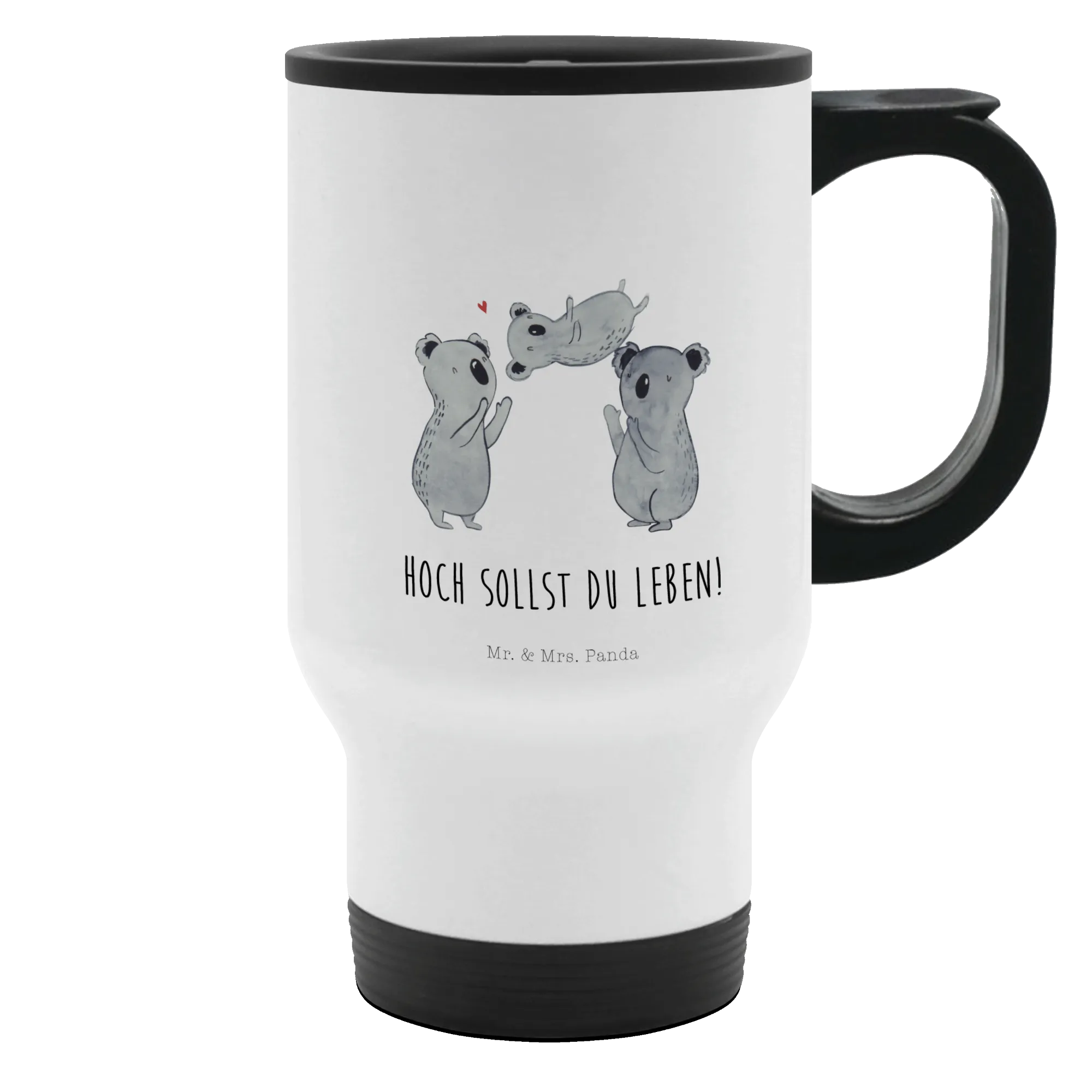 Trage deinen Lieblingskaffee oder -tee in diesem einzigartigen Thermobecher von Mr. & Mrs. Panda! Mit einer Höhe von 150 mm und einem Durchmesser von 85 mm bietet er genügend Platz für 390 ml deines Heißgetränks. Der praktische Edelstahl- und Kunststoffaufbau sorgt dafür, dass deine Getränke den ganzen Tag über warm bleiben, während der stoßfeste Becher ideal für unterwegs ist. Der innovative Drehgriff im Deckel macht das Trinken zu einem Kinderspiel und ermöglicht ein einfaches Öffnen der Trinköffnung. Egal, ob du auf dem Weg zur Arbeit bist oder ein Picknick machst, dieser Becher passt in jeden Getränkehalter im Auto. Für die Reinigung empfehlen wir Handwäsche, um die liebevollen Motive von Mr. & Mrs. Panda zu bewahren. Lass deinen Tag mit diesem charmanten Thermobecher beginnen!