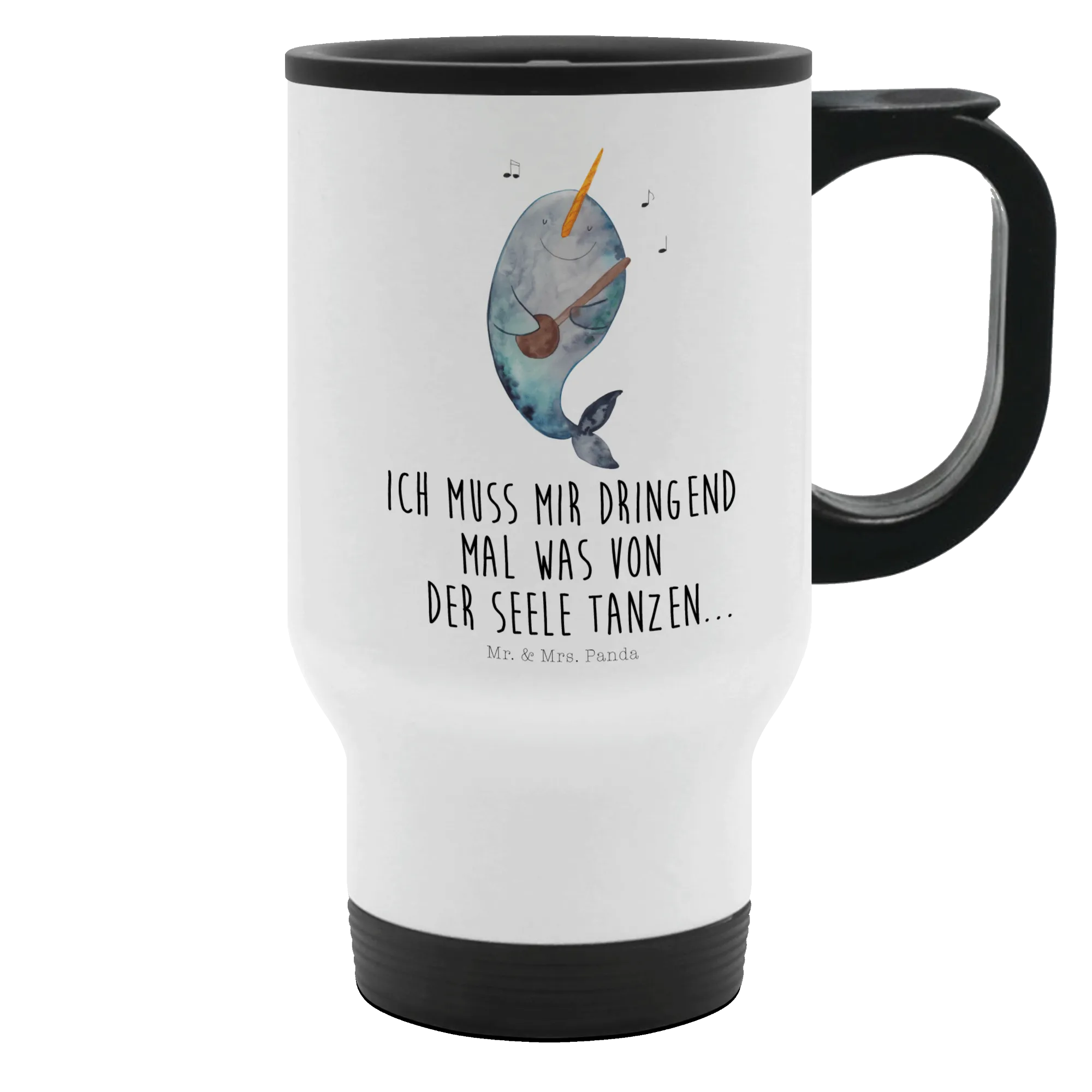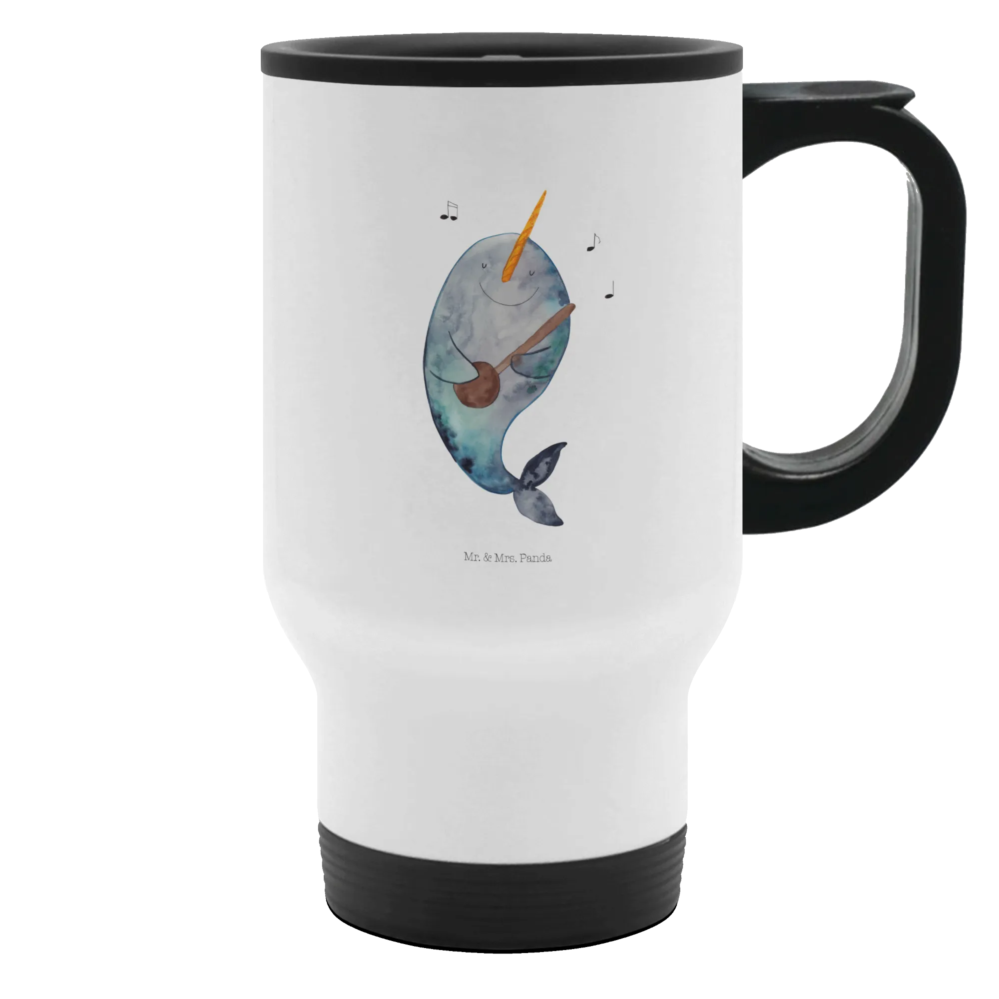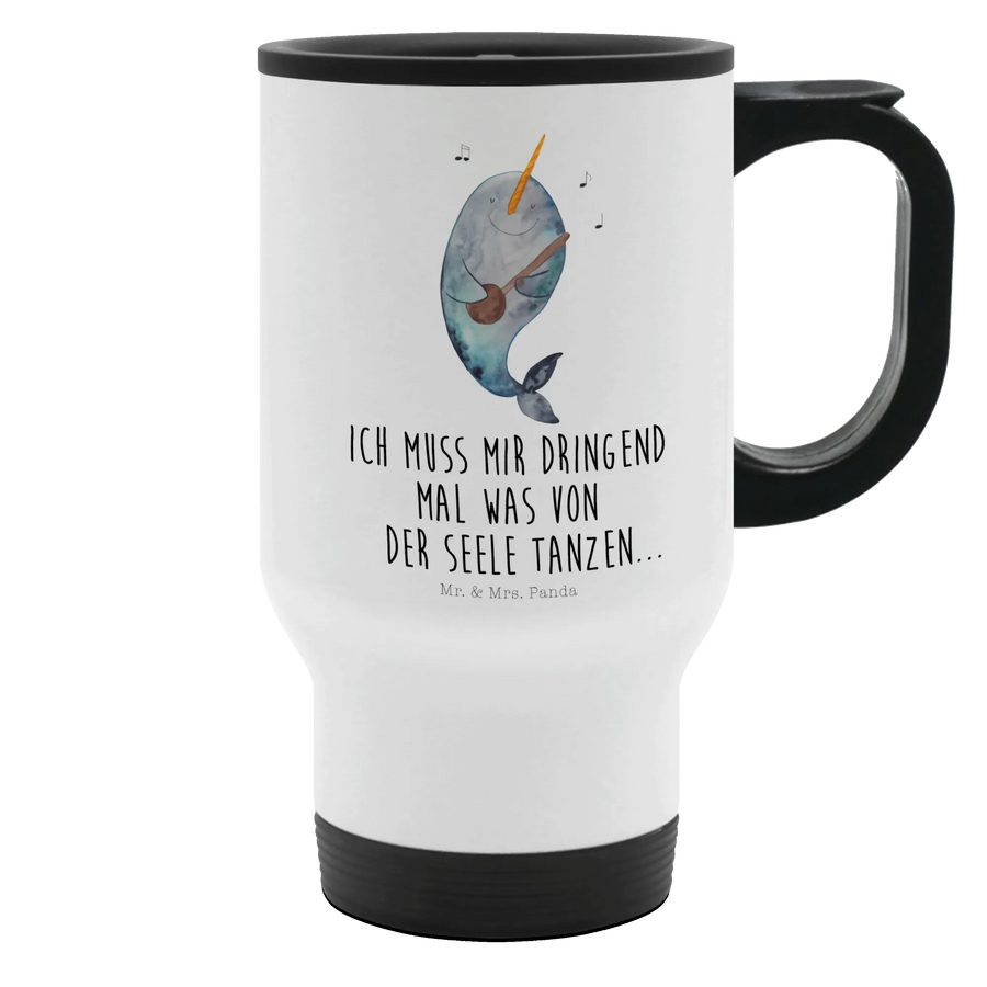 Entdecke den einzigartigen Thermobecher mit dem fröhlichen Narwal-Motiv von Mr. & Mrs. Panda! Dieser praktische Edelstahlbecher passt perfekt zu deinem aktiven Lebensstil.