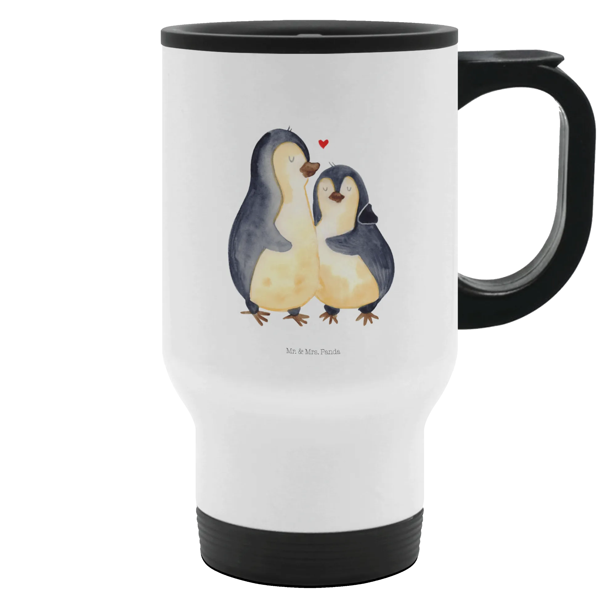 Das stilvolle Motif zeigt einen Pinguin, der seine Flosse schützend um einen anderen Pinguin legt - ein wunderschönes Symbol für Liebe und Freundschaft. Dieser Pinguin umarmend strahlt Geborgenheit aus und erinnert Dich daran, wie wichtig Zuneigung und Loyalität im Leben sind. Ob als Hochzeitsgeschenk, zum Jahrestag für Deinen Partner oder einfach als süßes Geschenk für einen Freund - dieser Thermobecher bringt ein Lächeln in jedes Gesicht.