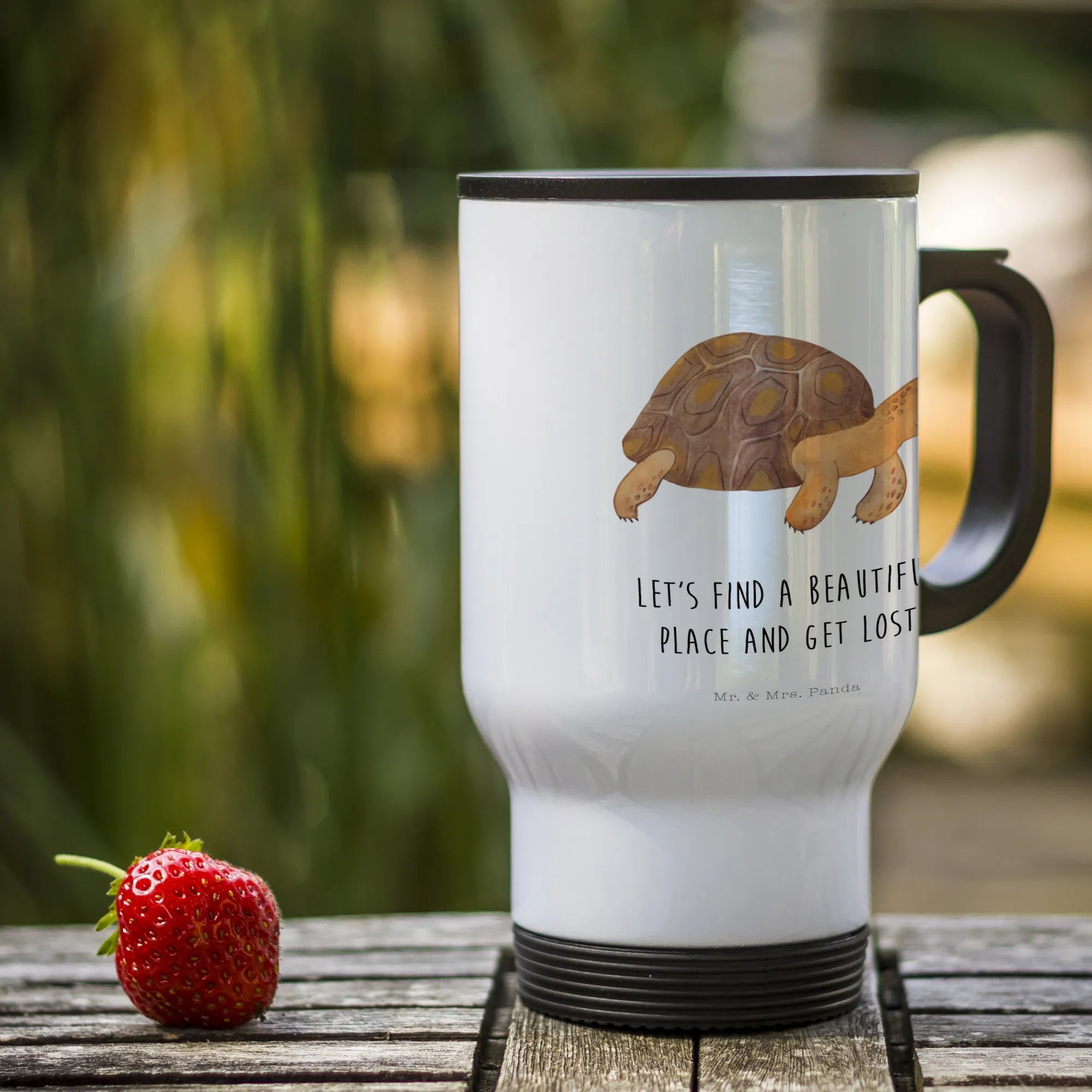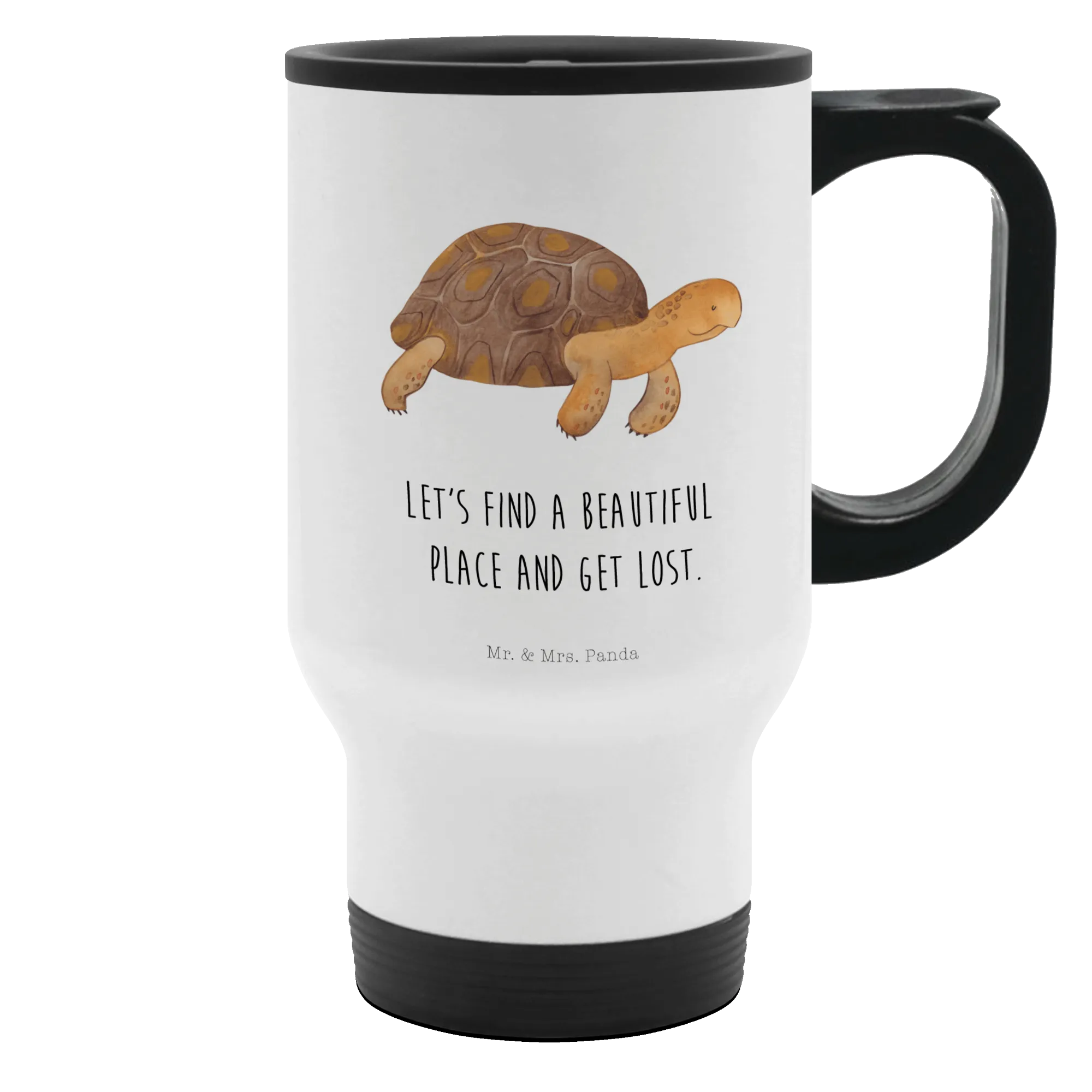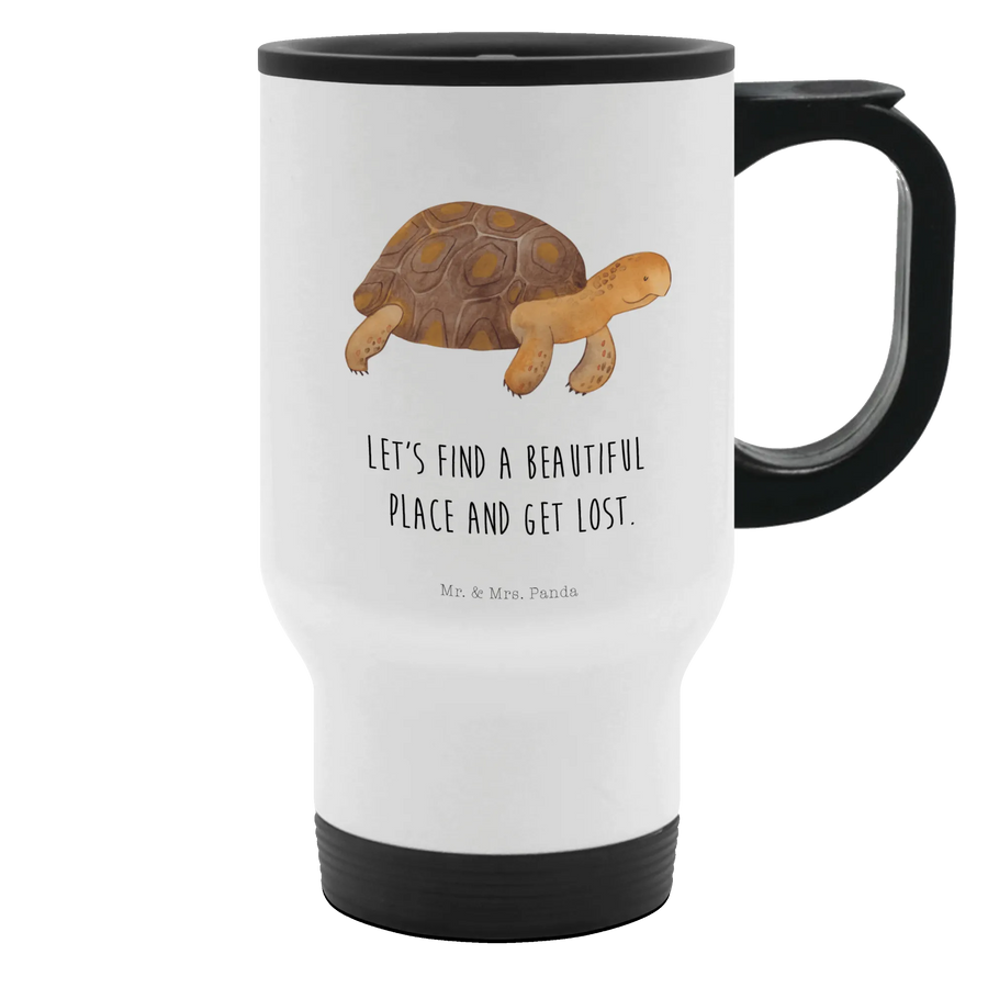 Entdecke den einzigartigen Thermobecher Schildkröte marschiert von Mr. & Mrs. Panda – der perfekte Begleiter für jeden Abenteuerlustigen! Dieser liebevoll gestaltete Kaffeebecher eignet sich hervorragend für all diejenigen, die ihre Getränke auf Reisen, im Büro oder beim Entspannen im Park genießen möchten. Mit einer Füllmenge von 390 ml bietet der edelstahl- und kunststoffverarbeitete Thermobecher alles, was du brauchst, um sowohl heiße als auch kalte Getränke optimal aufzubewahren. Die Schildkröte auf dem Becher symbolisiert dein inneres Abenteuer, ganz nach dem Motto: "Let's find a beautiful place and get lost."