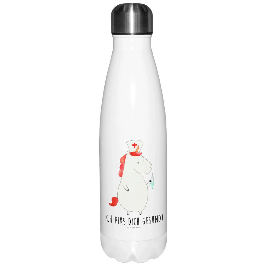 Entdecke die zauberhafte Einhorn Krankenschwester Thermosflasche von Mr. & Mrs. Panda – das perfekte Geschenk für alle, die in der Pflege arbeiten! Mit einem hübschen Einhorn-Motiv und dem frechen Spruch "Ich piks dich gesund!" ist diese isolierte Trinkflasche ein wahrer Hingucker und bringt ein Lächeln in den oft stressigen Alltag einer Krankenschwester oder eines Krankenpflegers. Ob beim Kaffee in der Pause oder beim heißen Tee nach einem langen Schichtdienst – diese Thermosflasche hält deine Lieblingsgetränke für Stunden warm oder kalt.
