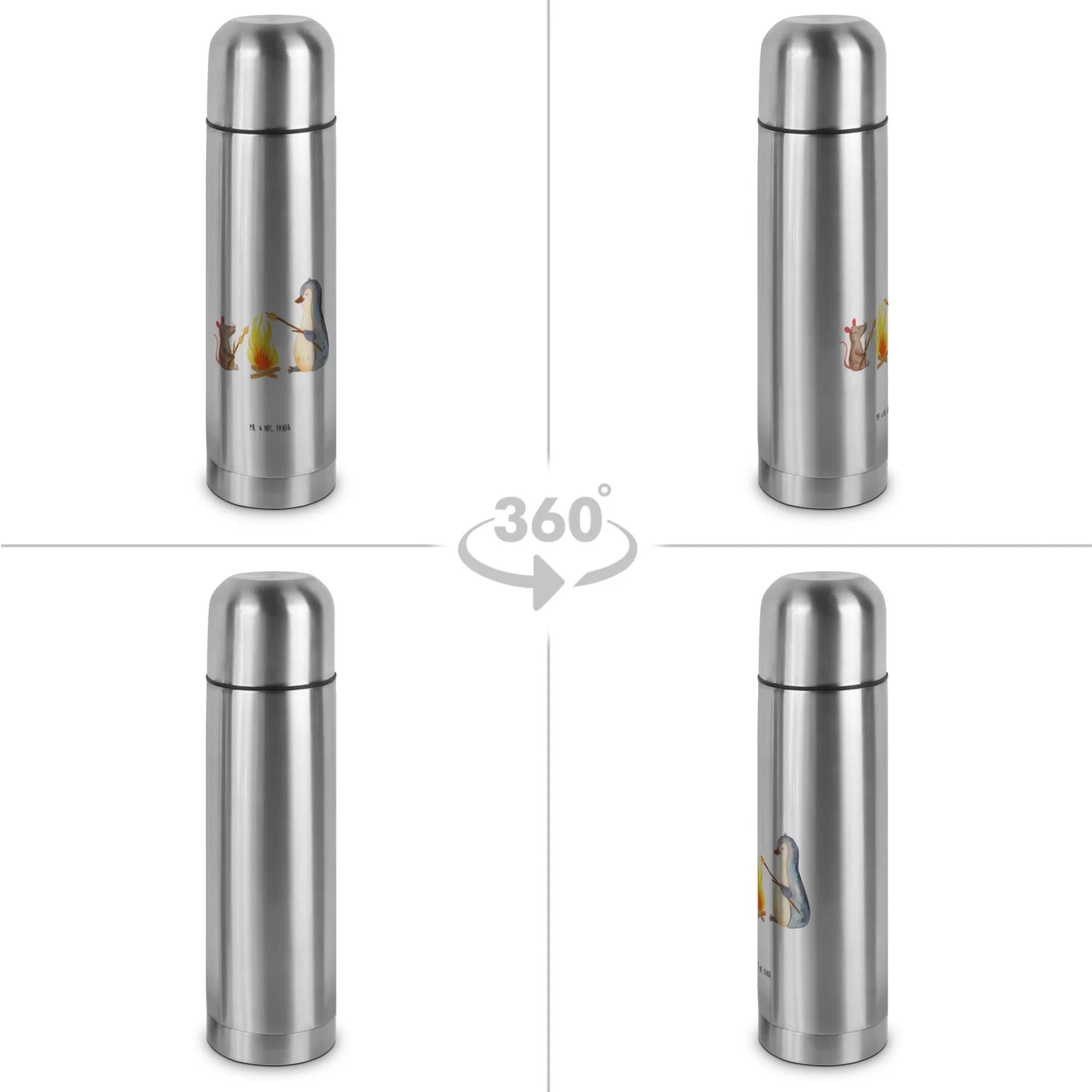 Mit ihrem einzigartigen Motiv, das einen süßen Pinguin und eine fröhliche Maus zeigt, die am Lagerfeuer sitzen und leckere Marshmallows grillen, zaubert sie jedem ein Lächeln ins Gesicht. Sie ist nicht nur ein echter Hingucker, sondern auch praktisch: Dank der robusten Edelstahl-Ausführung bleibt dein Getränk über 24 Stunden heiß und sie ist kratzfest sowie spülmaschinengeeignet – also ideal für den Alltag im Büro oder beim Grillen mit Freunden.