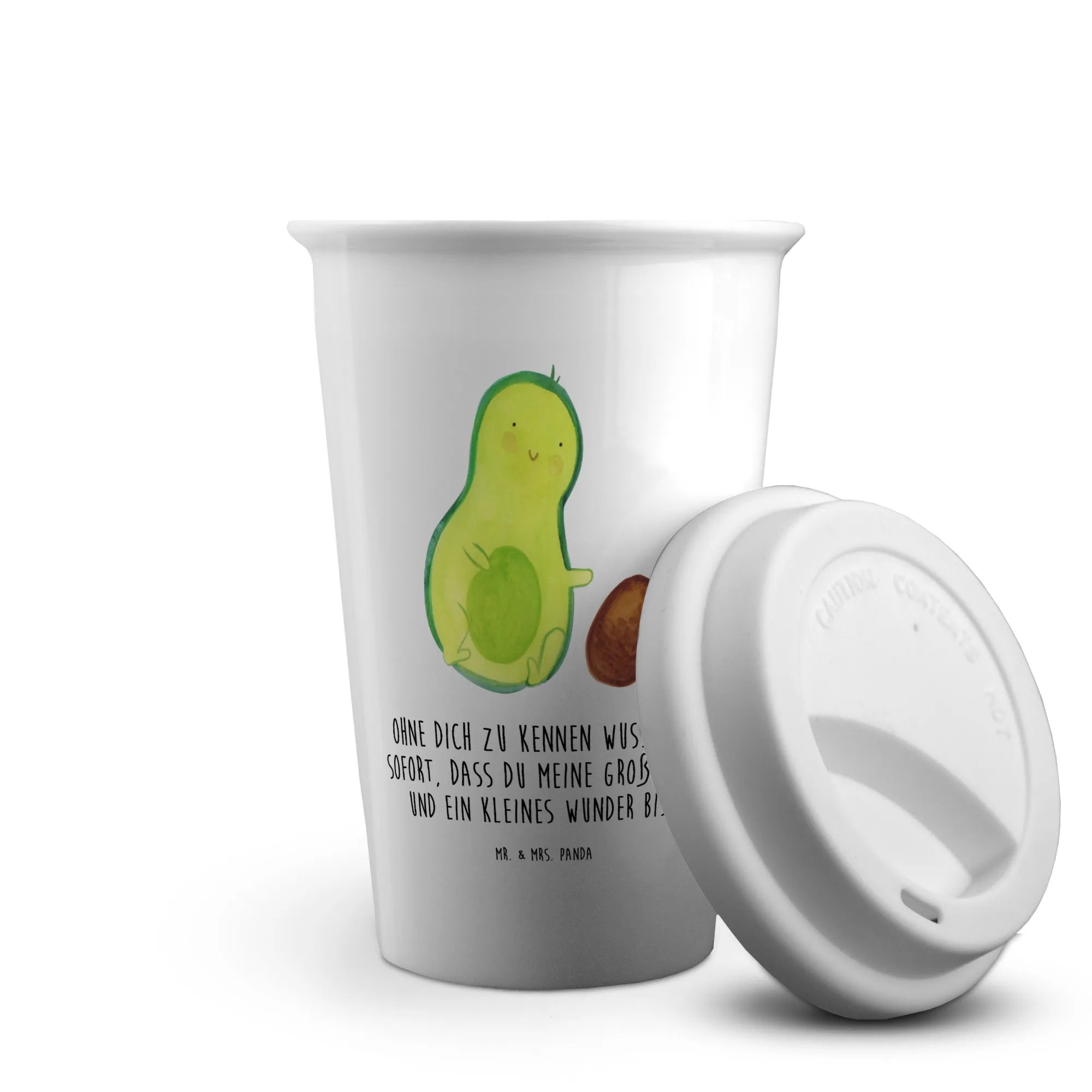 Willkommen in der zauberhaften Welt von Mr. & Mrs. Panda, wo jedes Produkt eine Geschichte erzählt. Unser To Go Becher mit dem herzlichen Motiv der Avocado, die ihren Kern rollt, ist mehr als nur ein Trinkgefäß – er ist ein treuer Begleiter für all die kleinen und großen Abenteuer. 🥑✨