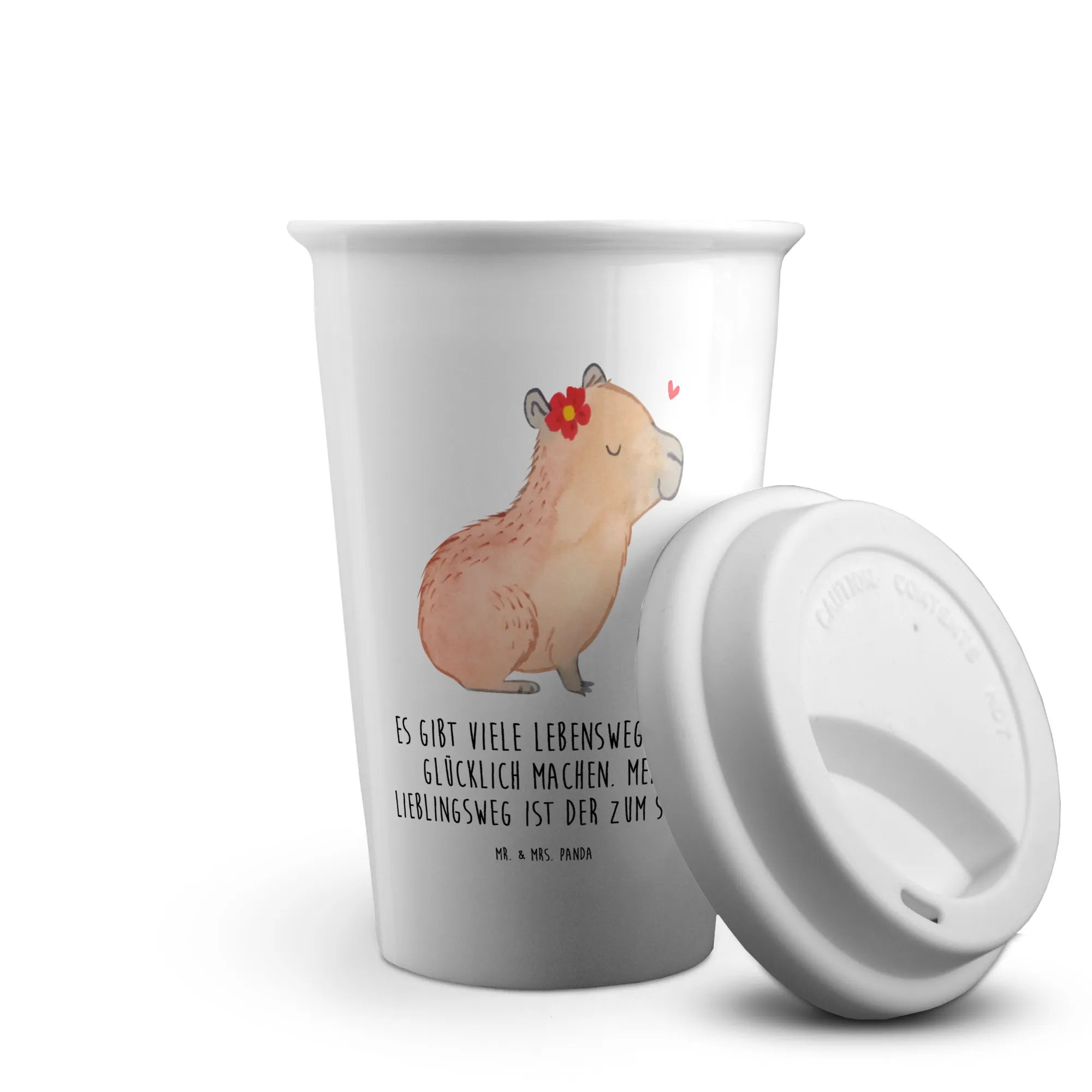 Mr. & Mrs. Panda Entspanntes Capybara mit Blume - Finden Sie Ihr Alltagsglück - Gemütliche Wohnaccessoires