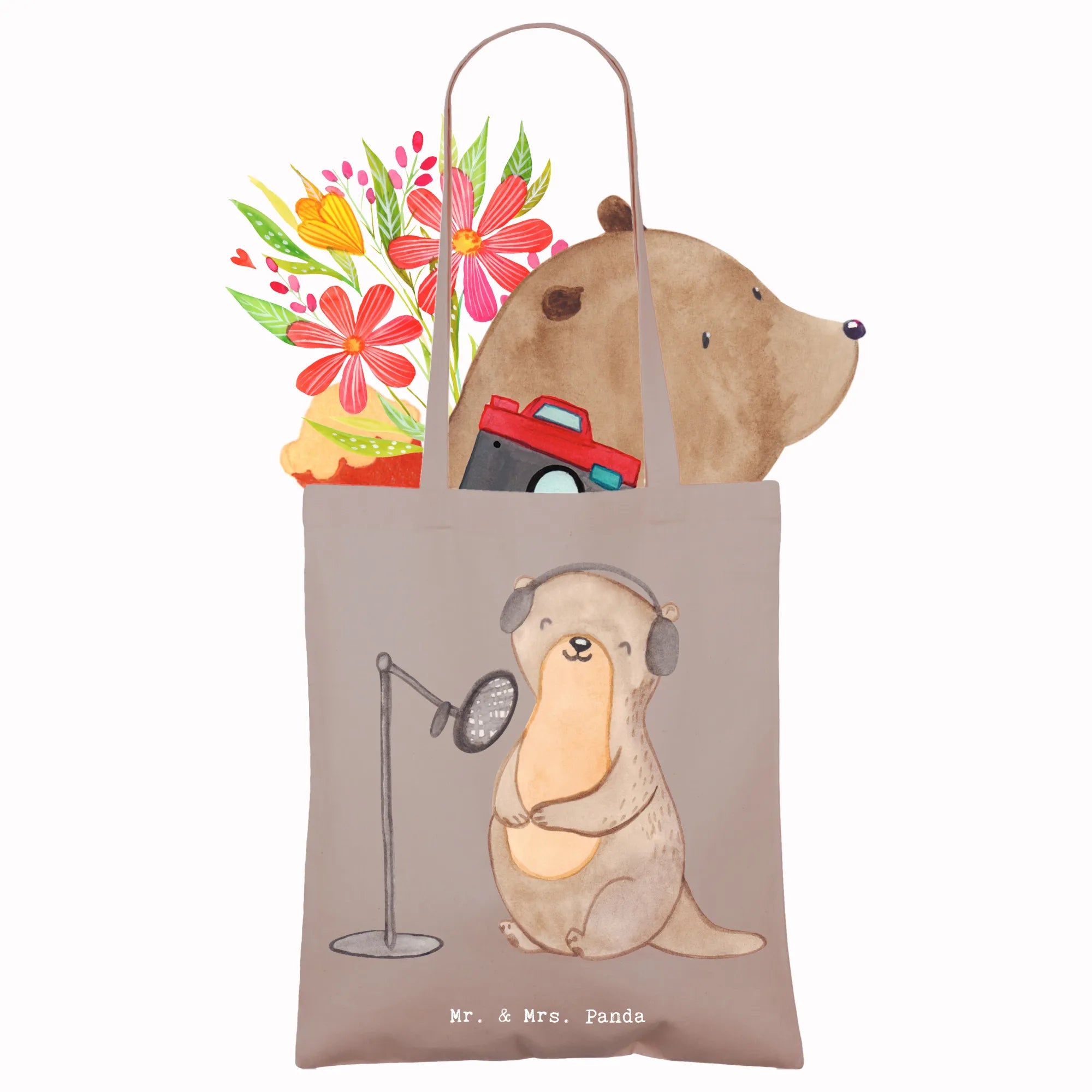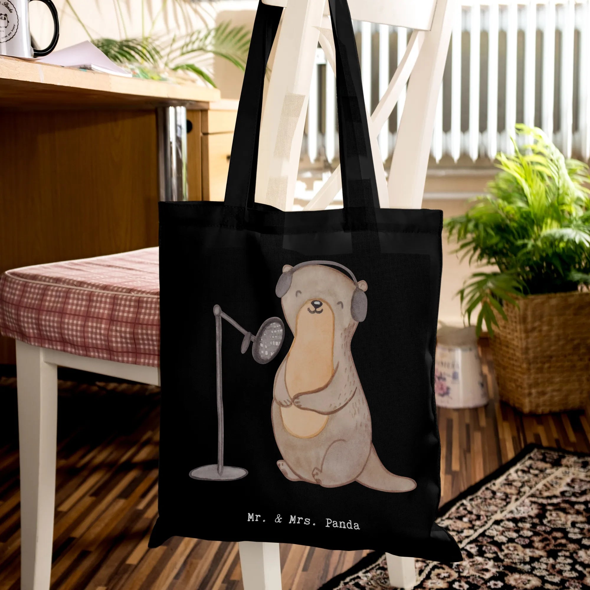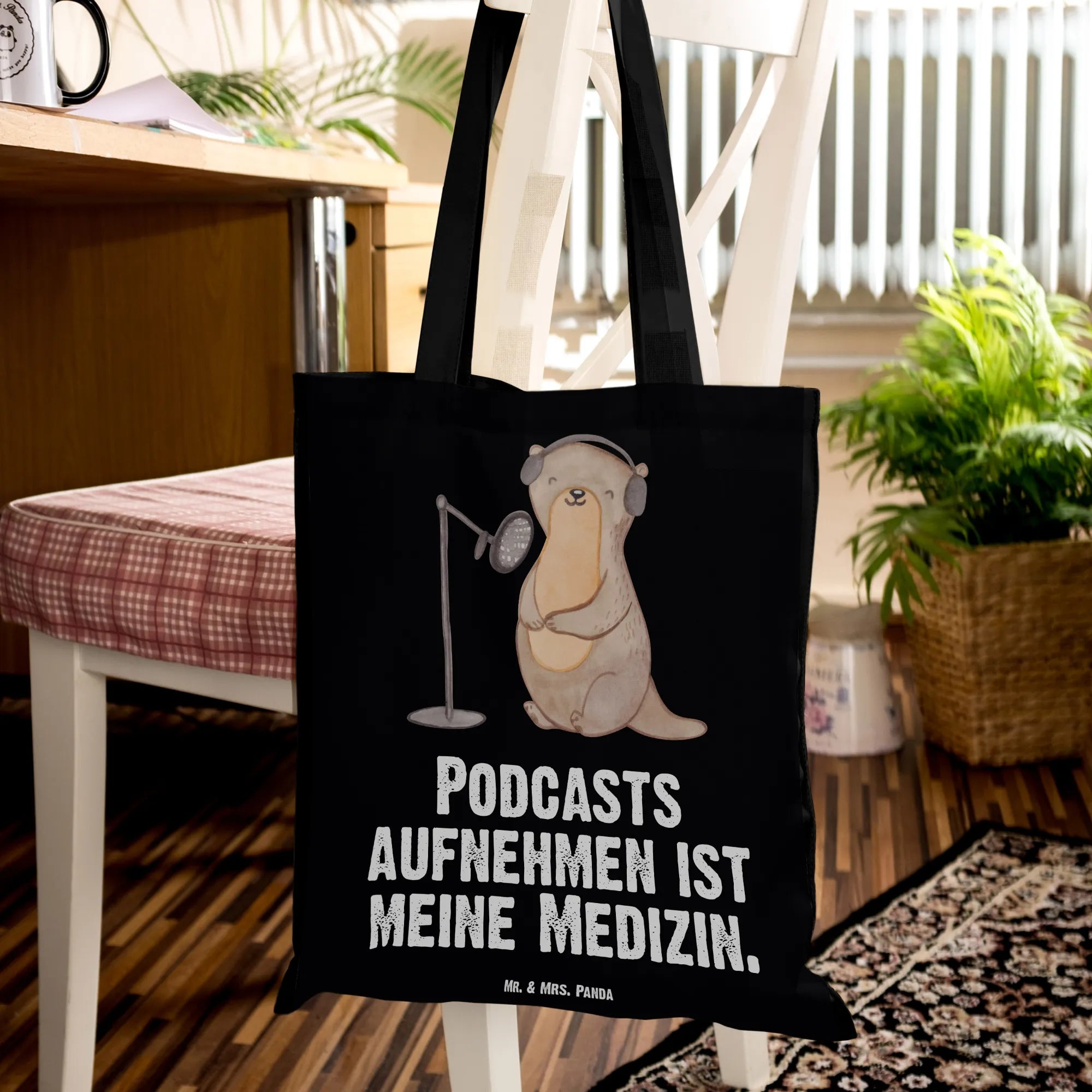 Otter – Podcasts aufnehmen ist meine Medizin. Diese bezaubernde Tragetasche von Mr. & Mrs. Panda ist das ideale Geschenk für alle Podcast-Fans, Podcasterinnen und Podcaster. Auf der Tasche sitzt ein niedlicher Otter an seinem Podcast-Equipment – handgezeichnet in Aquarell und liebevoll gestaltet. Der Spruch „Podcasts aufnehmen ist meine Medizin." bringt Humor und Herz in deinen Alltag.