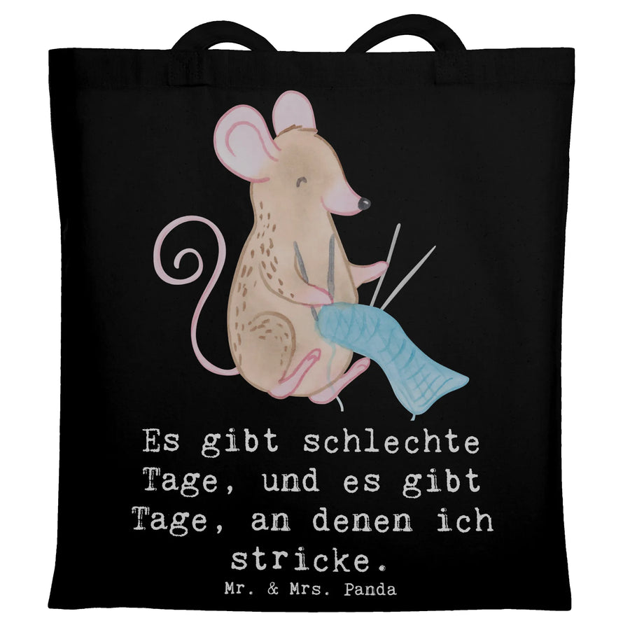 Beutel Maus Stricken - mit Spruch - Schwarz