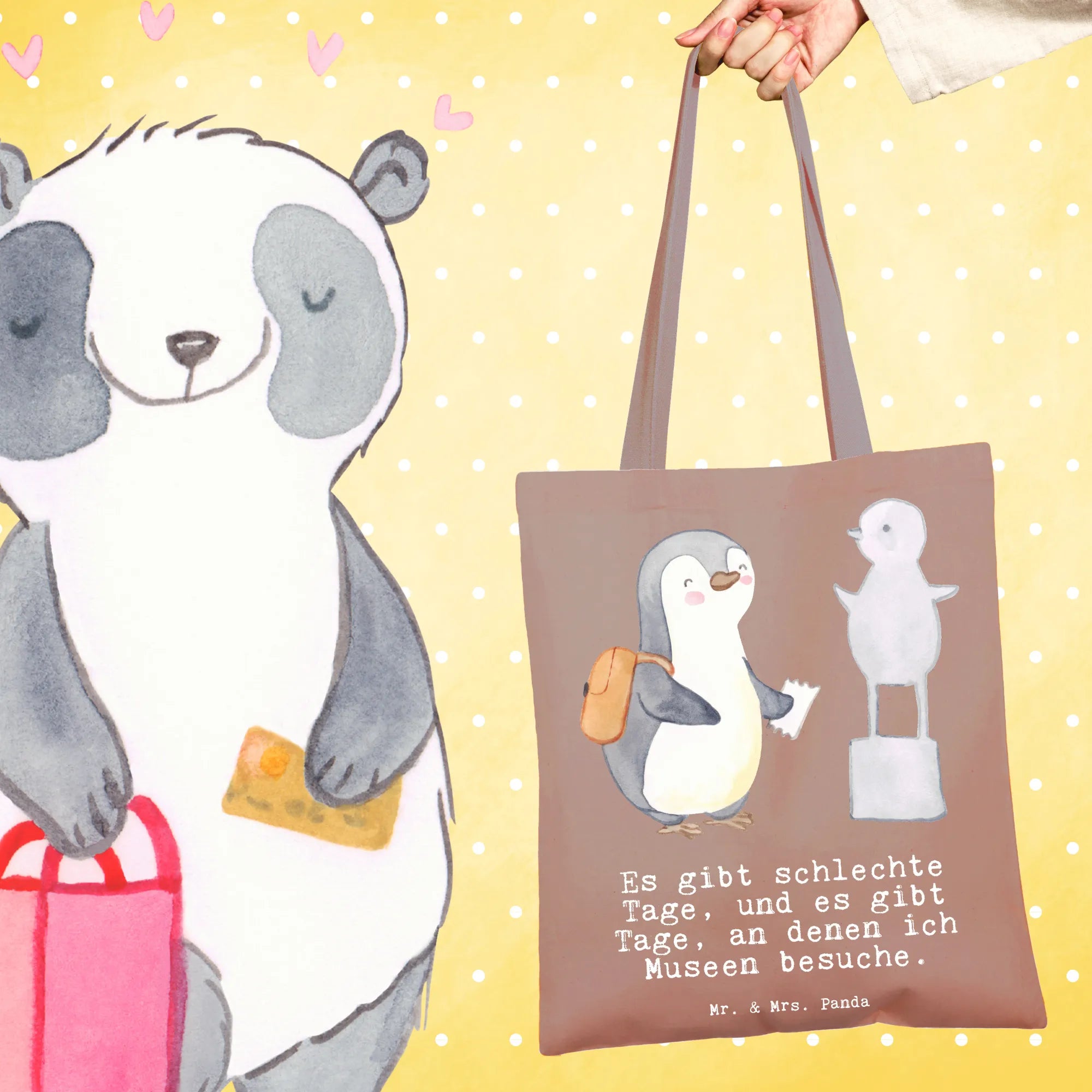 Mr. & Mrs. Panda Tragetasche „Pinguin – Museum besuchen Tage“