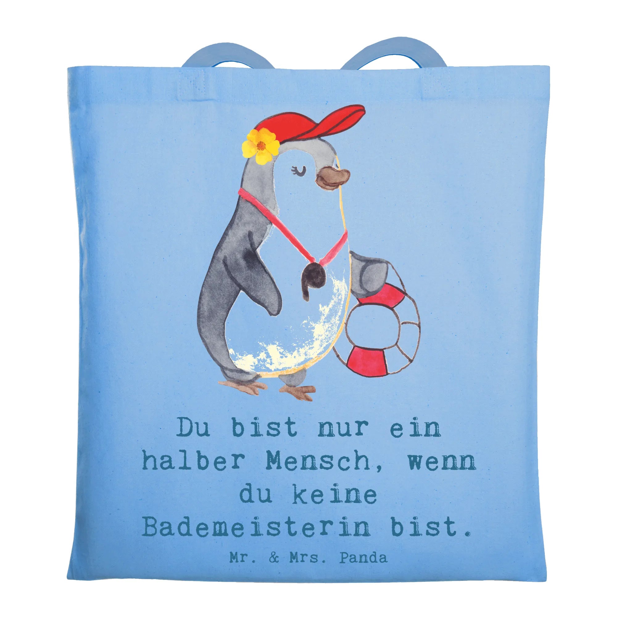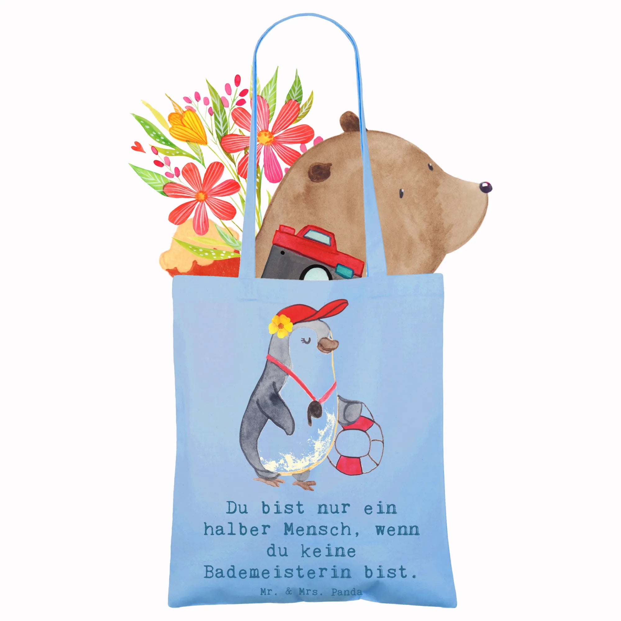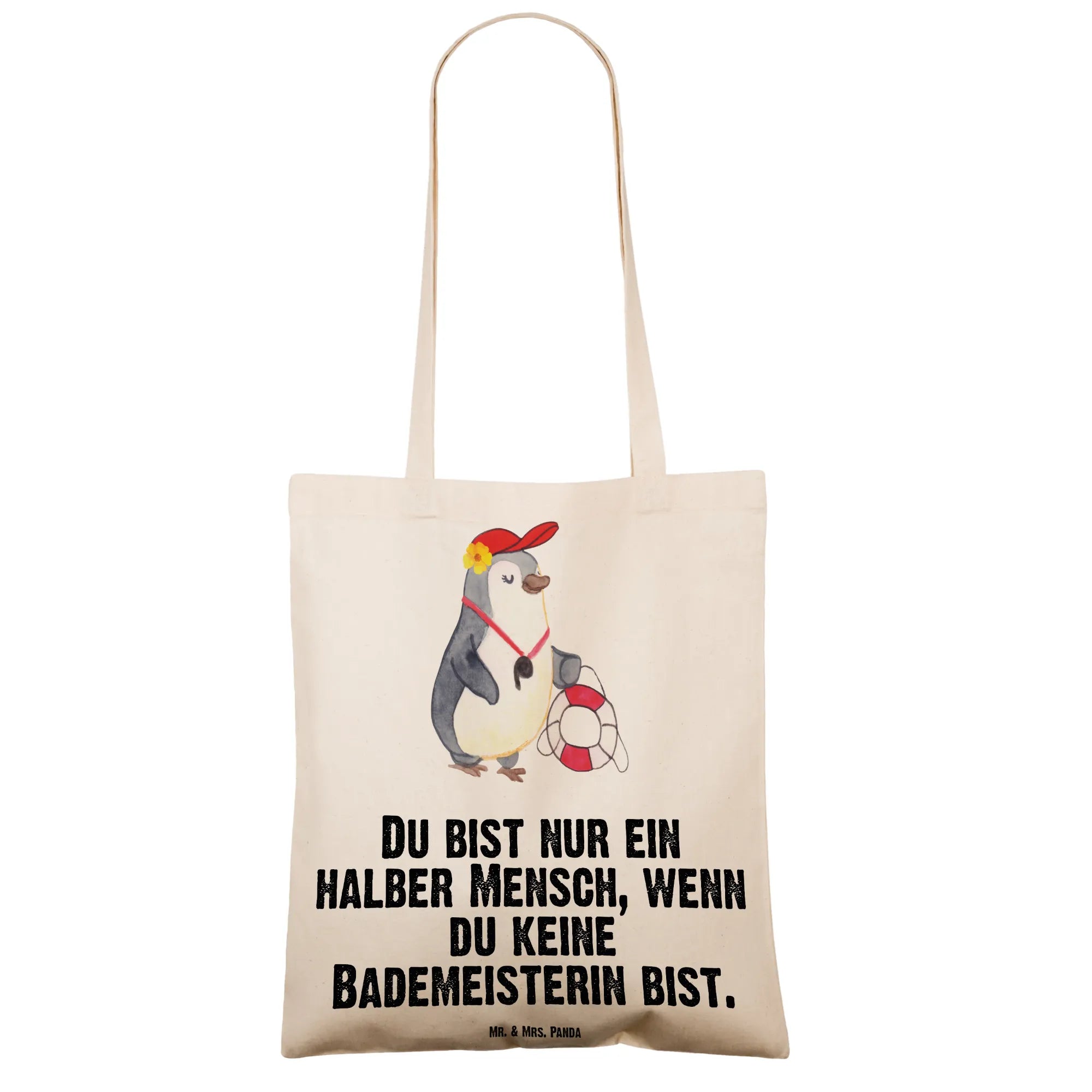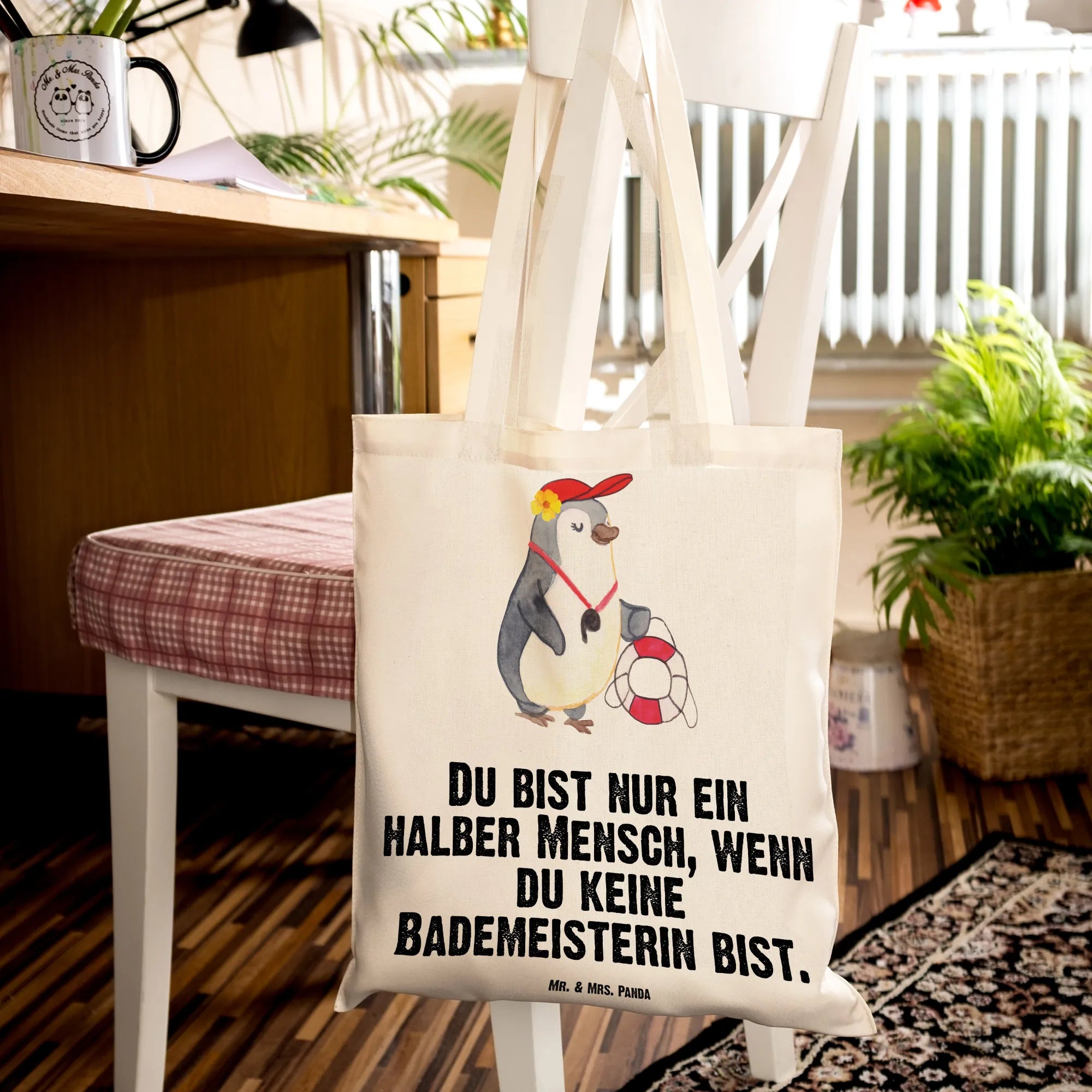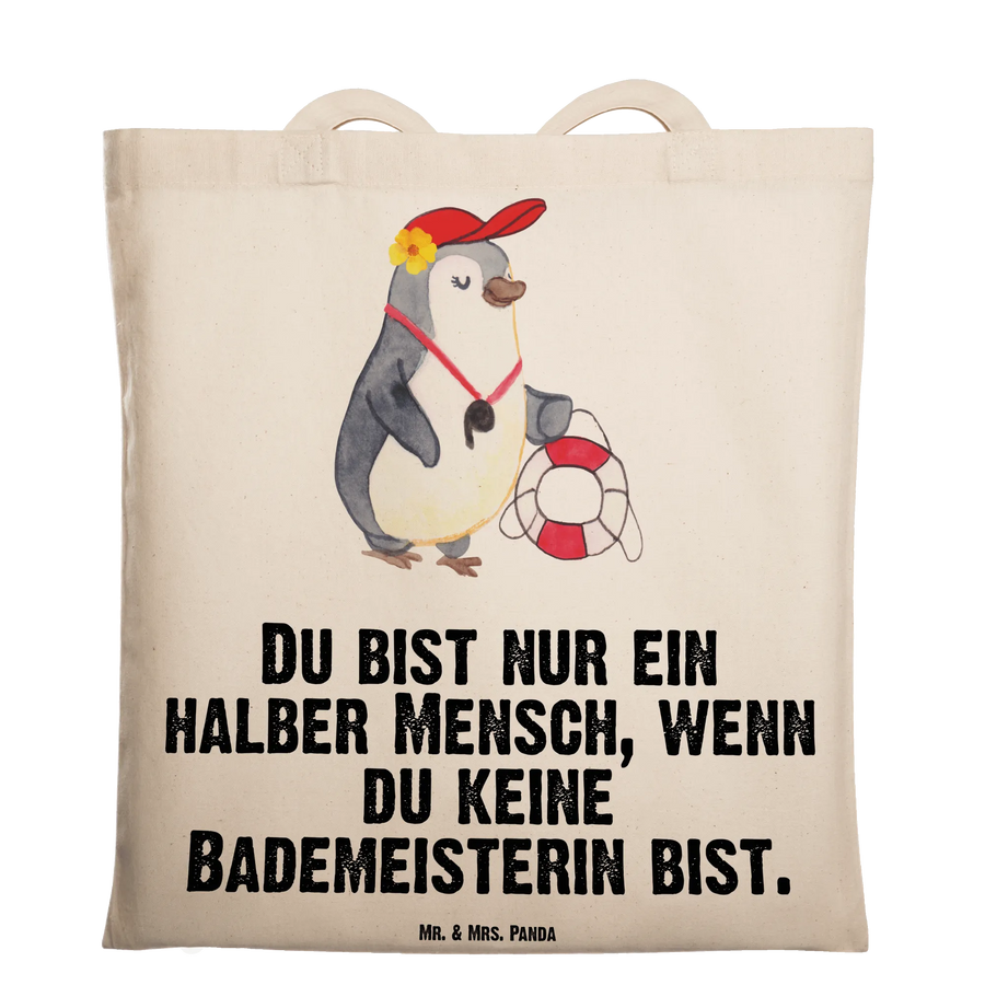 Die Tragetasche „Bademeisterin mit Herz“ von Mr. & Mrs. Panda verbindet liebevolles Design mit praktischem Nutzen. Das handgezeichnete Aquarell-Motiv zeigt eine sympathische Pinguindame als Bademeisterin mit Schwimmring und Trillerpfeife – ein warmherziges Motiv, das sofort ins Auge fällt.