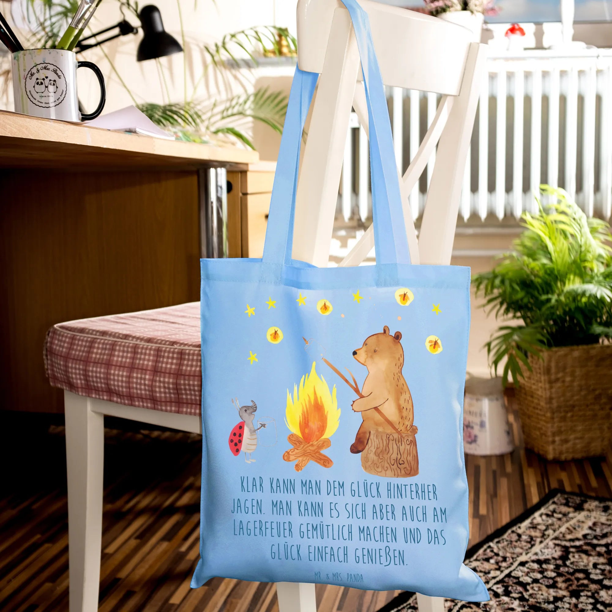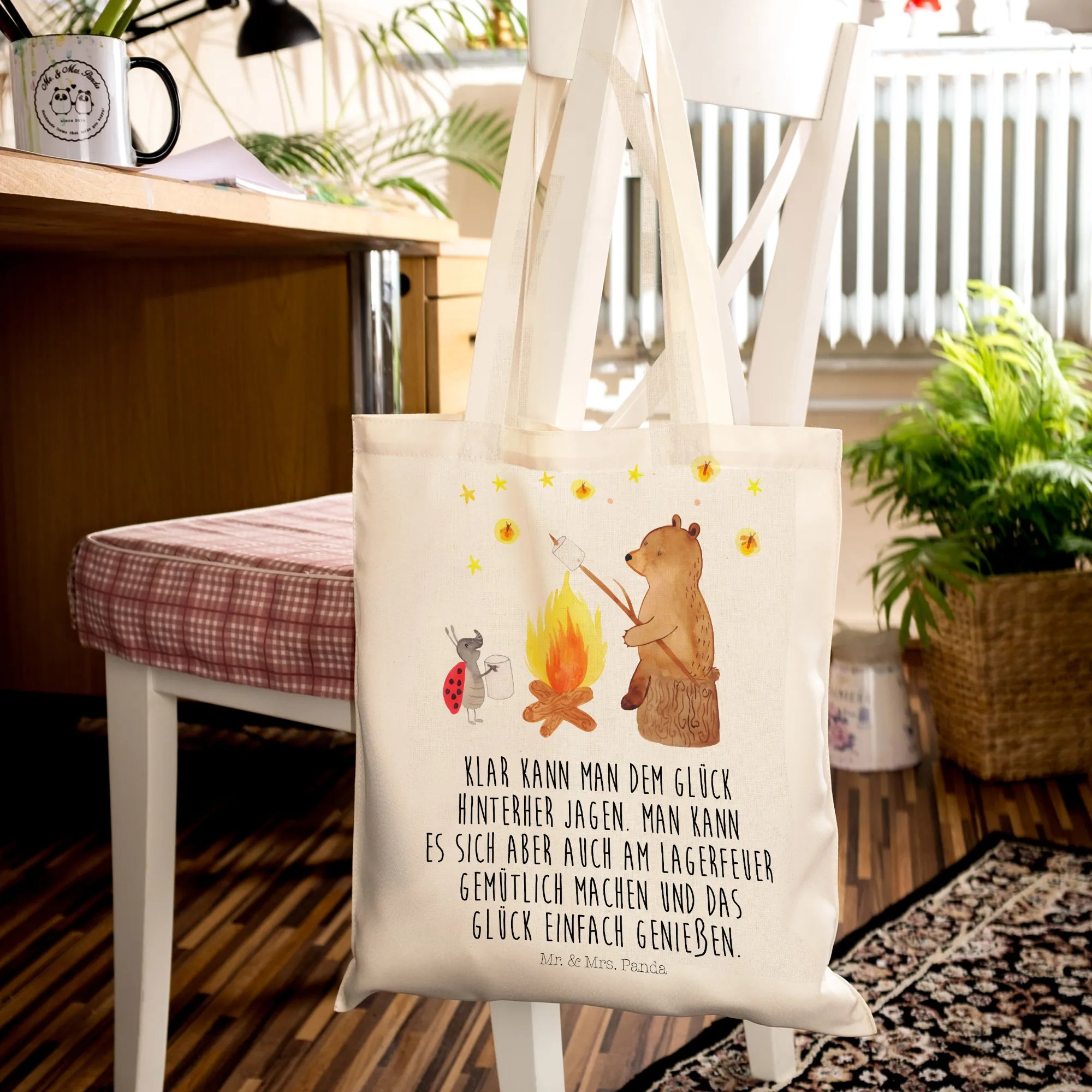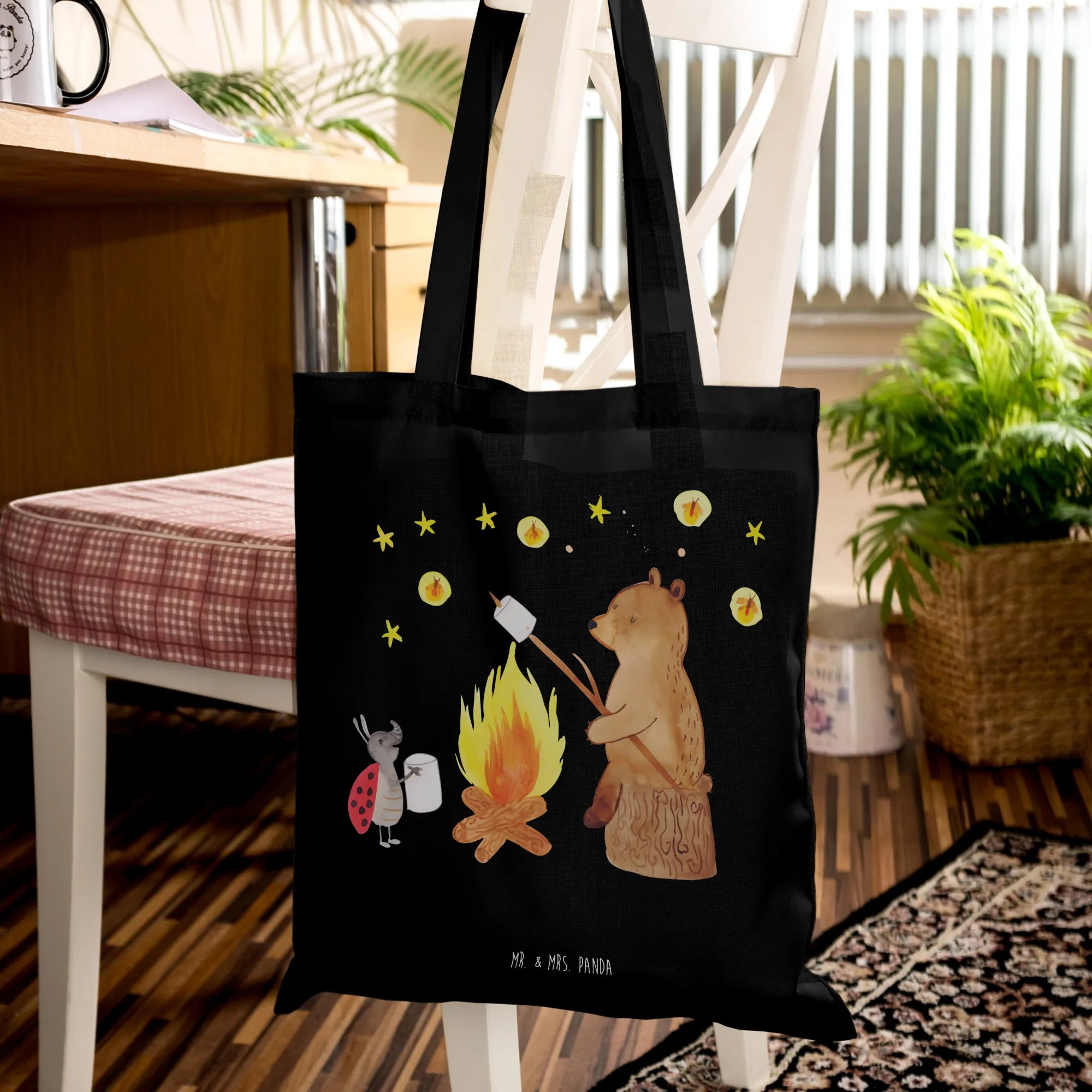 Shopping Tasche Bär & Marienkäfer Lagerfeuer - mit Spruch - Transparent