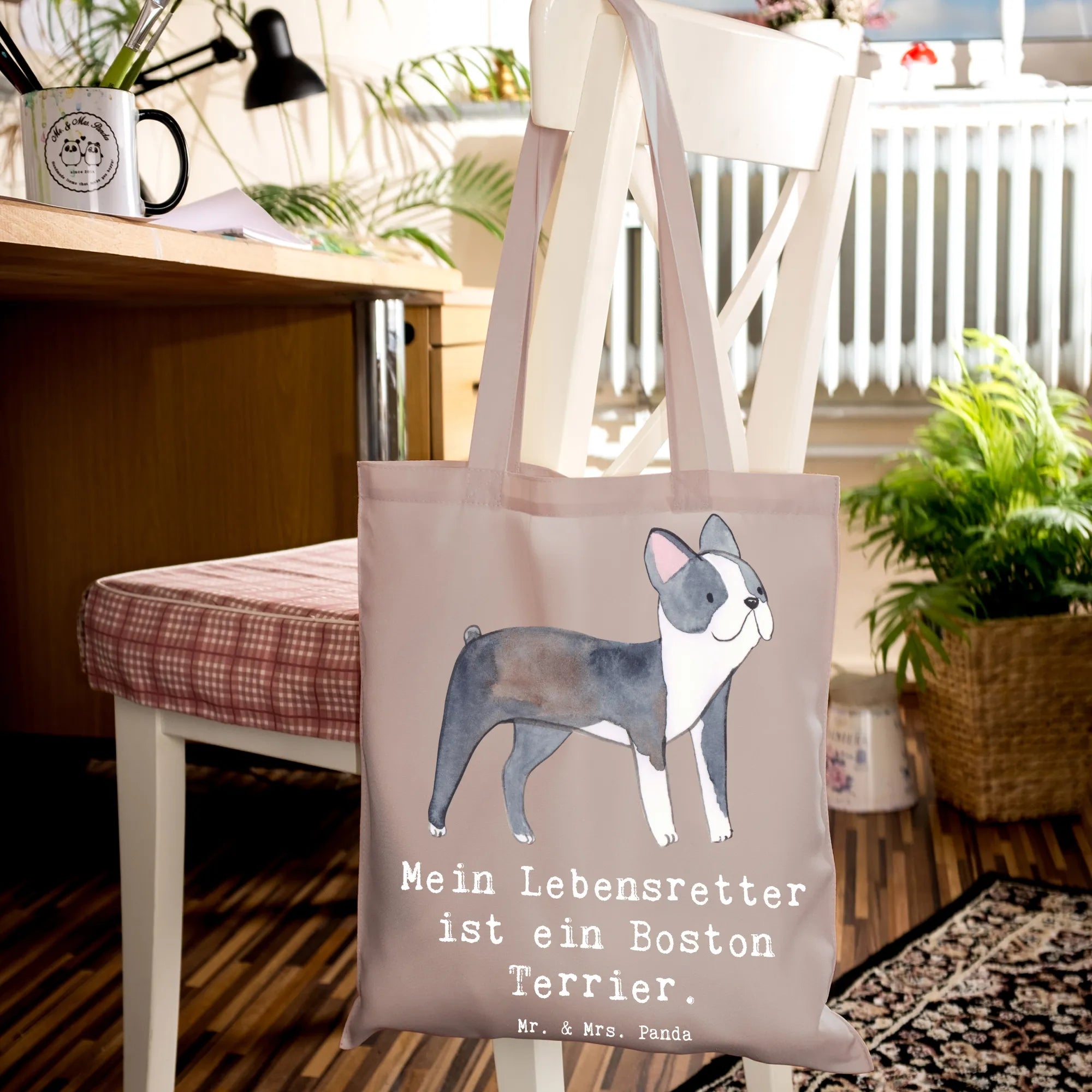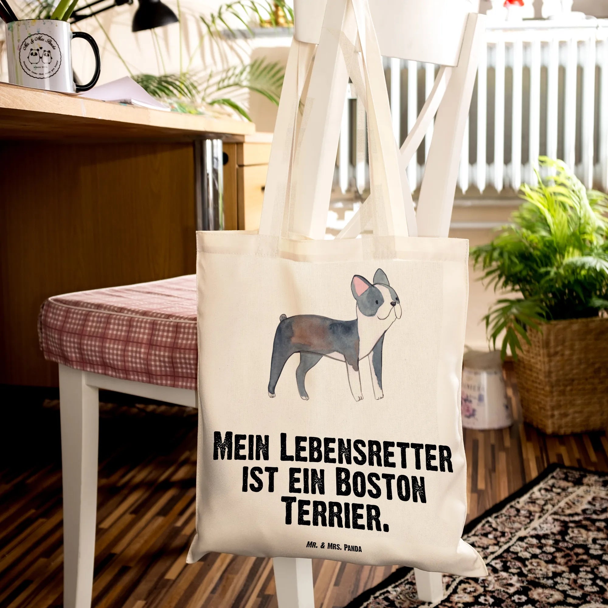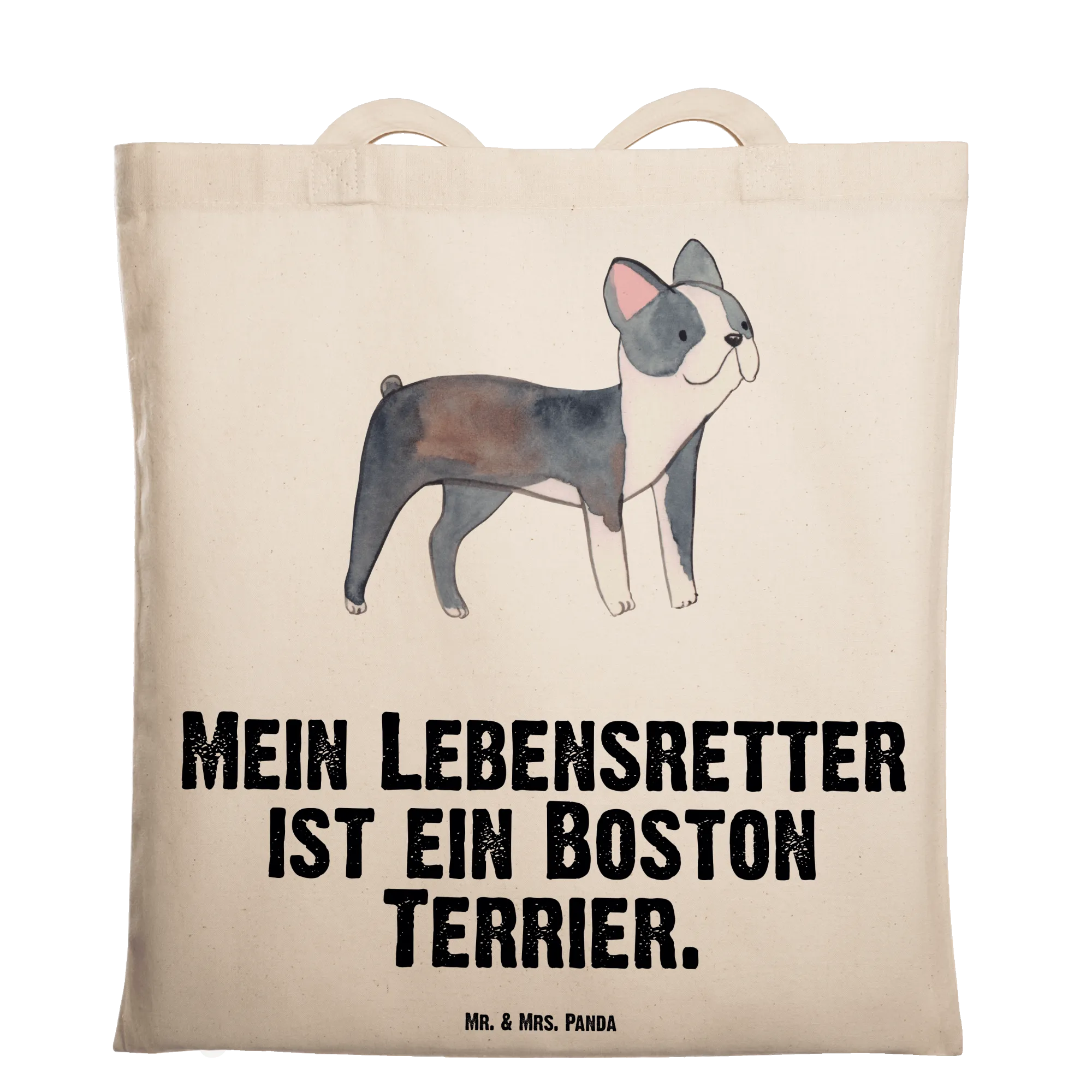 Tragetasche Boston Terrier Lebensretter - mit Spruch - Transparent