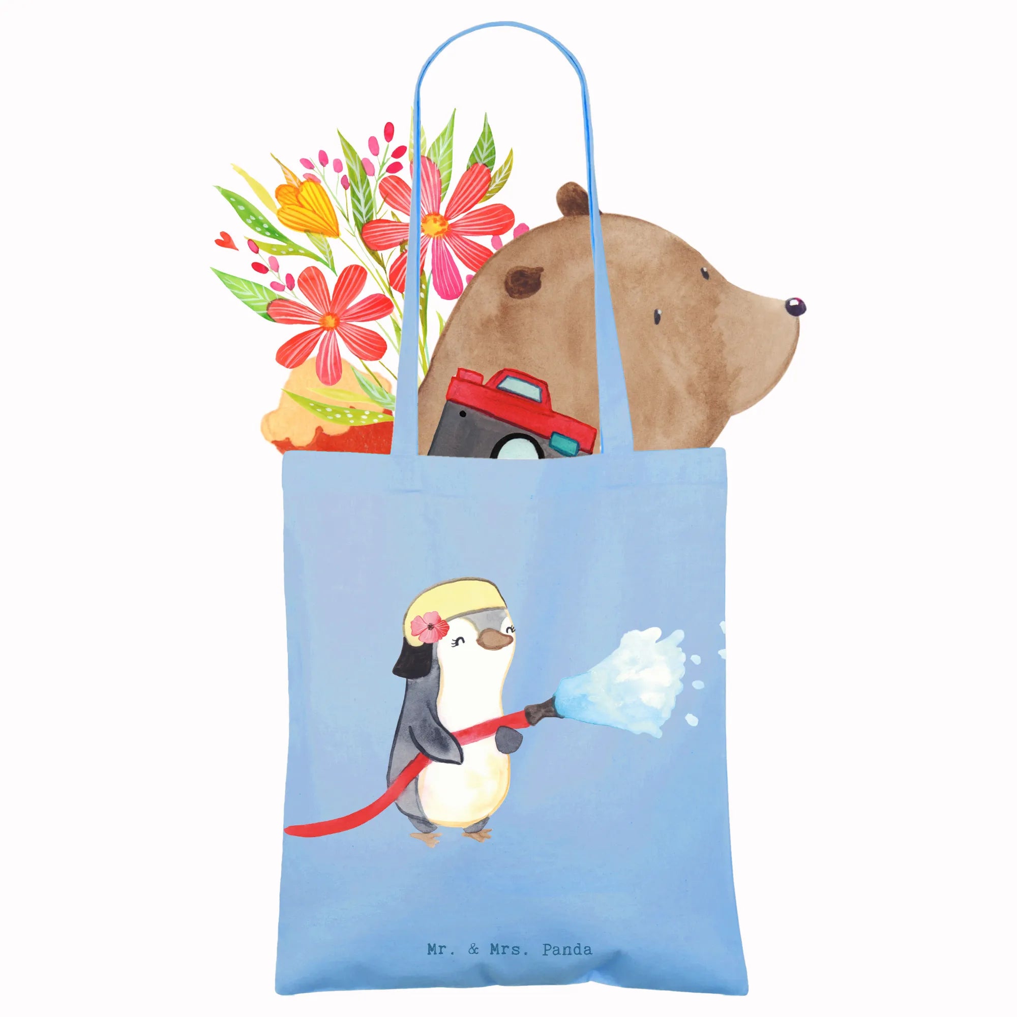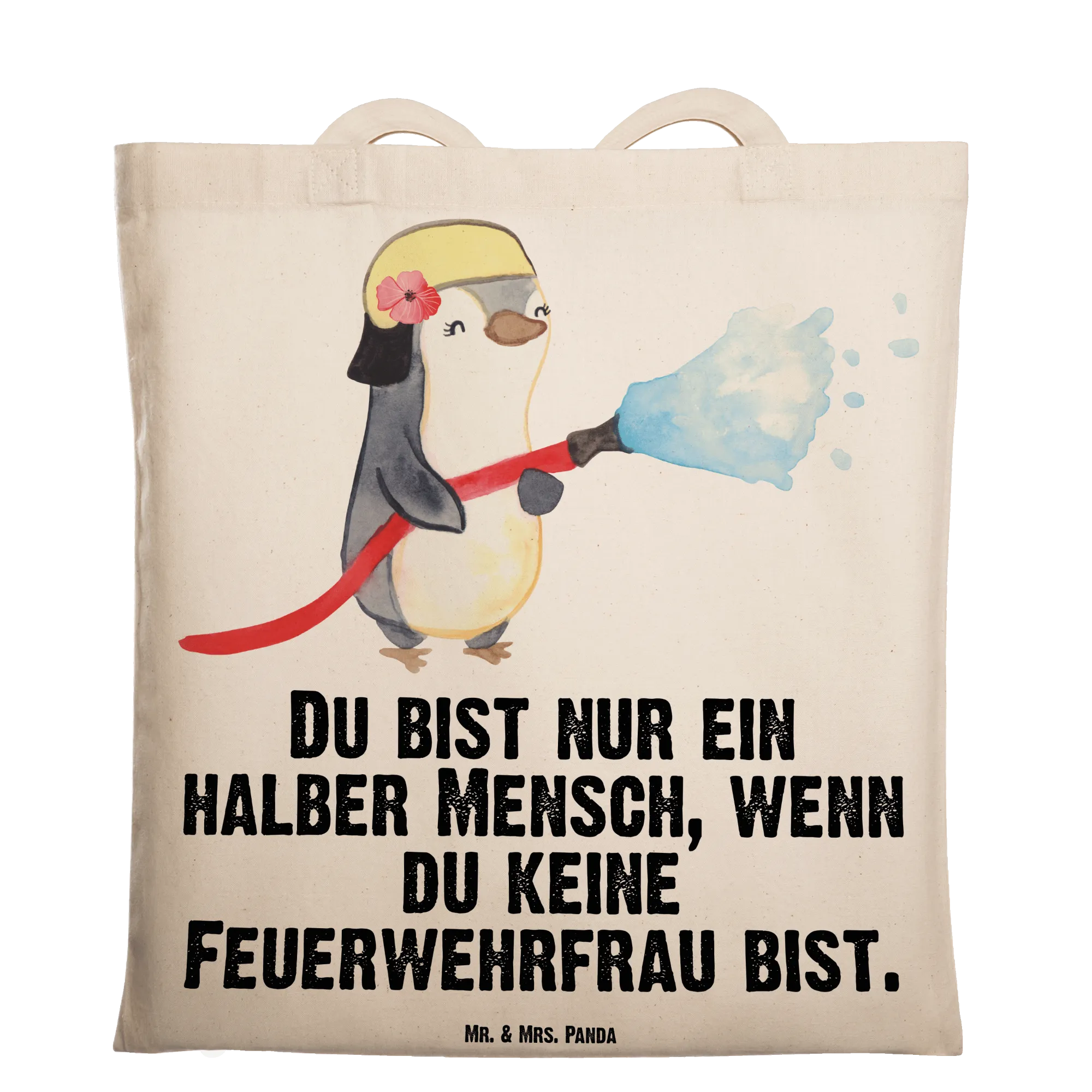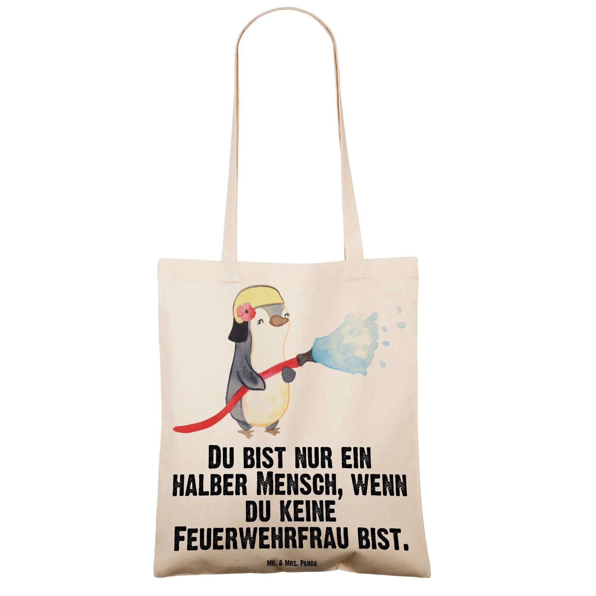 Die Tragetasche Feuerwehrfrau mit Herz von Mr. & Mrs. Panda ist das perfekte Geschenk für Feuerwehrfrauen und alle, die sich für diesen außergewöhnlichen Beruf begeistern. Sie ist nicht nur ein praktischer Begleiter im Alltag, sondern auch ein liebevolles Dankeschön für die unermüdliche Arbeit, die Feuerwehrfrauen leisten.