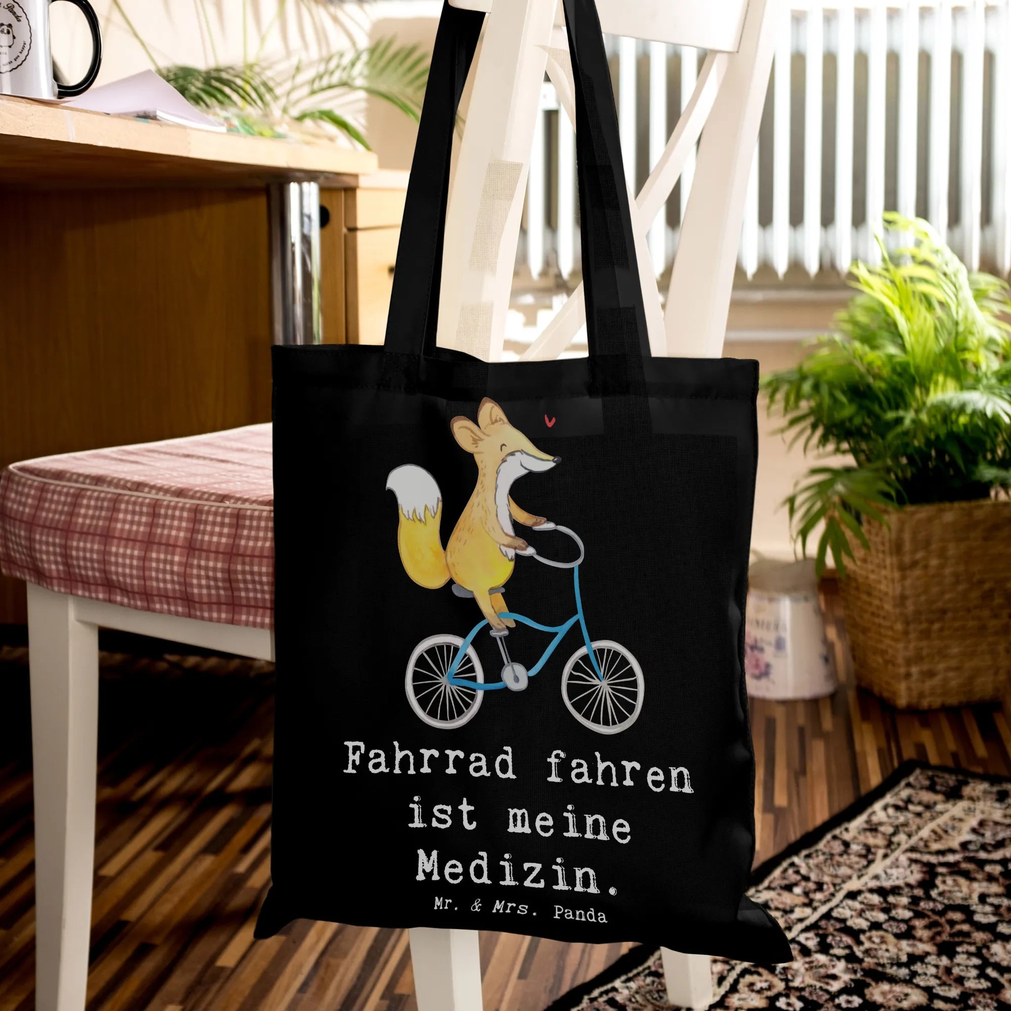 Tragetasche Fuchs Fahrrad fahren - mit Spruch - Transparent
