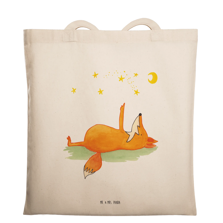 Die Tragetasche "Fuchs Sterne" von Mr. & Mrs. Panda ist das perfekte Accessoire für alle, die die Sterne lieben und täglich Freude verbreiten möchten. Hochwertig aus 100% Baumwolle gefertigt, vereint diese liebevoll gestaltete Tasche Funktionalität und Stil. Mit einem süßen Fuchs, der auf dem Rücken liegt und den Sternen zuschaut, bringt das Design Freude in deinen Alltag. Der Slogan "Always look on the bright side of life" erinnert dich daran, stets positiv zu bleiben, ganz gleich, was kommt.
