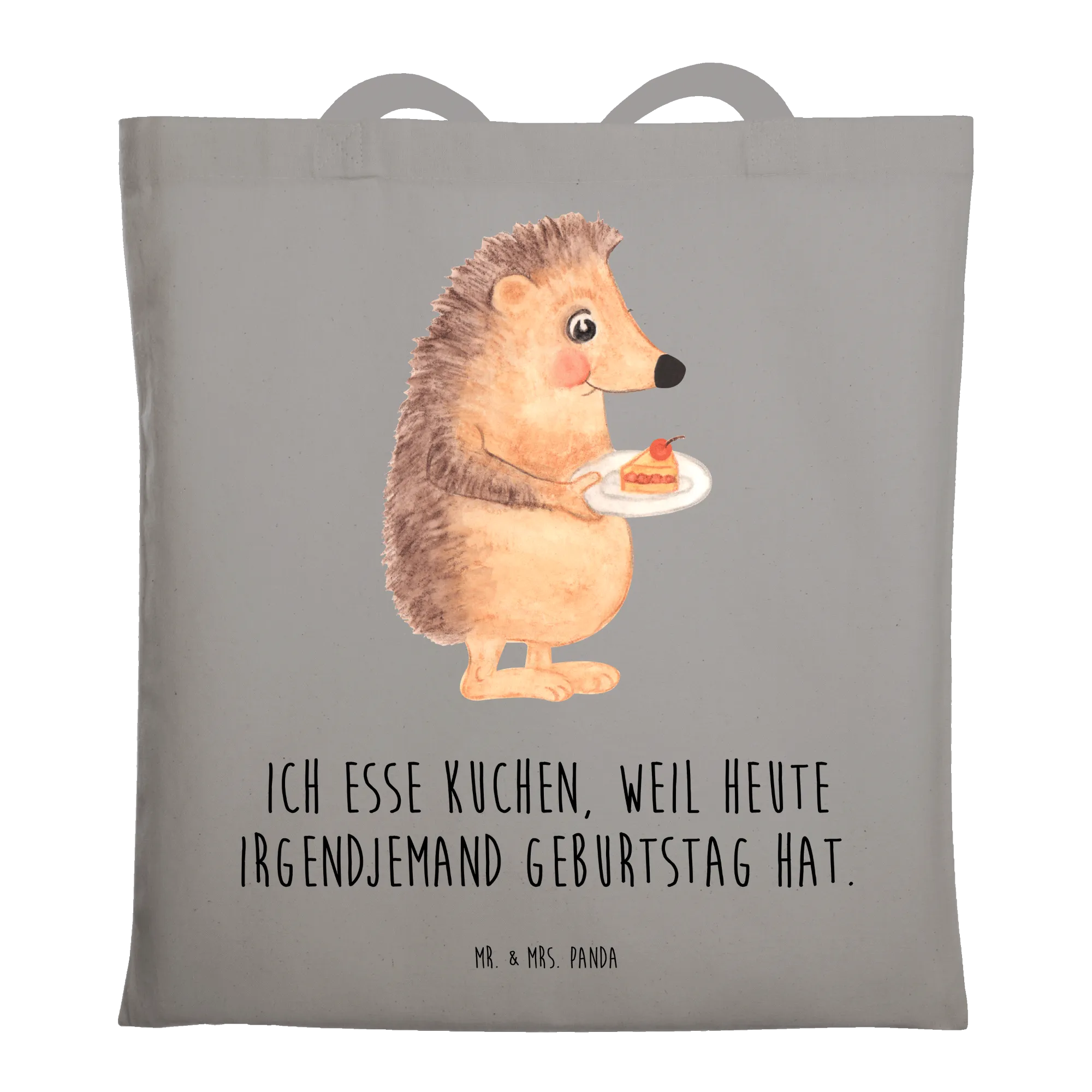 Liebevolle Tragetasche „Igel mit Kuchenstück“ aus der Small World Kollektion von Mr. & Mrs. Panda