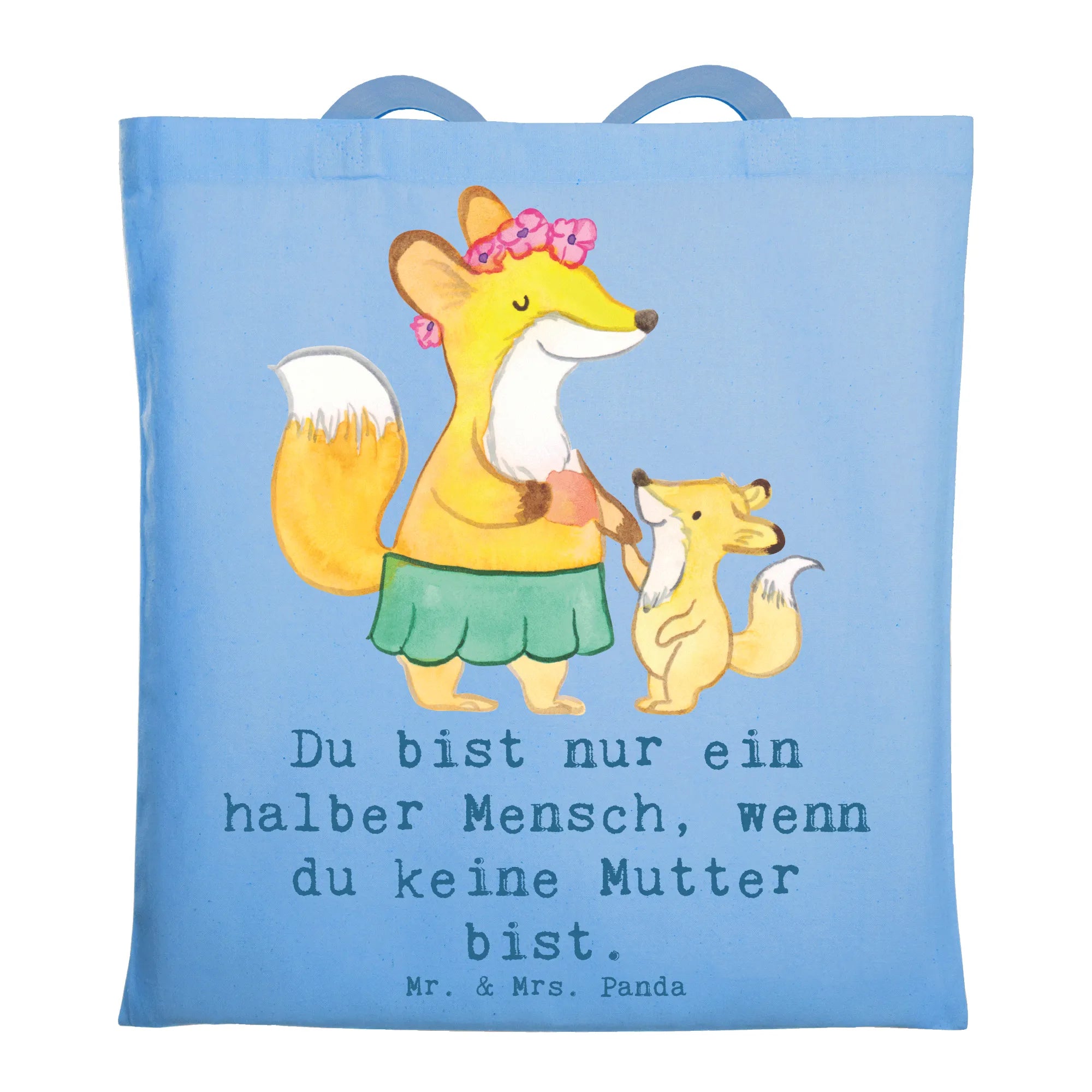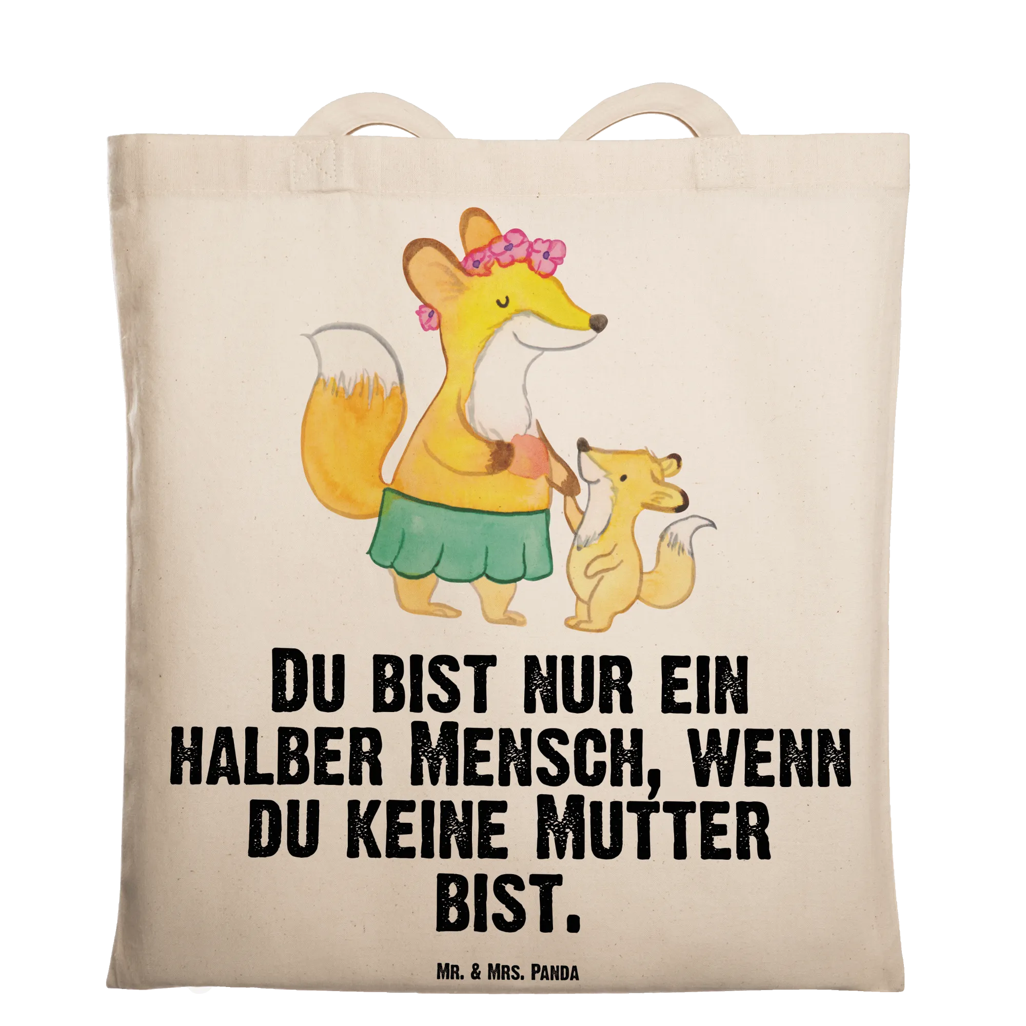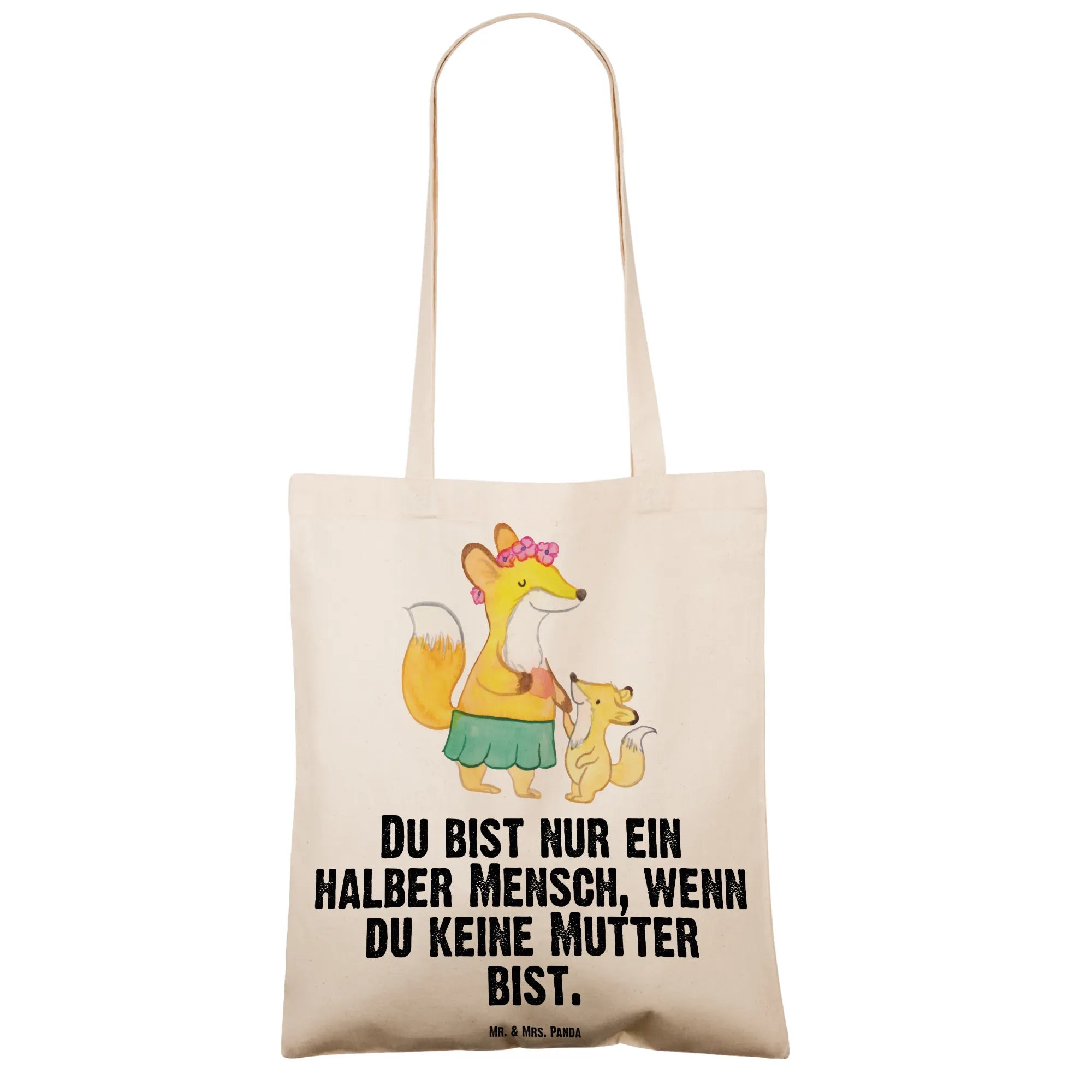 In diesem liebevollen Motiv sehen wir eine Fuchsmutter, die ihr fröhliches Kind an der Hand hält. Die Kombination aus einem niedlichen Röckchen und strahlenden Blumen auf dem Kopf bringt sofort ein Lächeln ins Gesicht. Die Worte "Du bist nur ein halber Mensch, wenn du keine Mutter bist" erinnern uns daran, wie wertvoll die Rolle einer Mutter ist. Mütter sind die ersten Menschen, die uns die Welt zeigen und uns die Grundlagen des Lebens lehren. Sie geben uns Stärke, Lebensfreude und die Fähigkeit, immer wieder aufzustehen, auch wenn es mal schwierig wird. Diese Darstellung erfasst nicht nur die essenzielle Verbindung zwischen Mutter und Kind, sondern strahlt auch Wärme und Dankbarkeit aus. Es ist eine Feier des Lebens, der Liebe und der unerschütterlichen Bindung, die zwischen Müttern und ihren Kindern besteht.