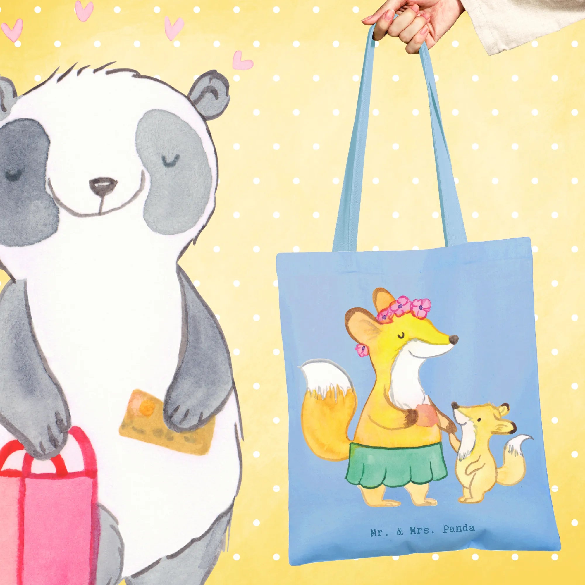 Erlebe die fröhliche Tragetasche von Mr. & Mrs. Panda – dein perfekter Einkaufspartner, der immer ein Lächeln auf dein Gesicht zaubert!