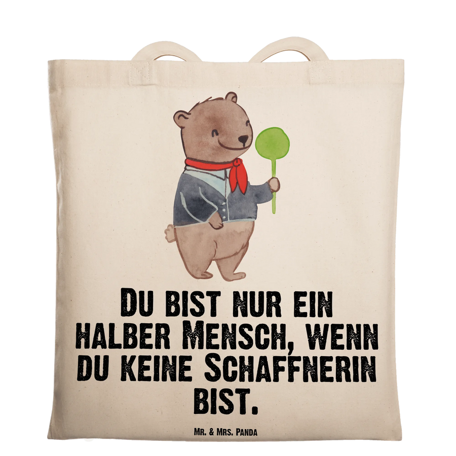 Tragetasche Schaffnerin mit Herz - mit Spruch - Transparent