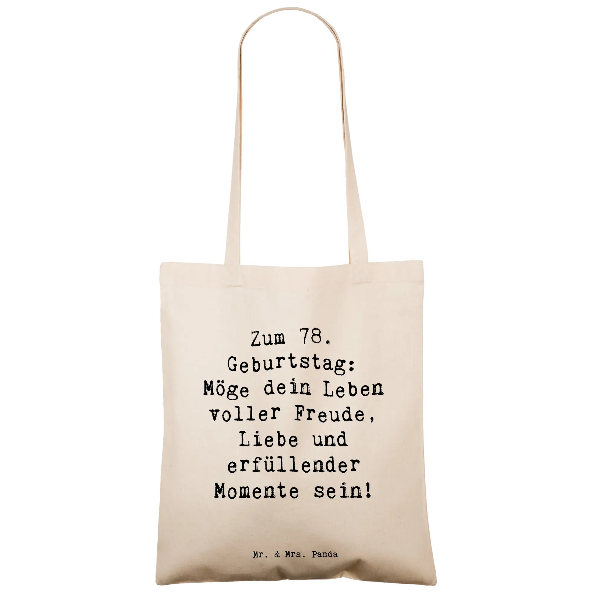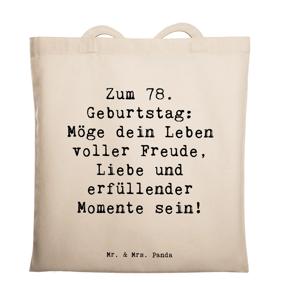 Die perfekte Geschenk-Idee zum 78. Geburtstag: Unsere Tragetasche „78. Geburtstag“ von Mr. & Mrs. Panda vereint liebevolle Gestaltung und praktischen Nutzen. Der zarte, herzliche Spruch „Zum 78. Geburtstag: Möge dein Leben voller Freude, Liebe und erfüllender Momente sein!“ macht die Tasche zu einem emotionalen Begleiter für Jubilare, Großeltern und alle, die einen besonderen Geburtstag feiern.
