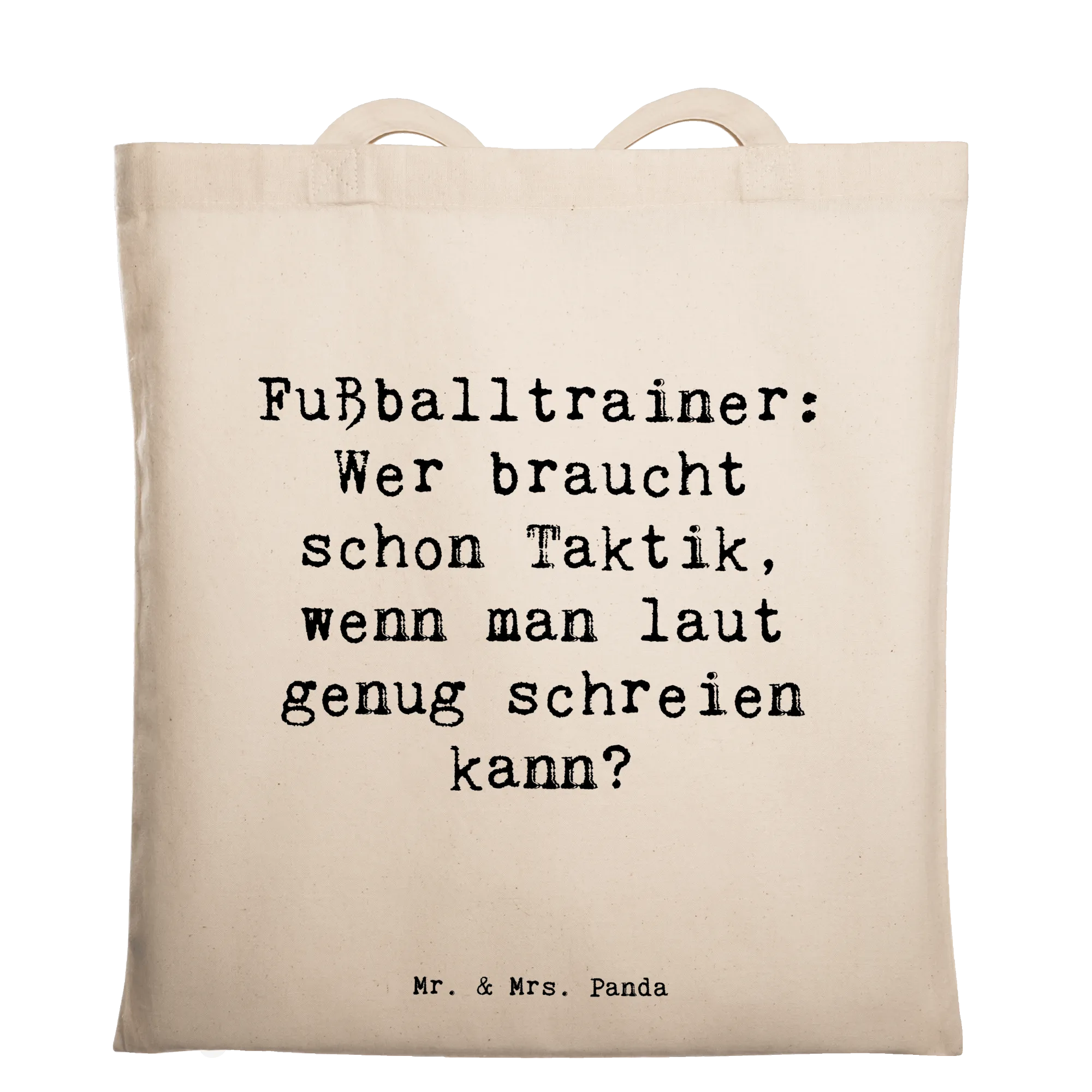 Du suchst ein Geschenk für den Fußballtrainer? Unsere Tragetasche „Fußballtrainer“ von Mr. & Mrs. Panda ist genau das Richtige: witzig, praktisch und voller Charme. Der Spruch „Fußballtrainer: Wer braucht schon Taktik, wenn man laut genug schreien kann?“ bringt jeden Trainer zum Schmunzeln – ideal als Geschenk zum Saisonende, Geburtstag oder Vereinsjubiläum.