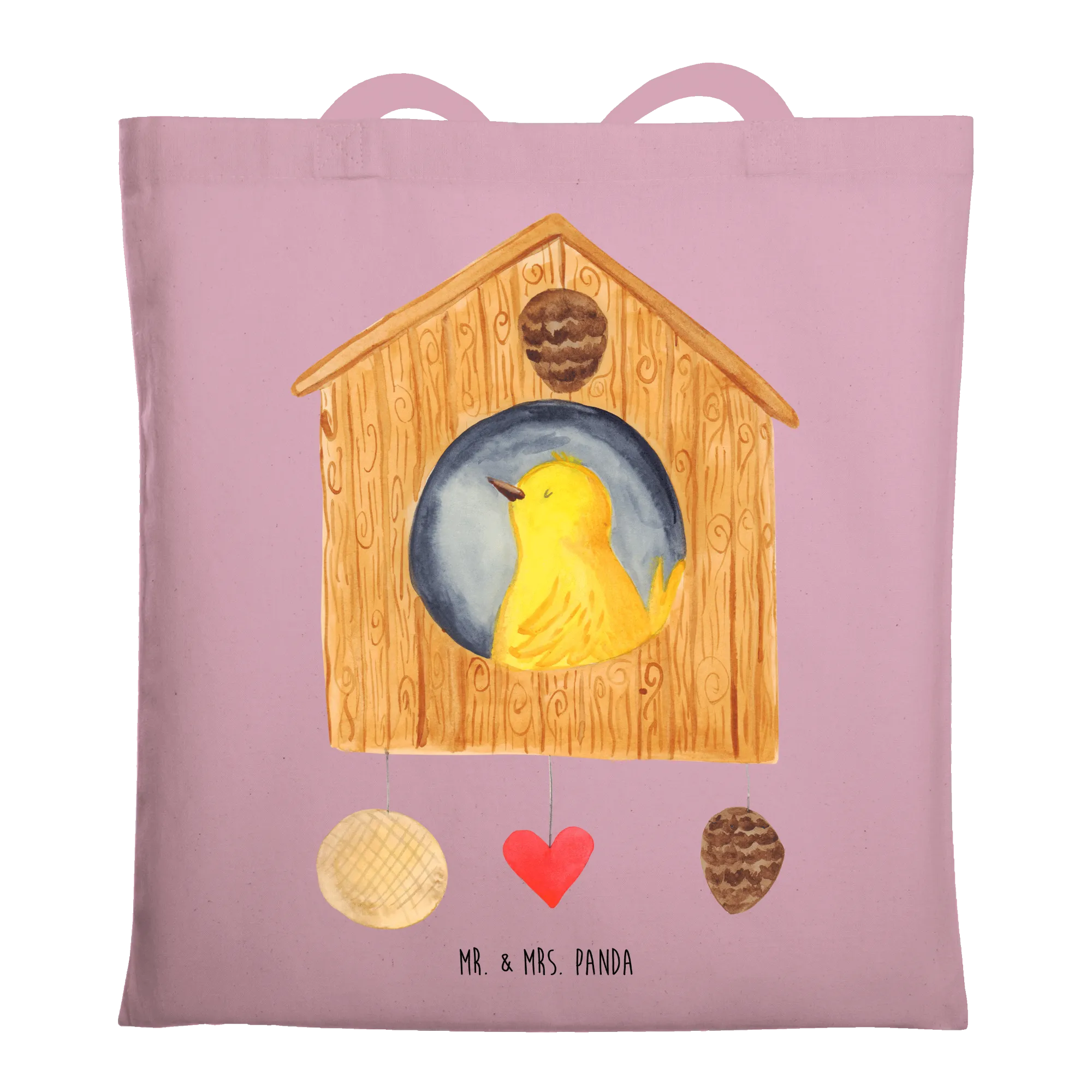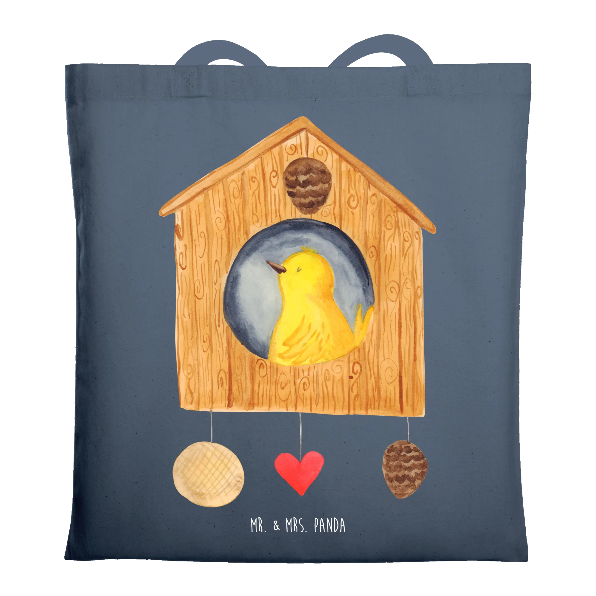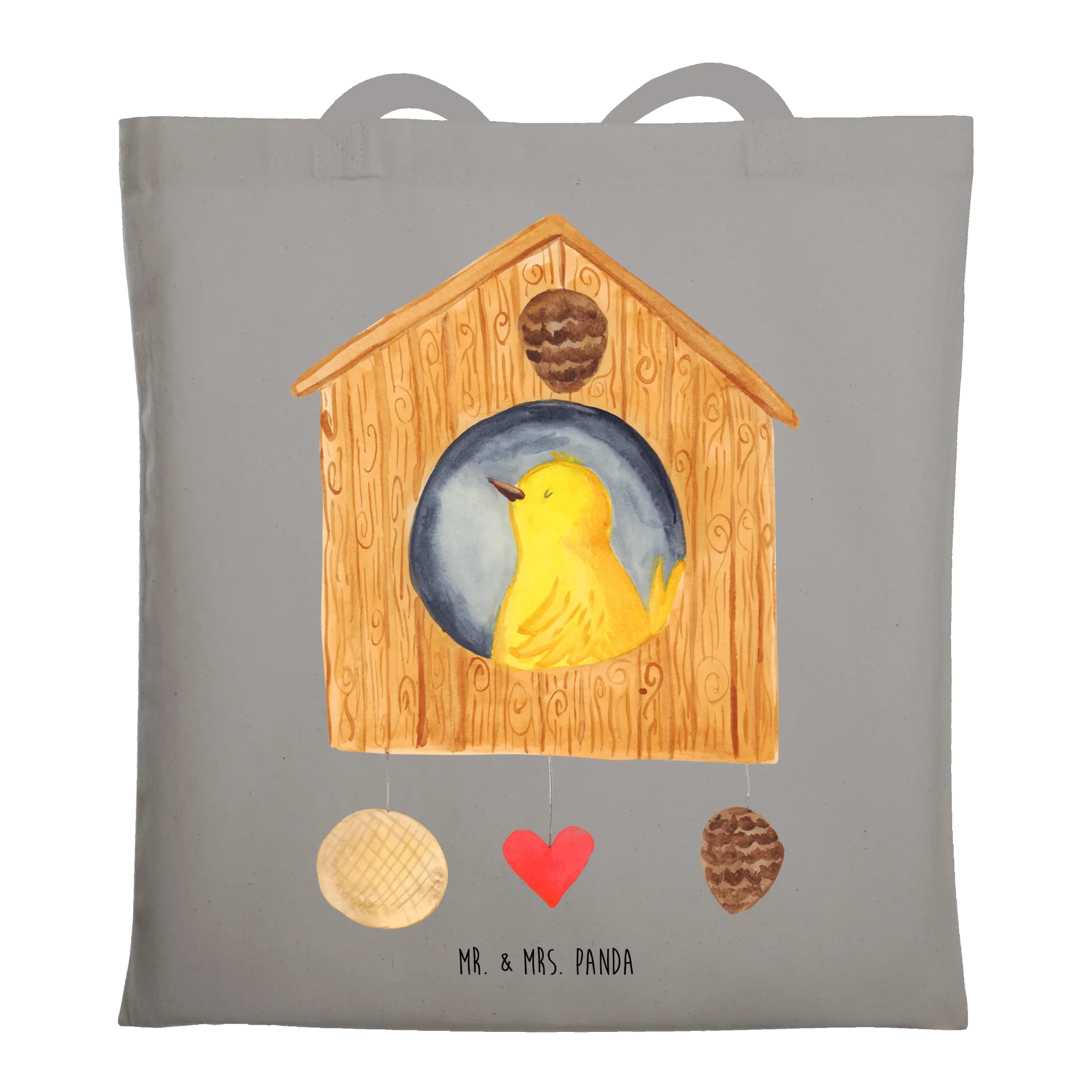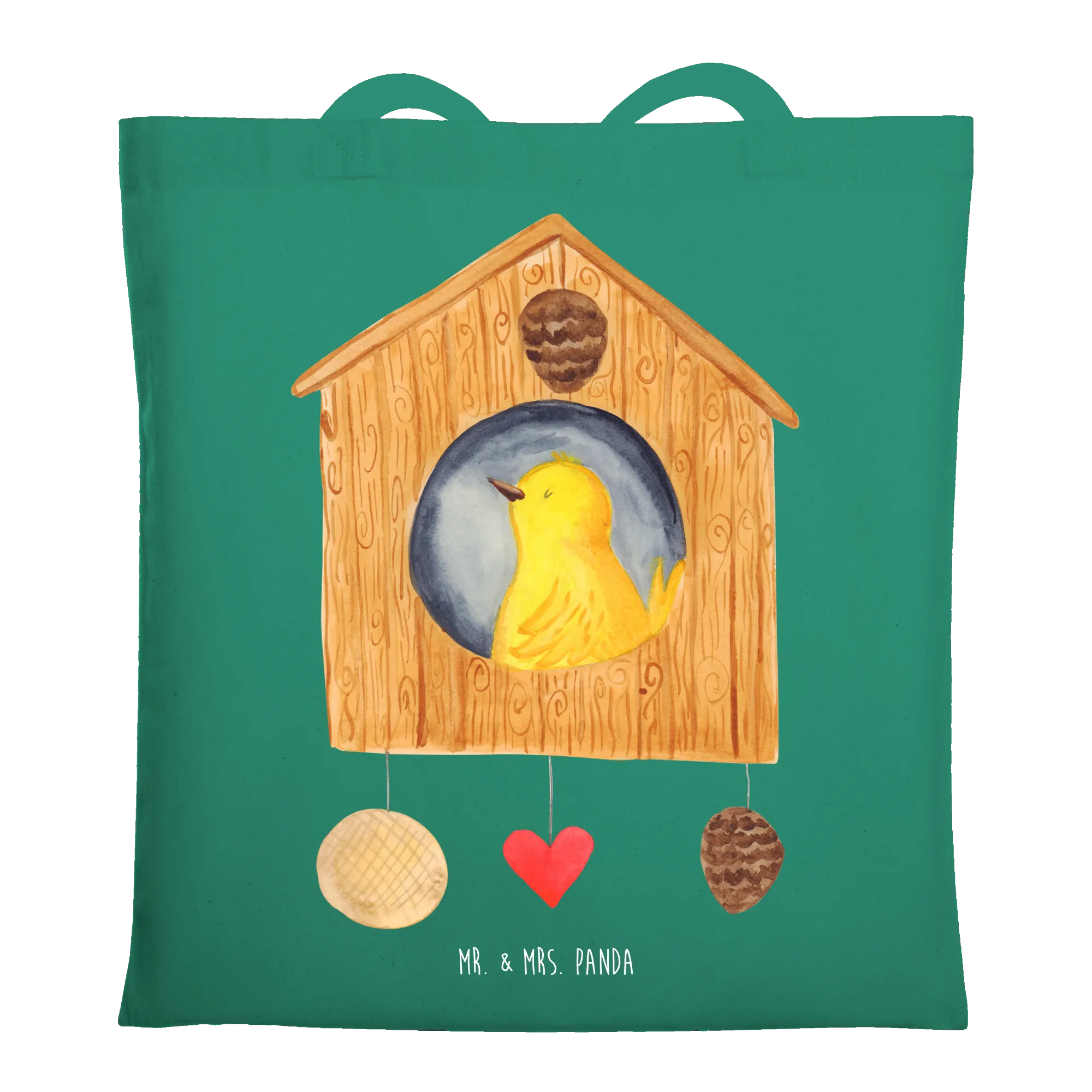 Gelber Vogel im Vogelhaus - Eigenheim Glück - Mr. & Mrs. Panda - Ideal für Familien und Nestbauer