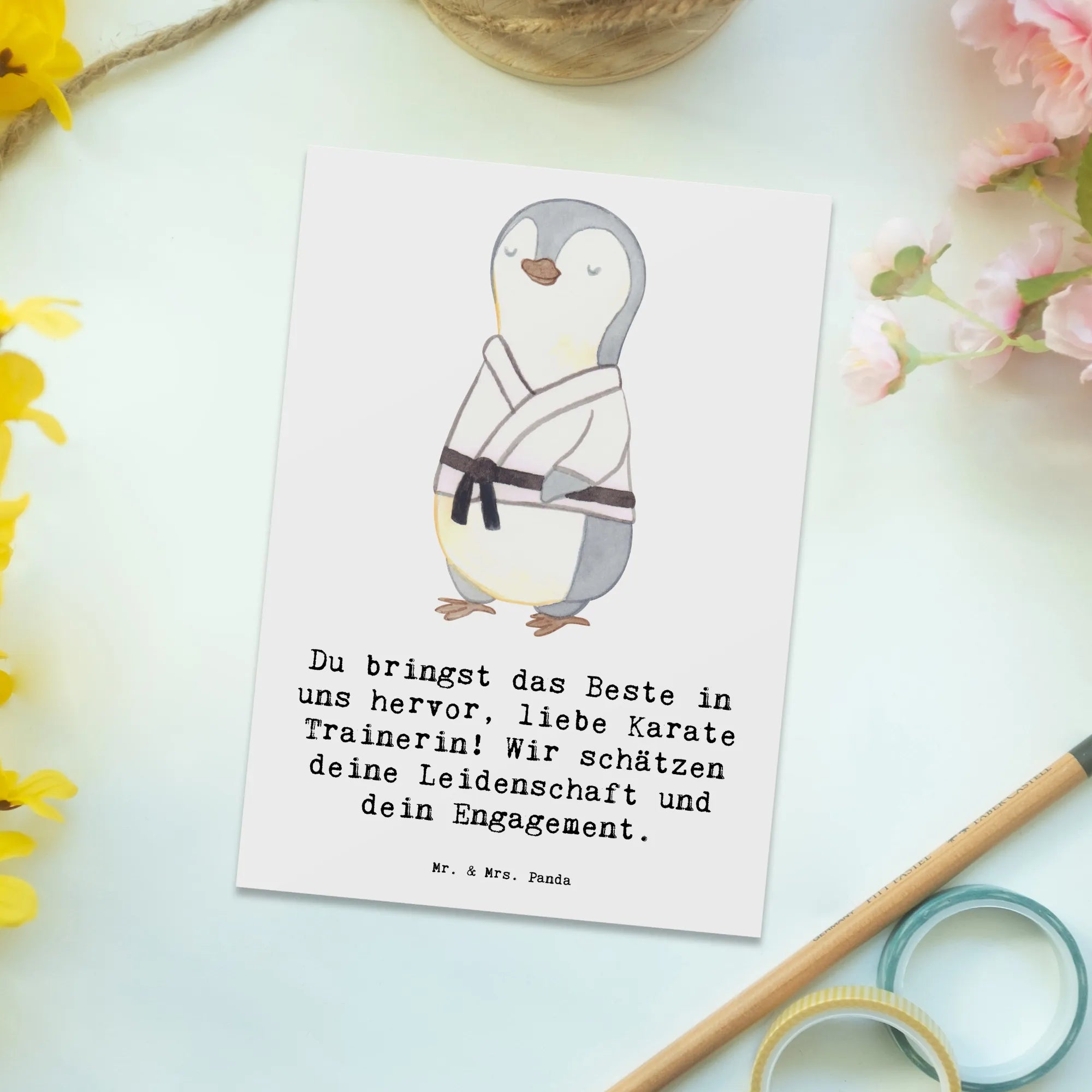 Schenke deiner Trainerin ein Lächeln und eine bleibende Erinnerung – mit der Mr. & Mrs. Panda Postkarte „Karate Trainerin“. 🐼